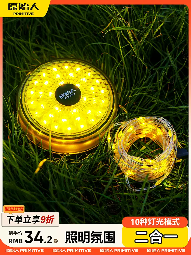 원시인 캠핑 라이트 야외 조명 초장거리 충전 휴대용 수납 스트랩 램프 야간 캠핑 분위기 줄자 램프