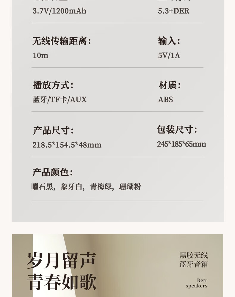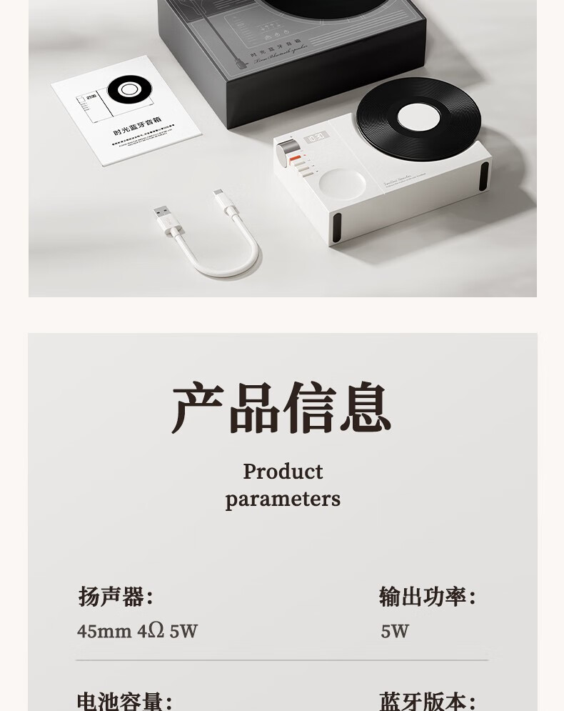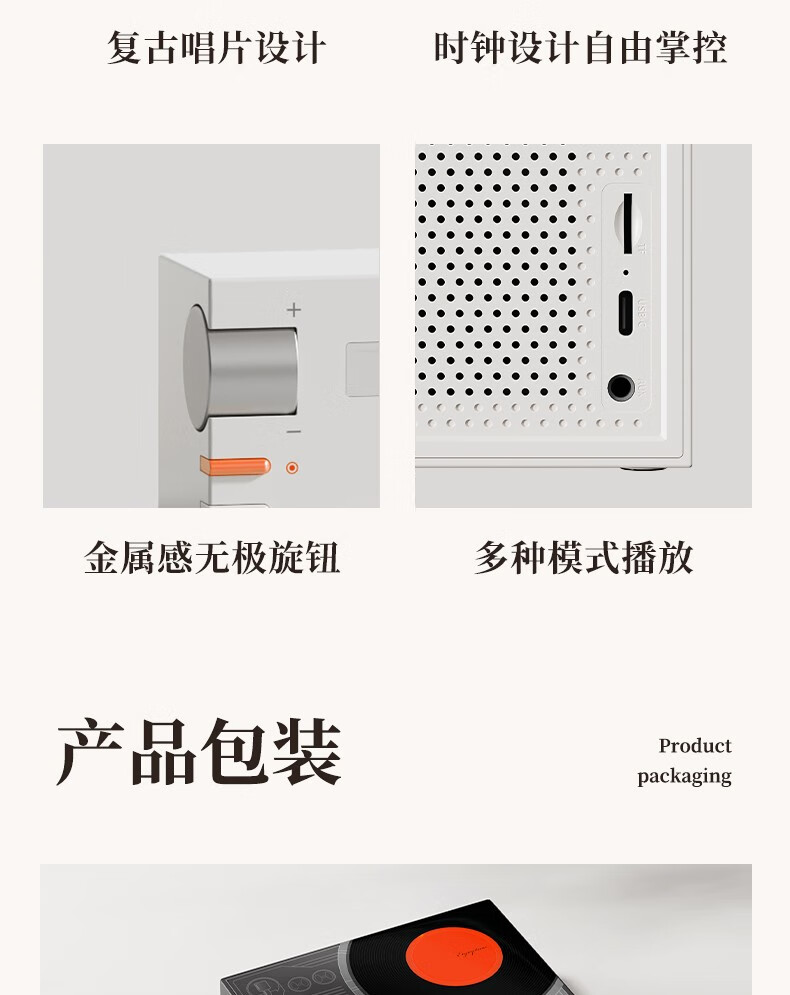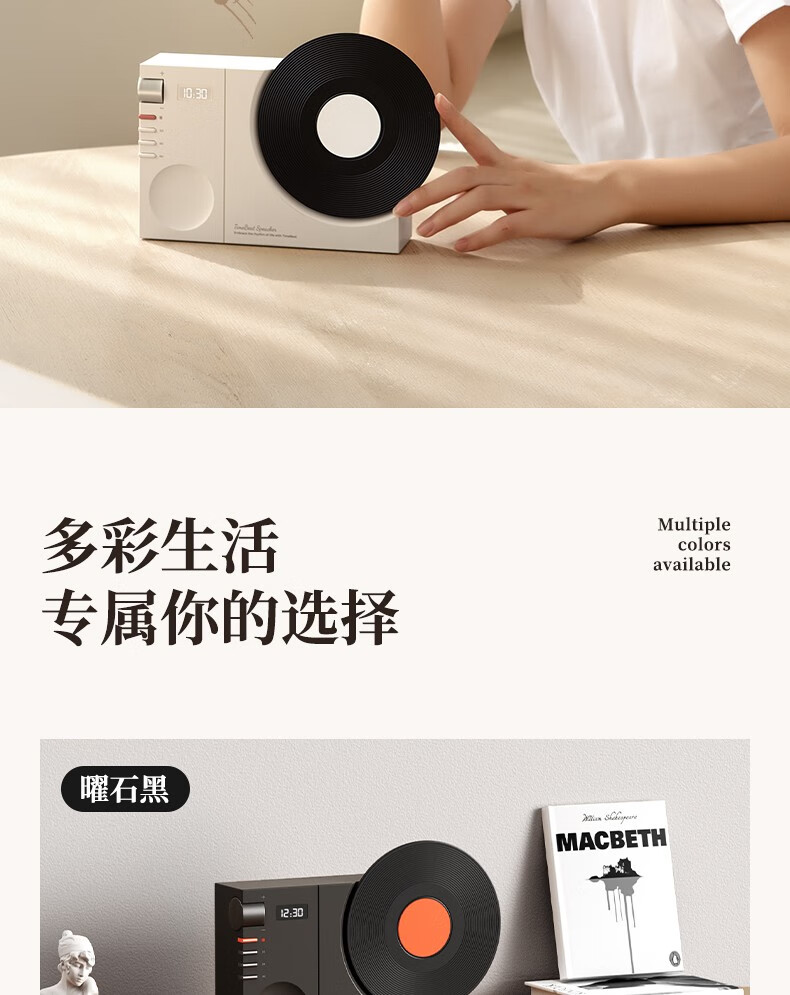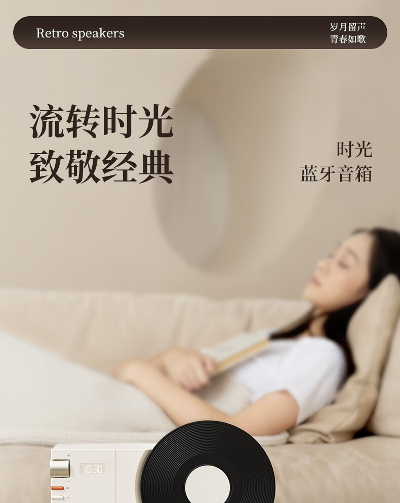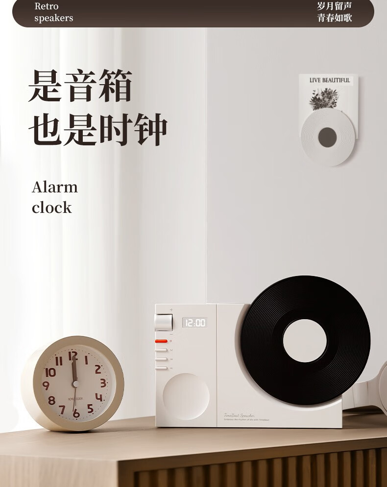 블루투스 스피커 홈 레트로 오디오 크리에이티브 블랙 접착제로 테이블 시계 무선 스피커