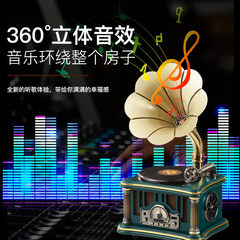 빈티지 축음기 유럽식 거실 원목 앤티크 전축 장식 모형 블루투스 스피커 아메리칸 리얼 블랙 레코드 클래식 모형 1906 잉크그린-업그레이드 CD타입/플러그인 겸용