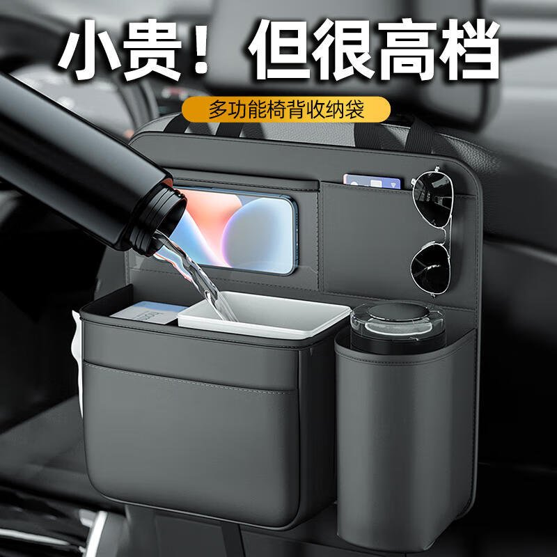 齐选汽车座椅后背收纳袋椅背置物架多功能收纳盒车内用纸巾盒储物挂袋 【典雅黑】多功能椅背收纳袋