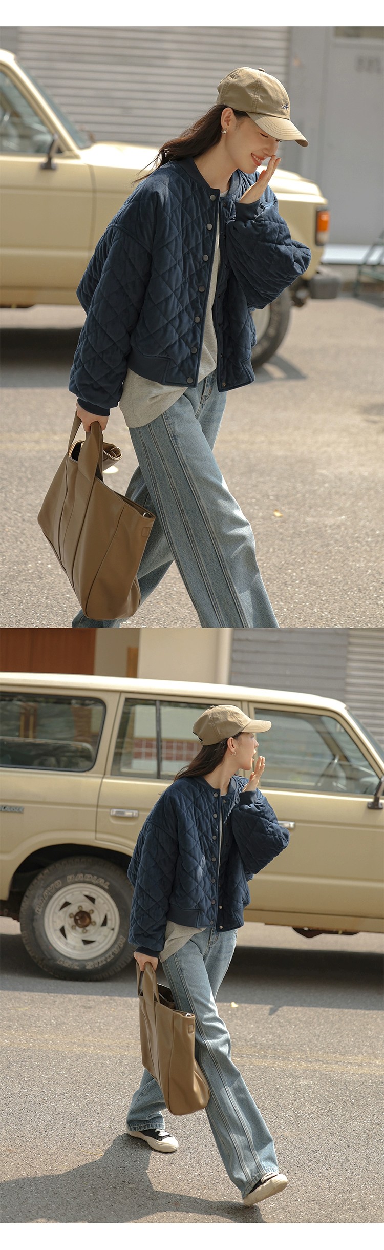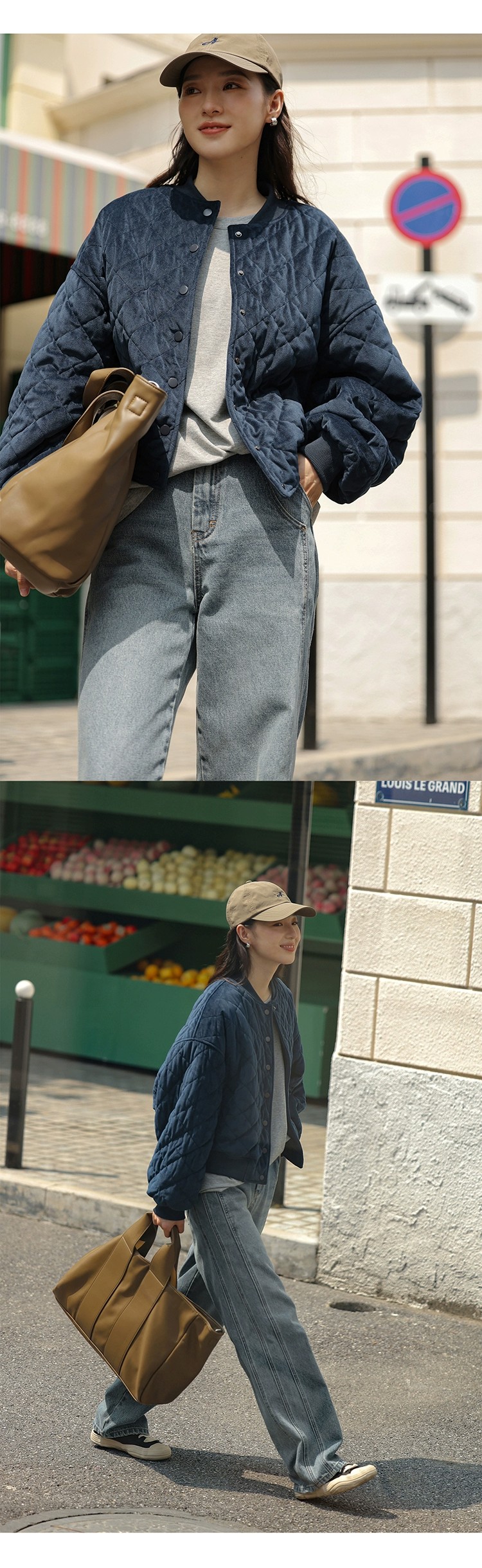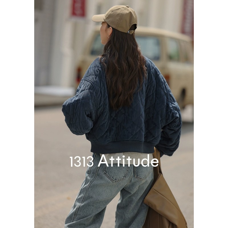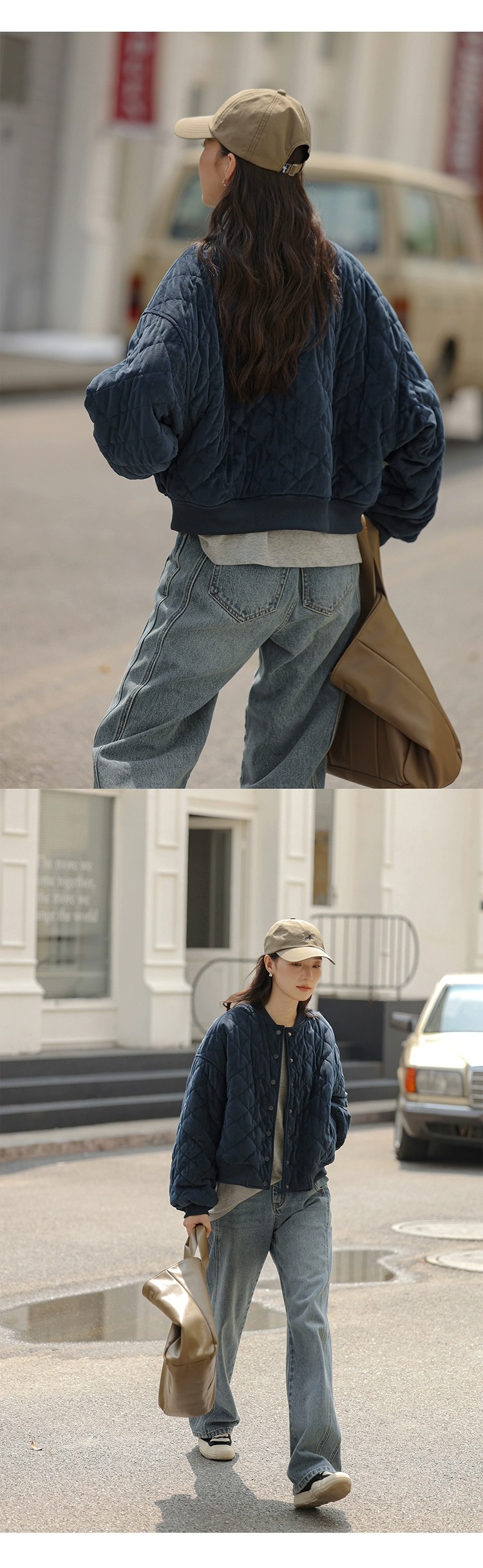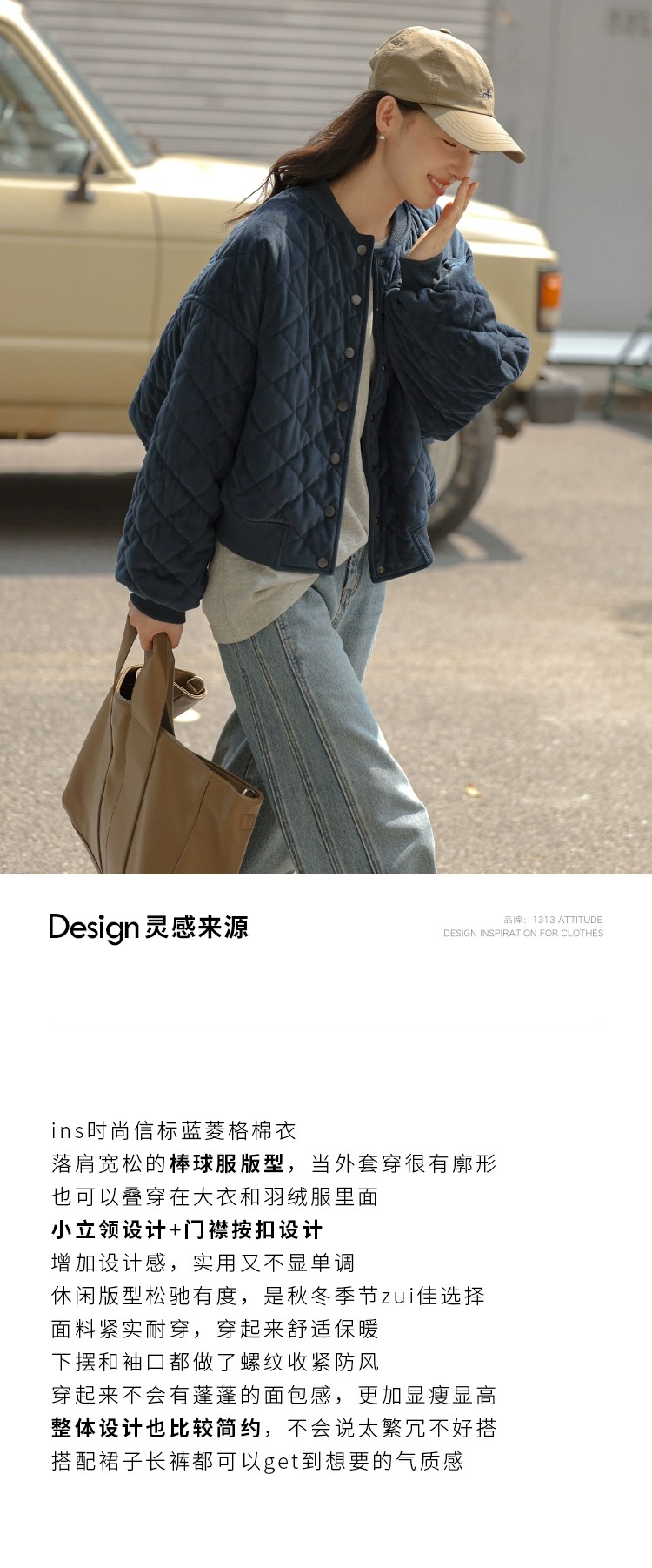 디자인 센스 비콘 블루 링 그리드 야구 유니폼 여성 재킷 쇼트 스타일 디스플레이 높음 보온 면 의류 재킷