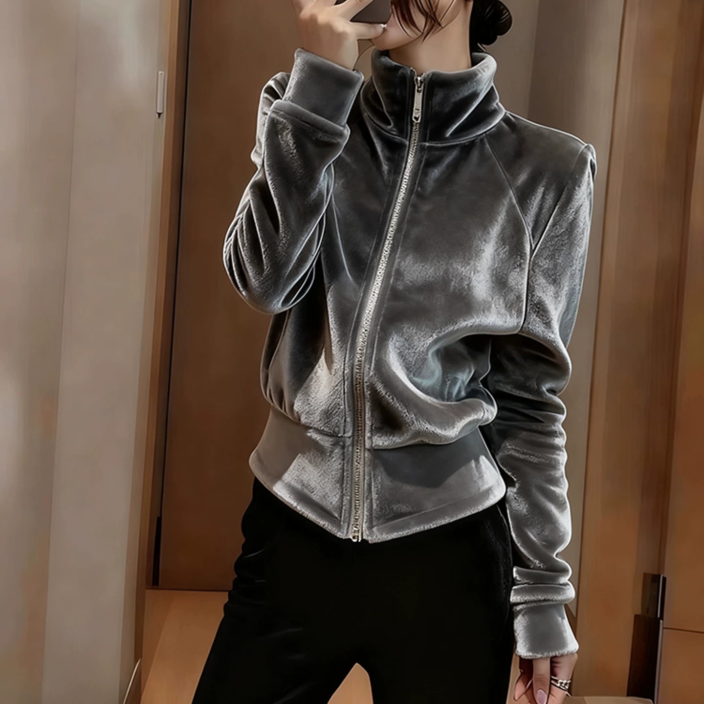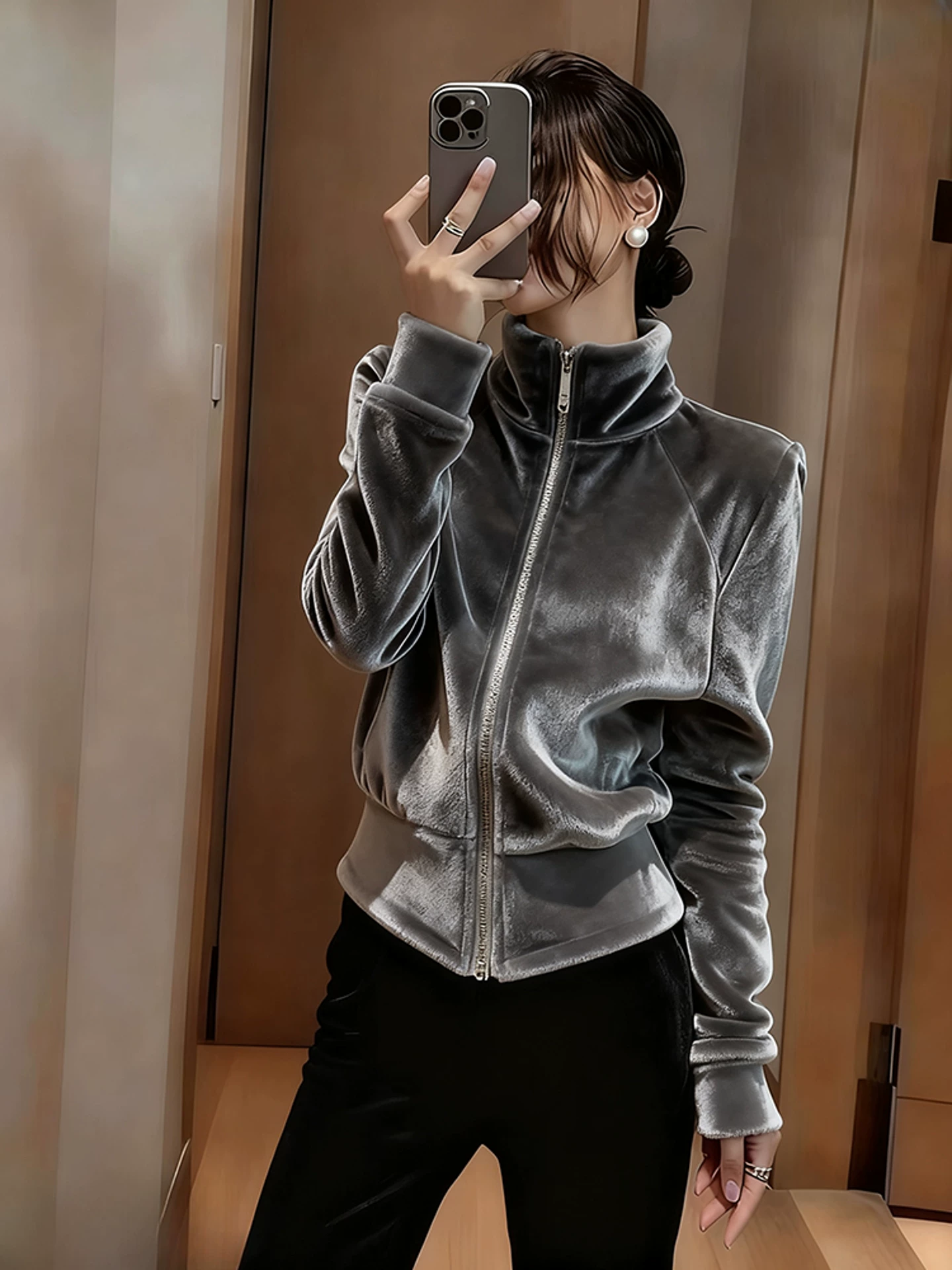 회색 벨벳 여성 코