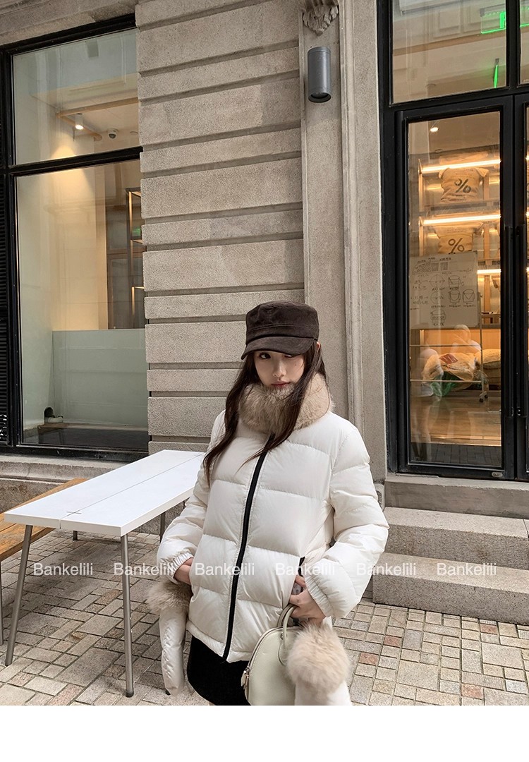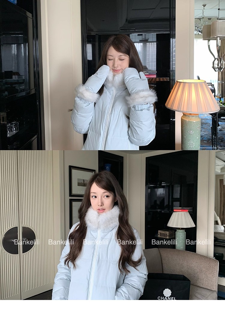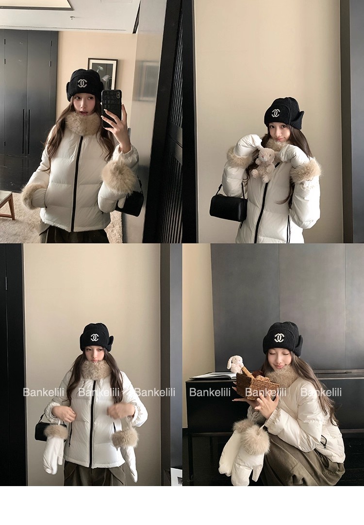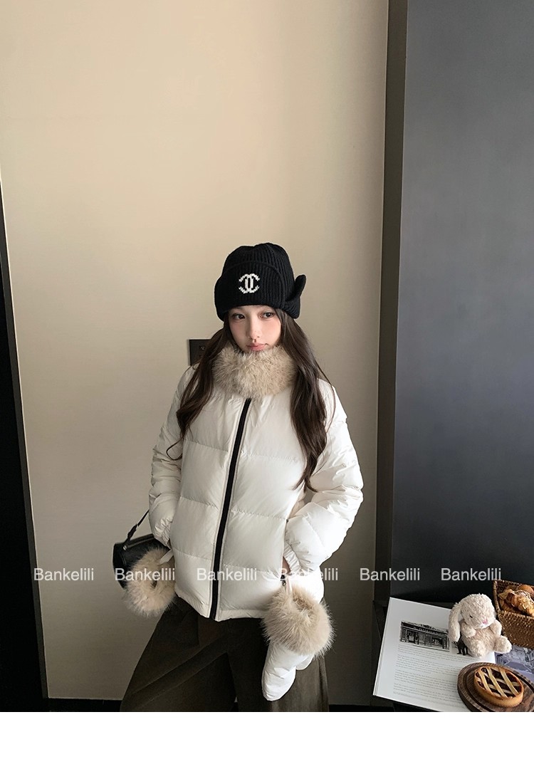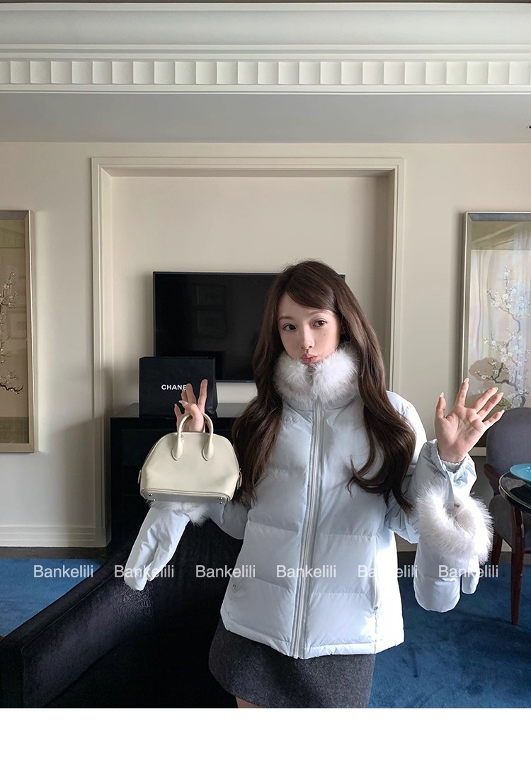 밤나무 코코아 bankelili 빛 플러시 작은 따뜻한 패키지 달콤함 나만의 것을 가져와 라. 장갑 90 화이트 덕 다운 모피 칼라 다운 재킷