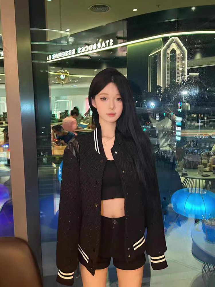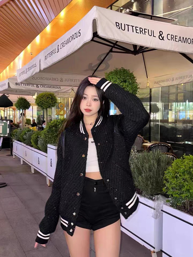 스팽글 스타일 쇼트 스타일 여성 코트 가을 2025 한국 스타일 루즈핏 슬림