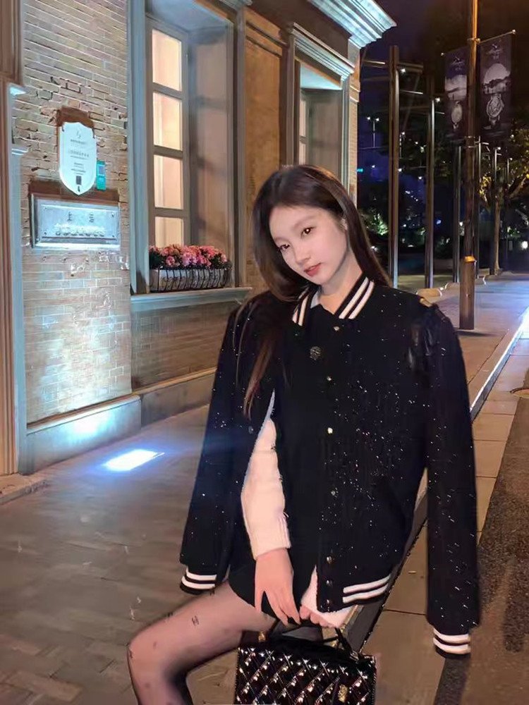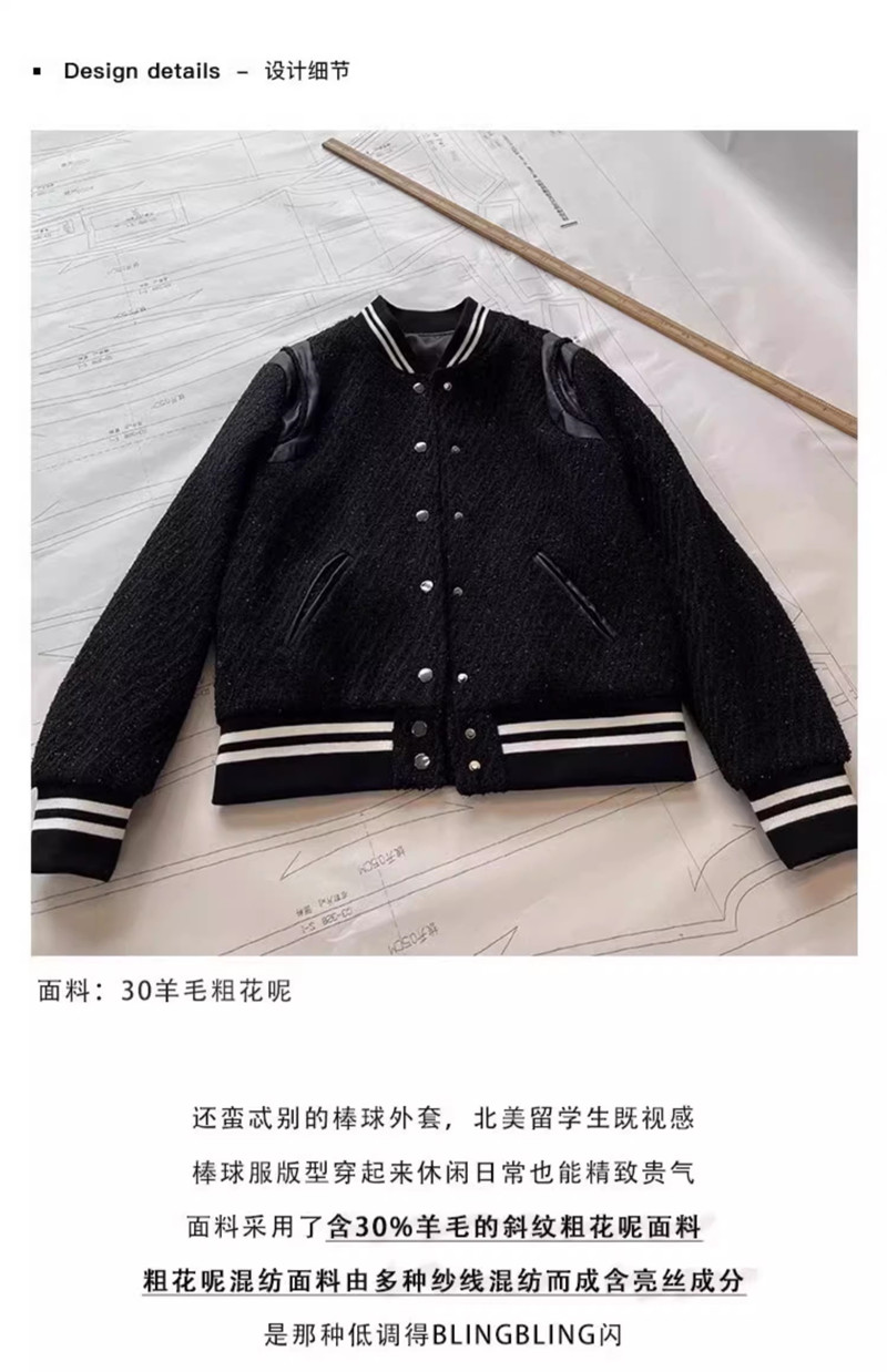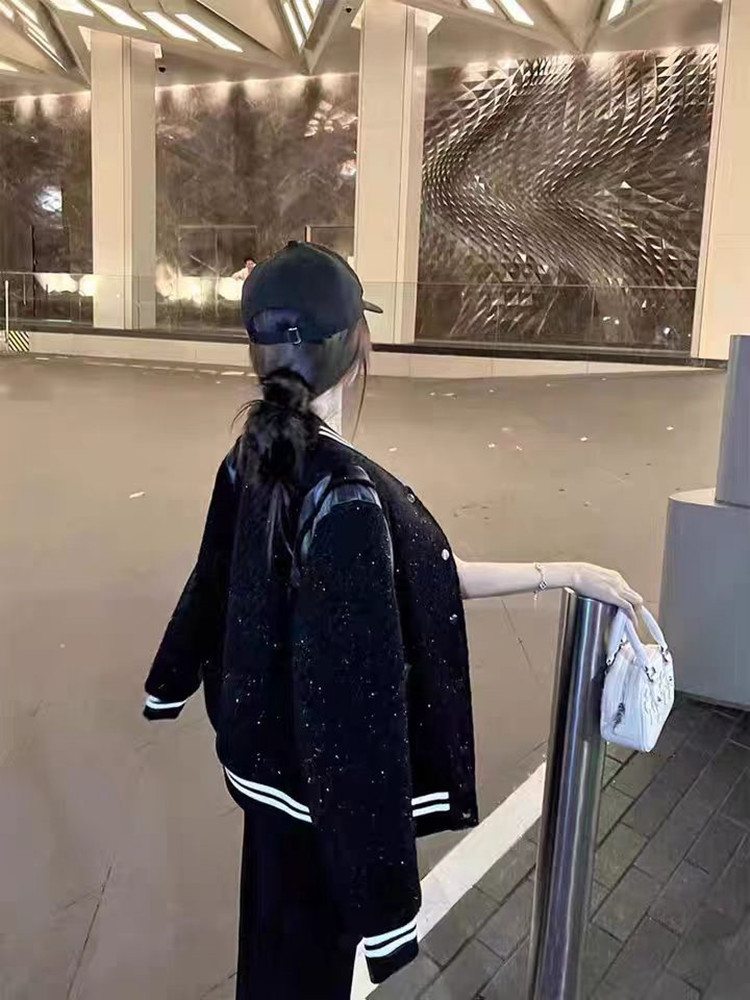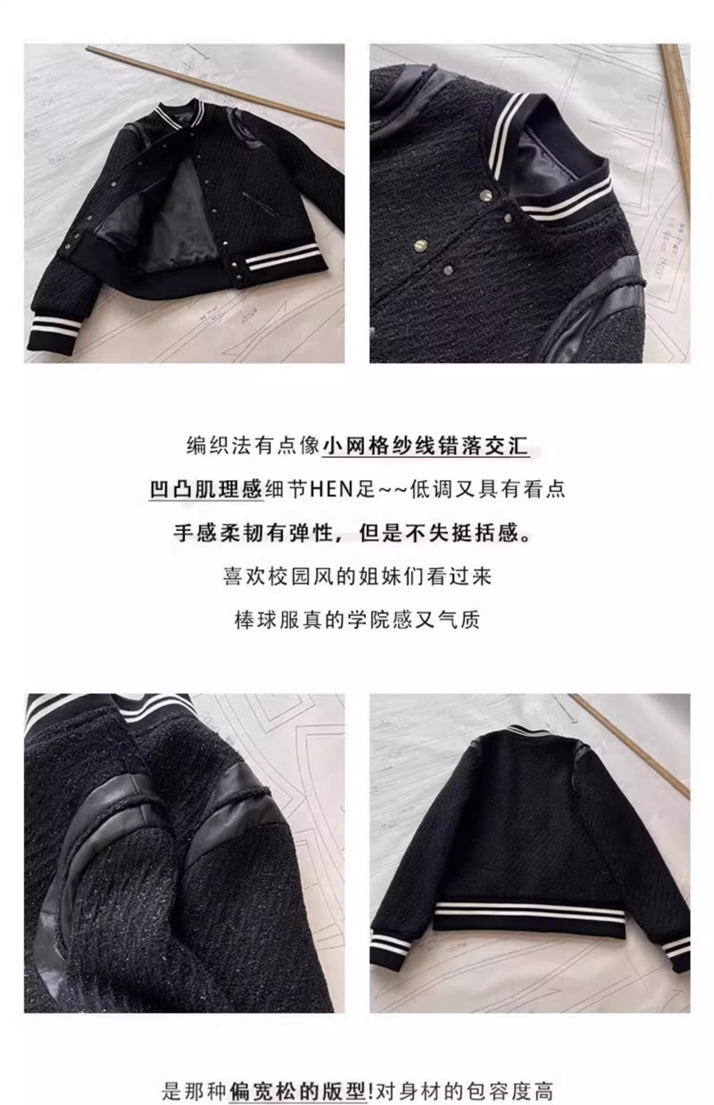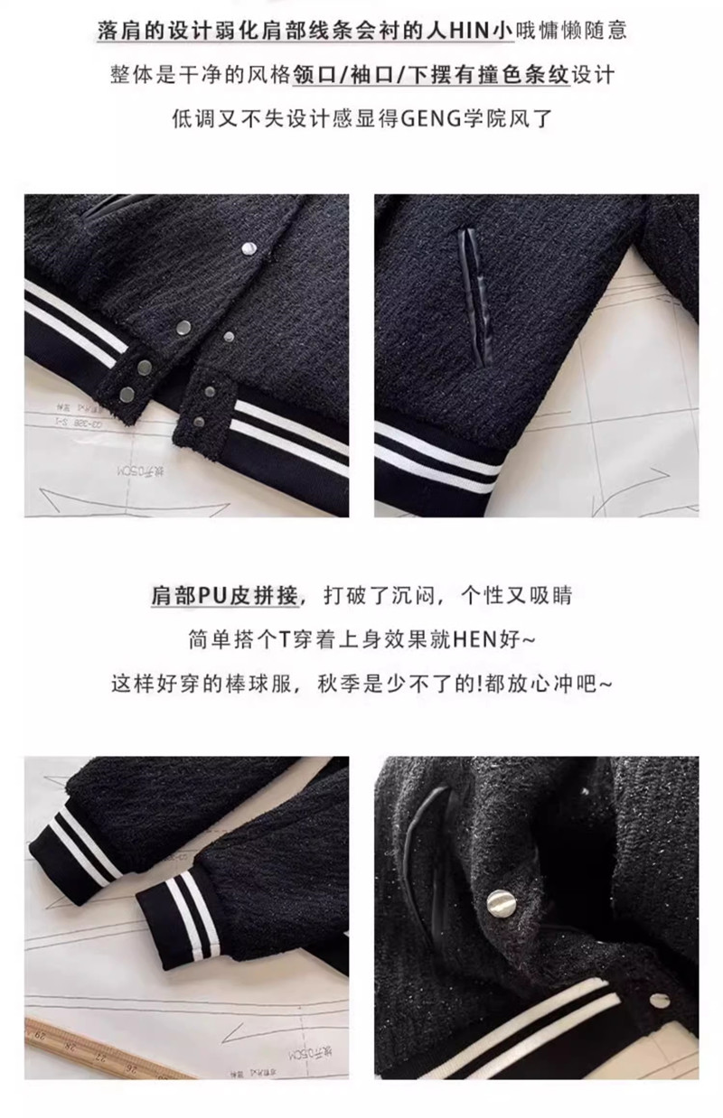 아메리칸 레트로 작은 샤넬 스타일 검정색 Gypsophila 양모 싸움 가죽 솜을 넣은 야구 유니폼 여성 가을 겨울 재킷 고급 재킷
