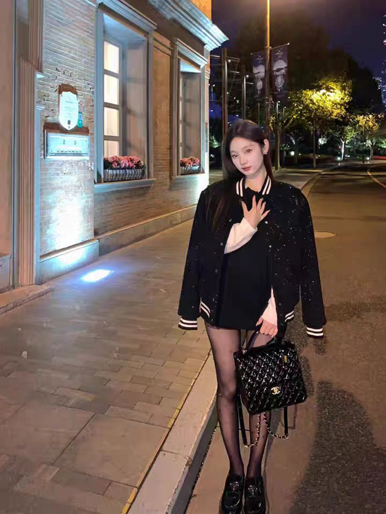 실사 라운드 넥 야구 유니폼 여성 코트 새로운 한국 스타일 패션 다용도 캐주얼 루즈핏 슬림해 보이는 가죽 자켓 맨위