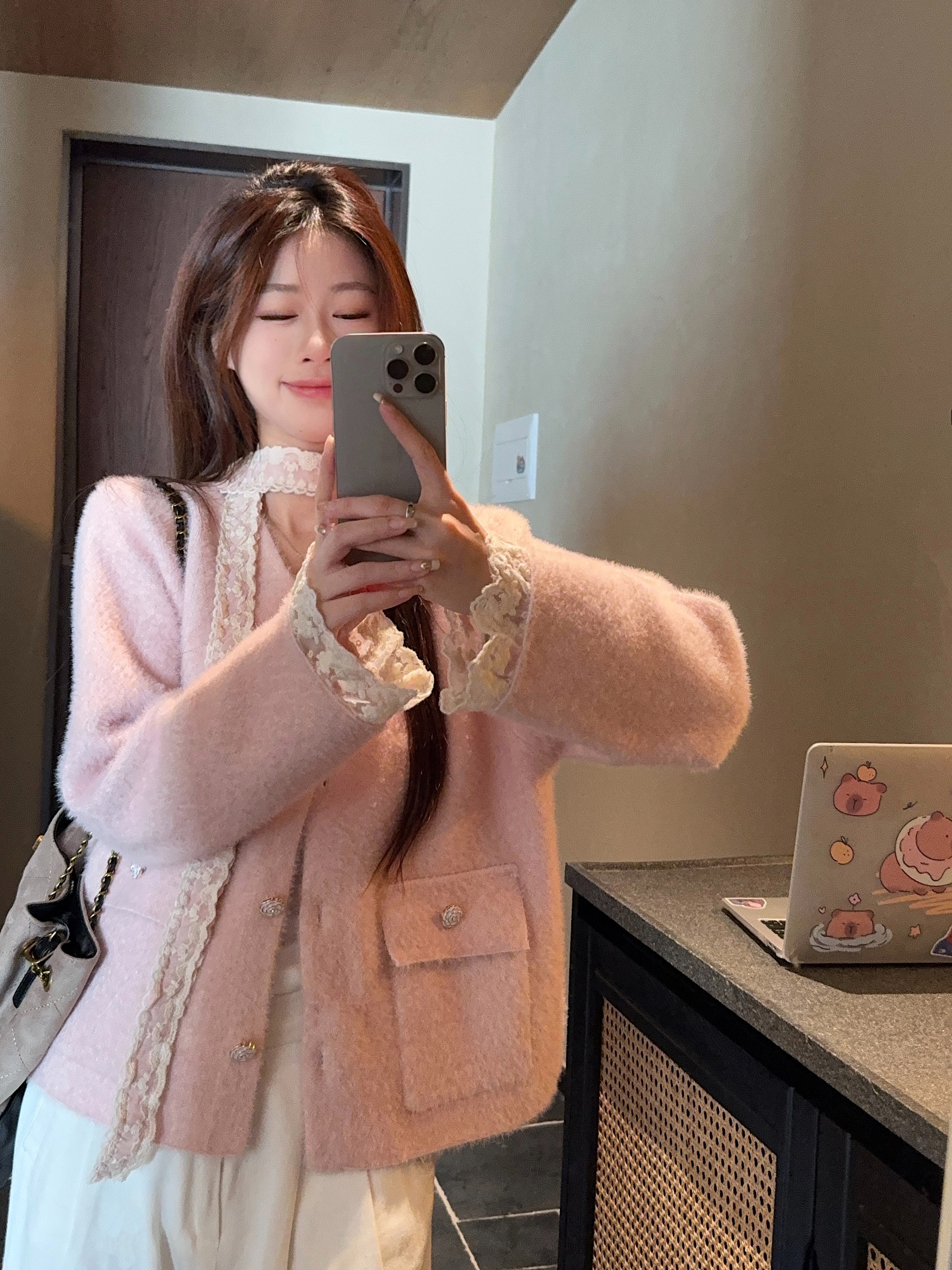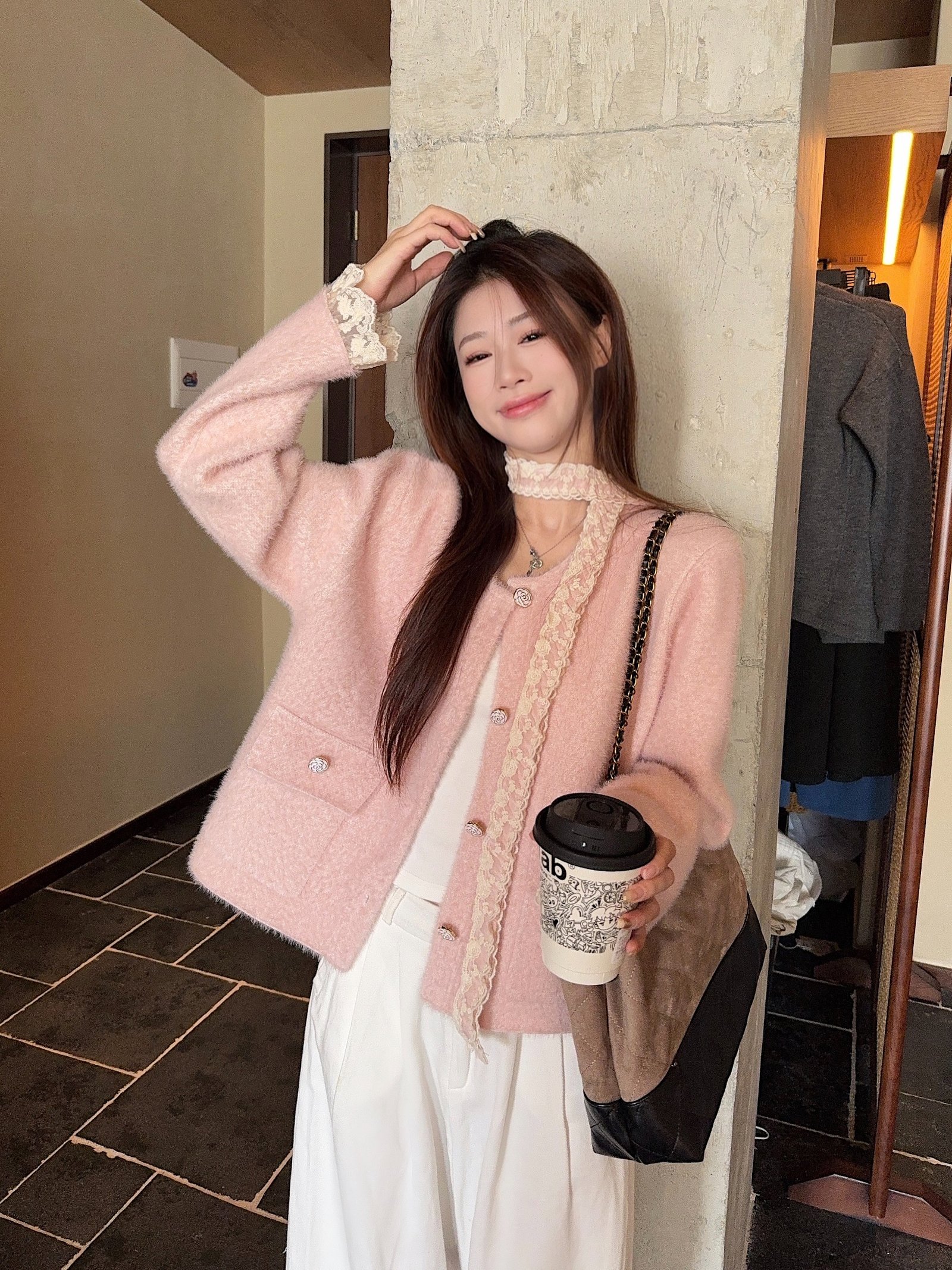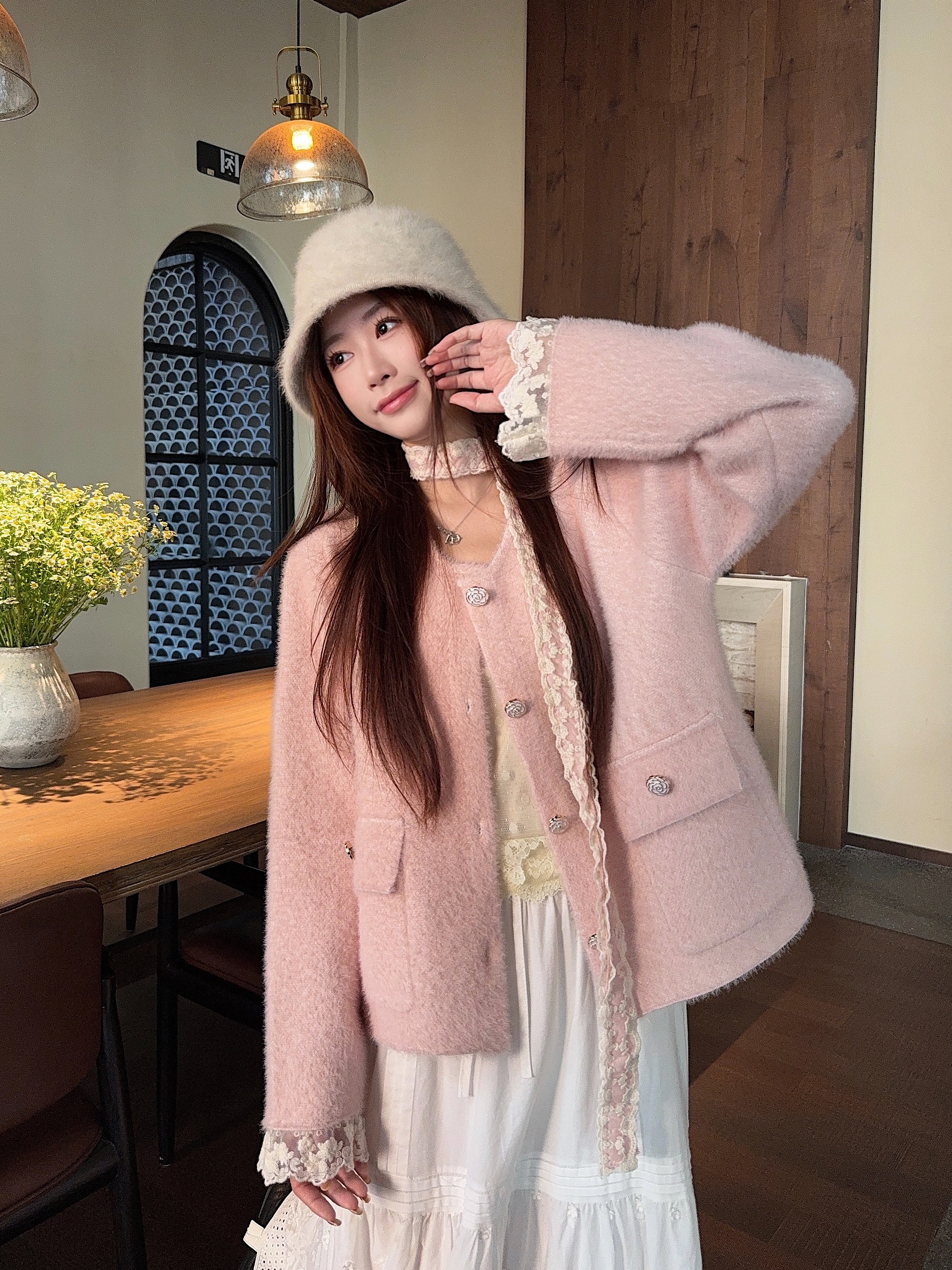 핑크 코트 + 리본
