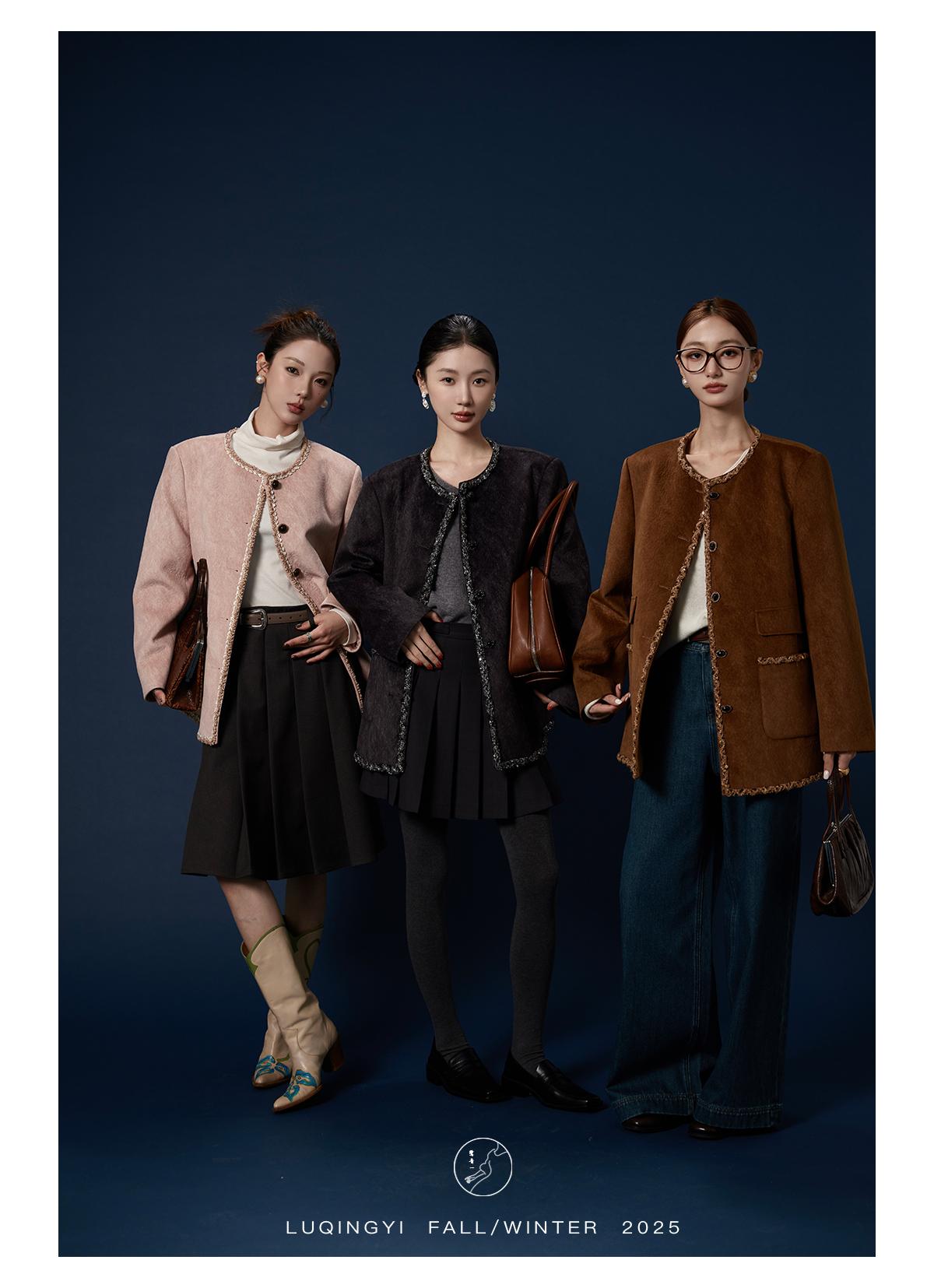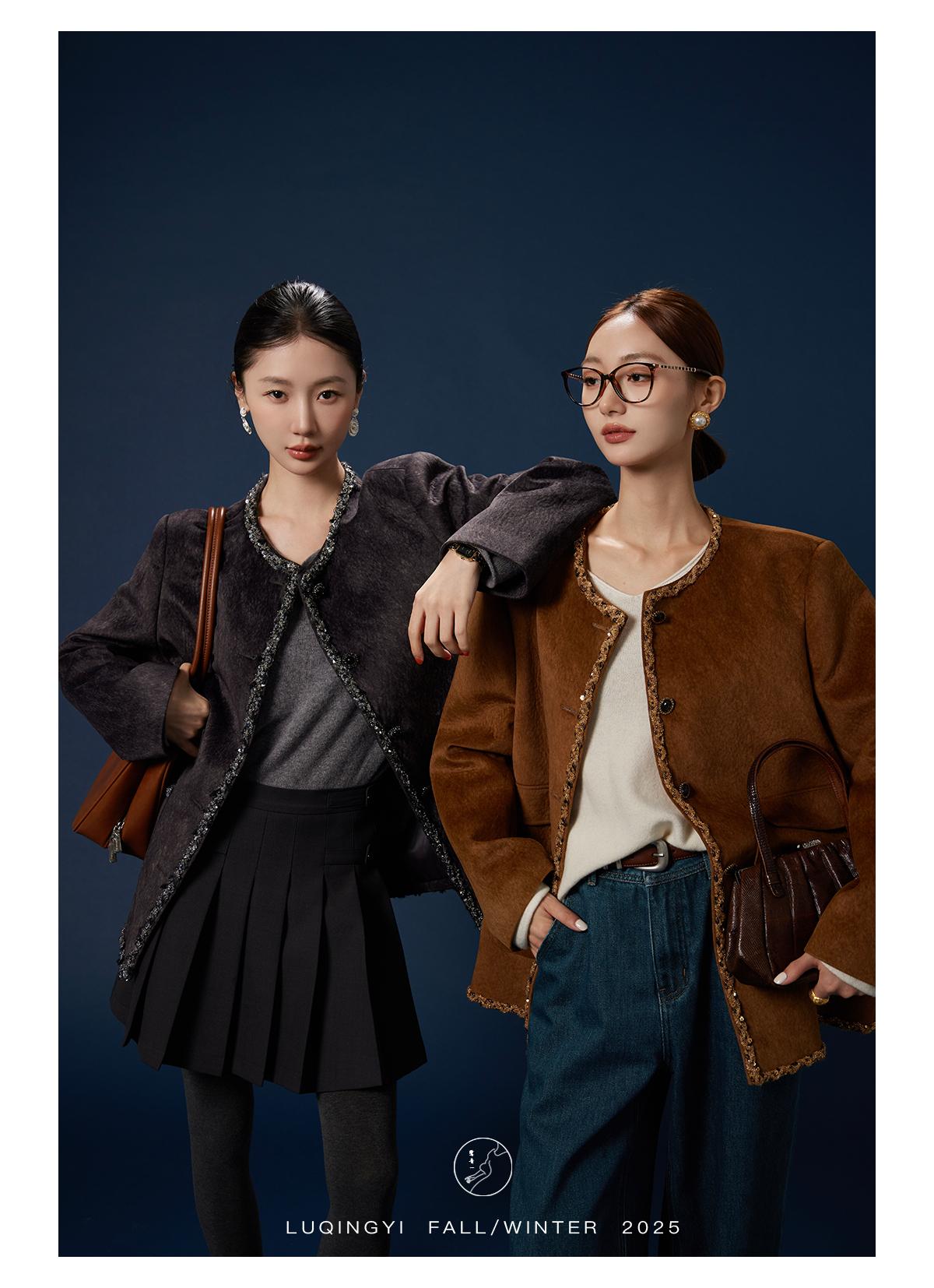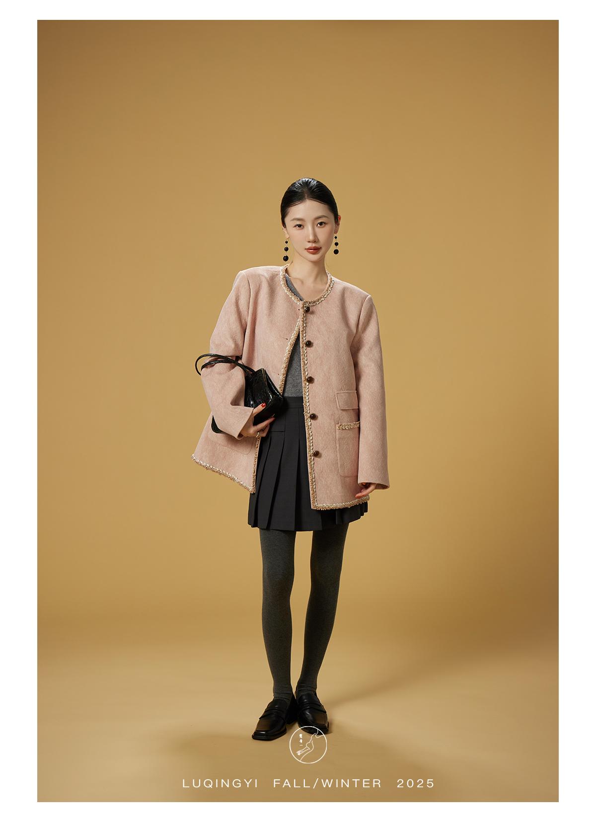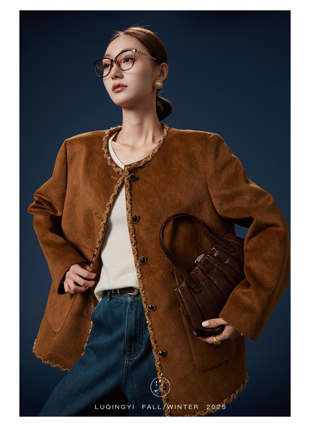 가을 겨울 베이지 색 플리스 여성 코트 2025 새로운 자이언트 잘 생긴 고유 한 아름다운 품격 작은 샤넬 스타일 꼬집기 허리 위로 의류