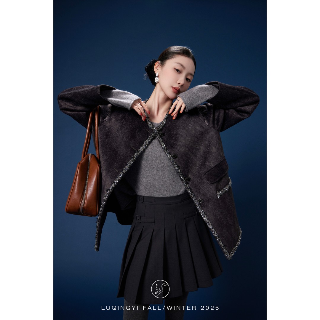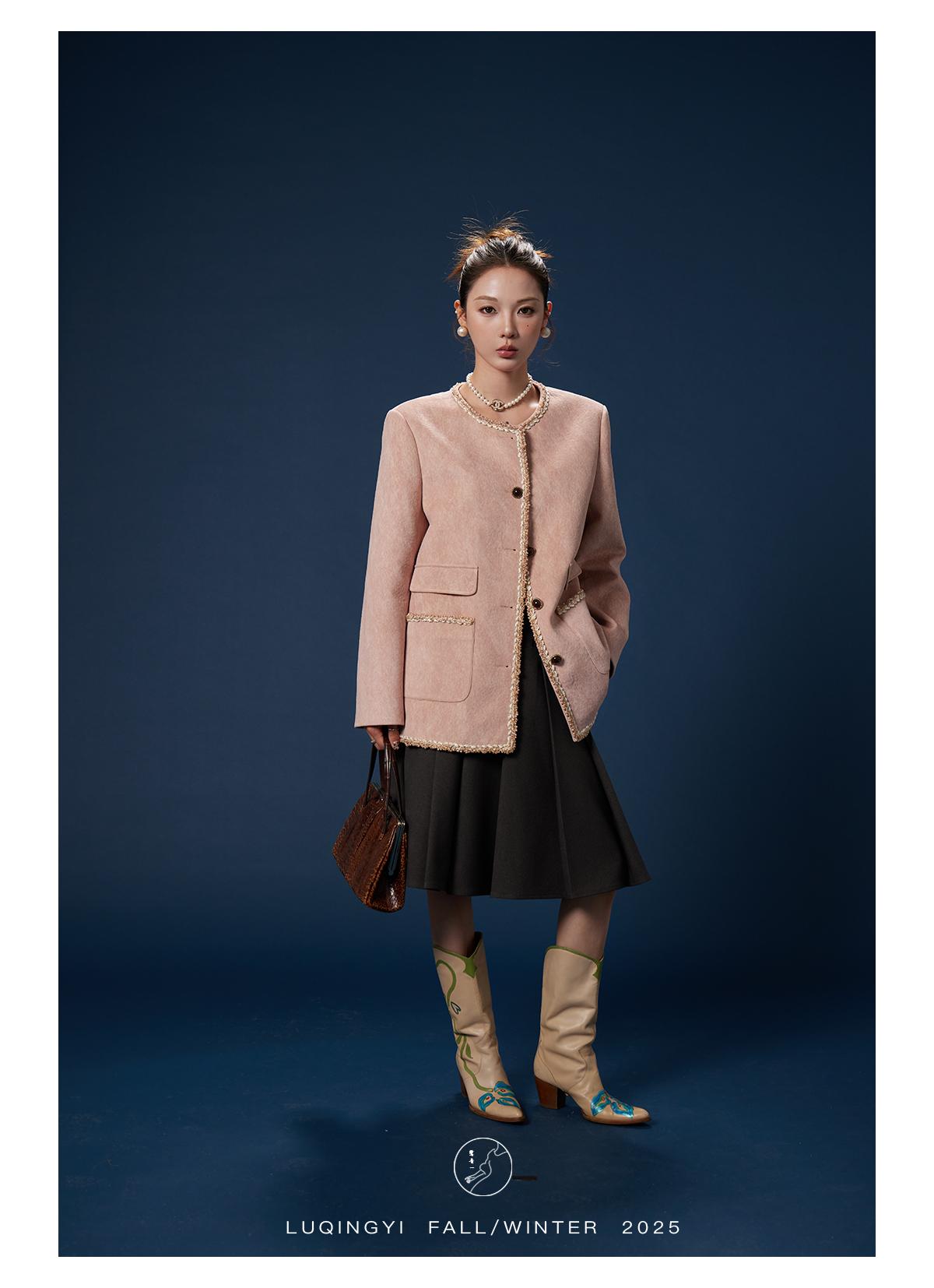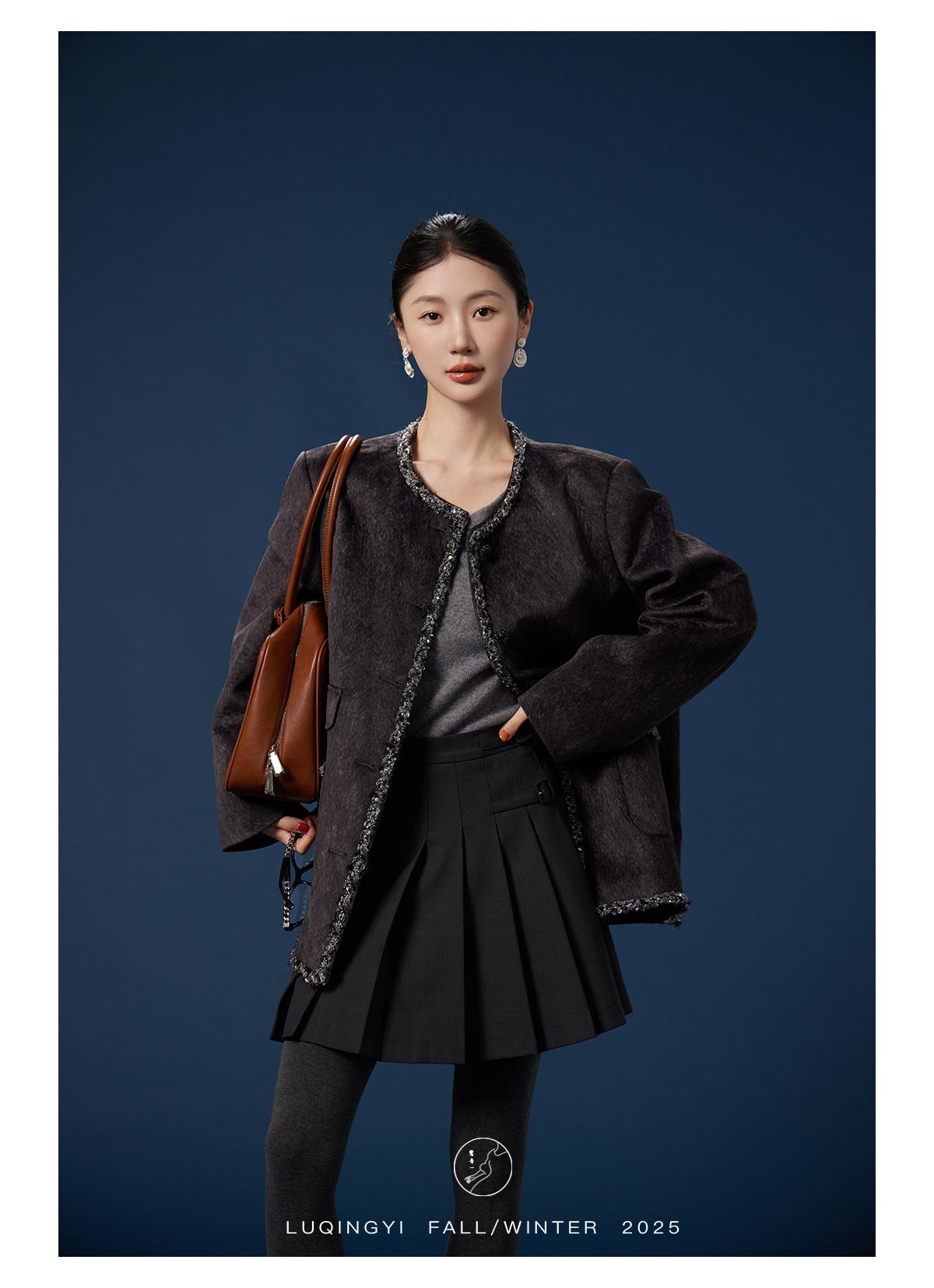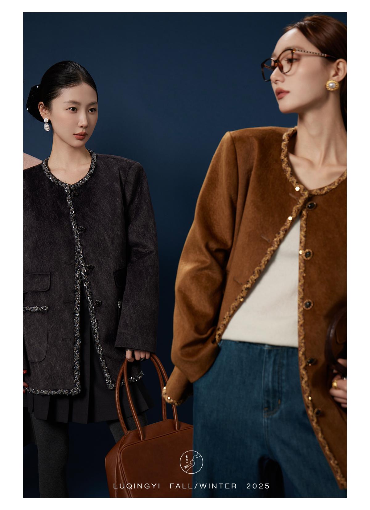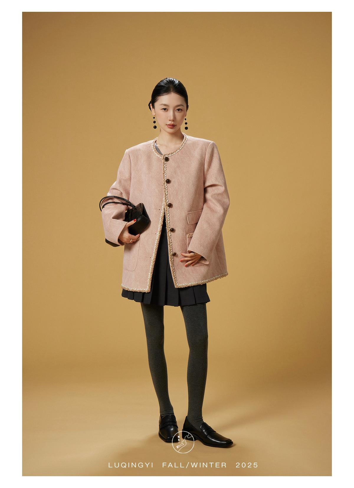 가을 겨울 베이지 색 플리스 여성 코트 2025 새로운 자이언트 잘 생긴 고유 한 아름다운 품격 작은 샤넬 스타일 꼬집기 허리 위로 의류