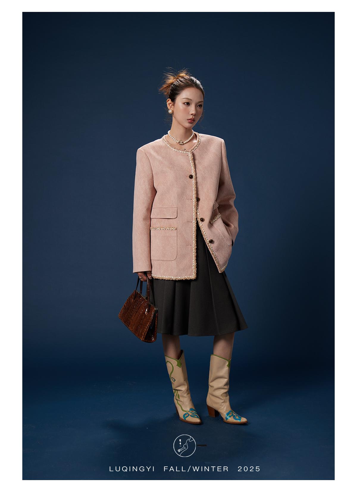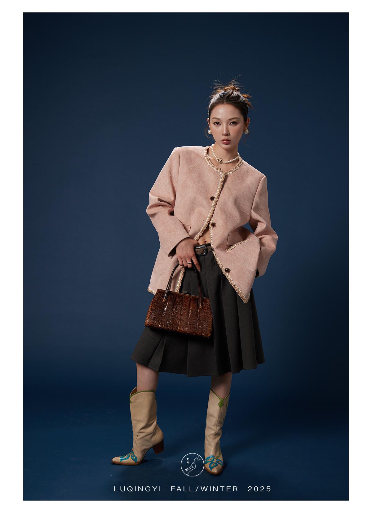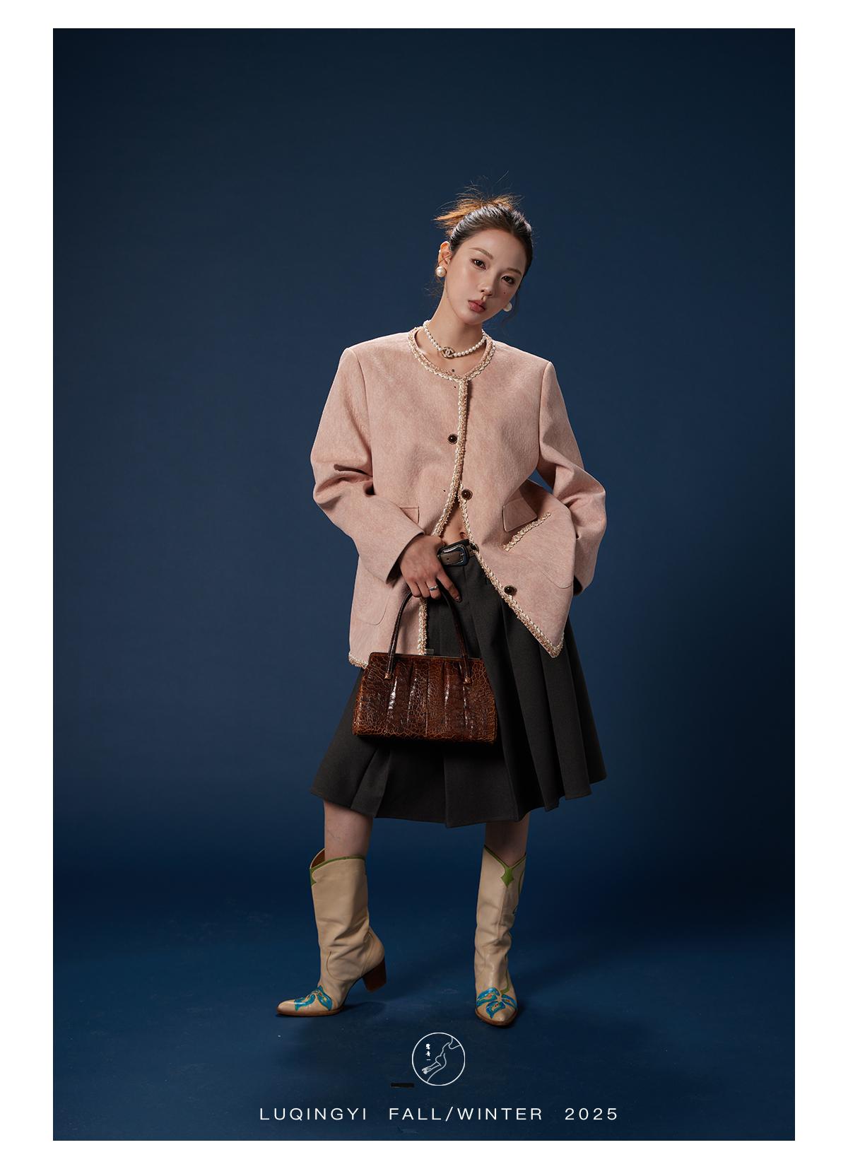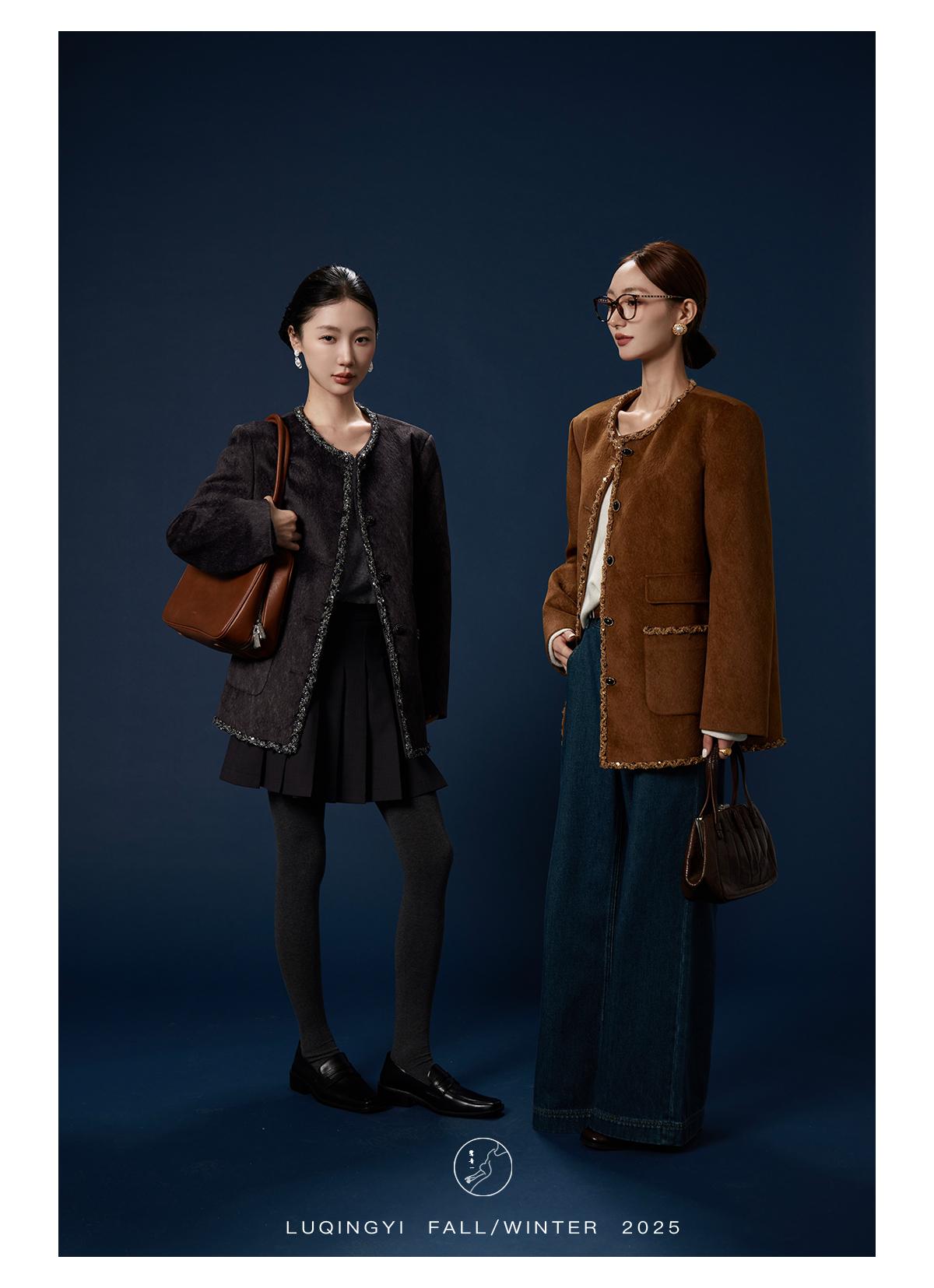 가을 겨울 베이지 색 플리스 여성 코트 2025 새로운 자이언트 잘 생긴 고유 한 아름다운 품격 작은 샤넬 스타일 꼬집기 허리 위로 의류