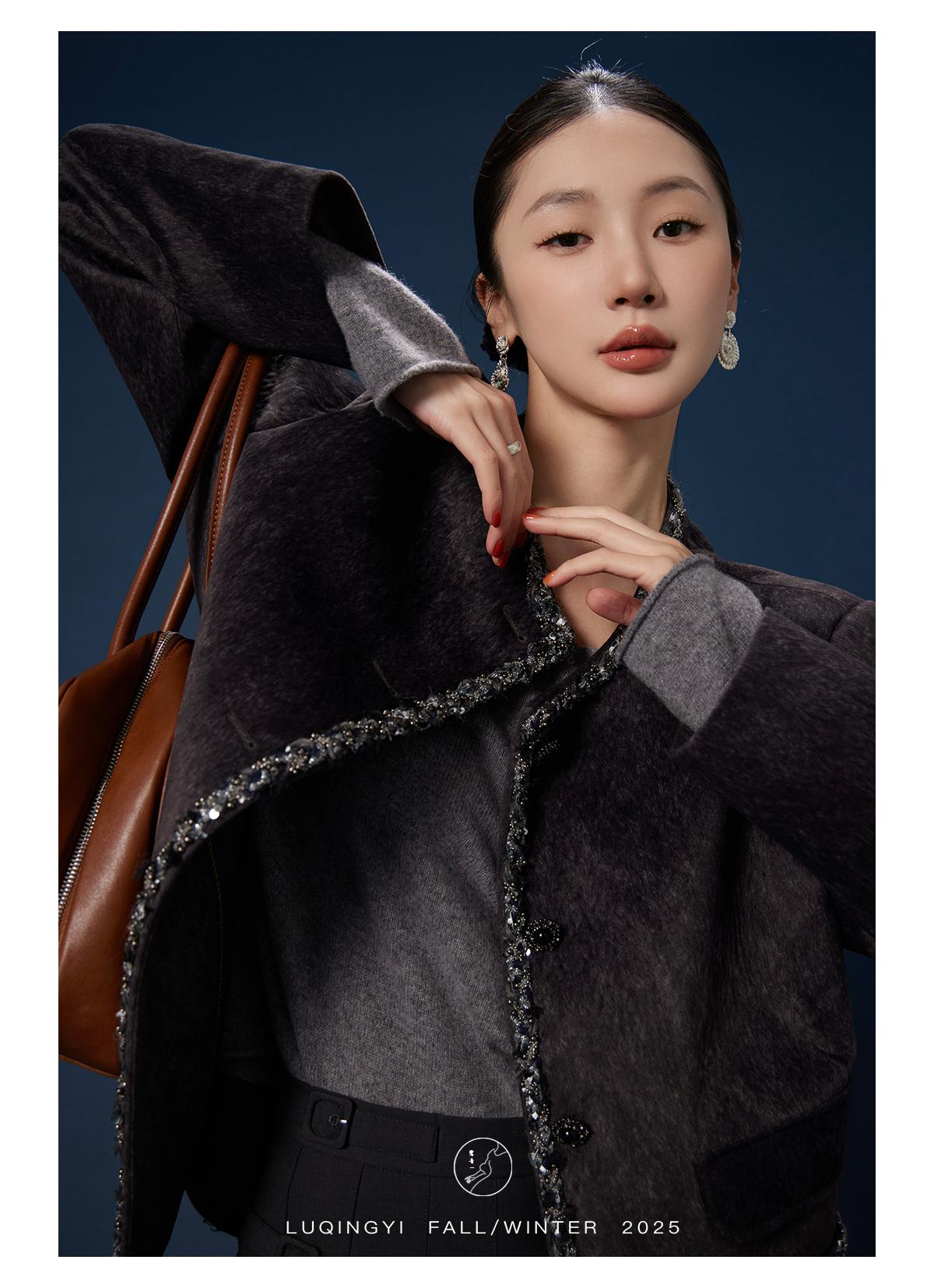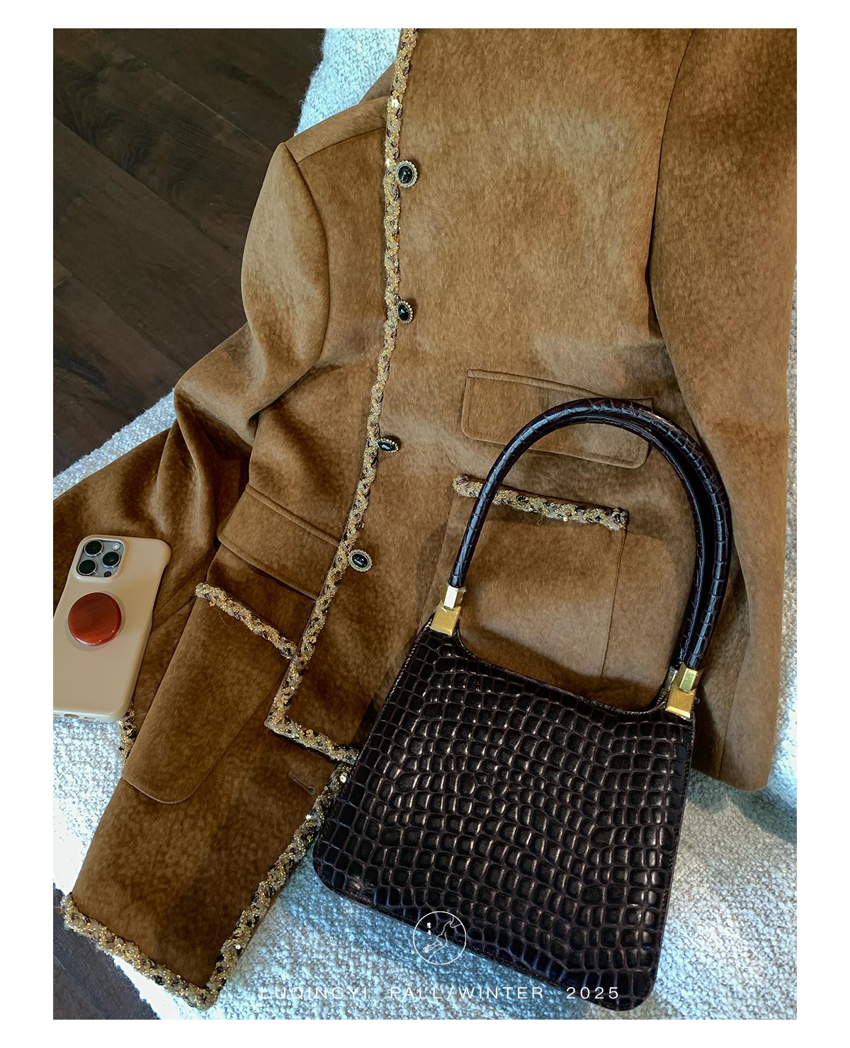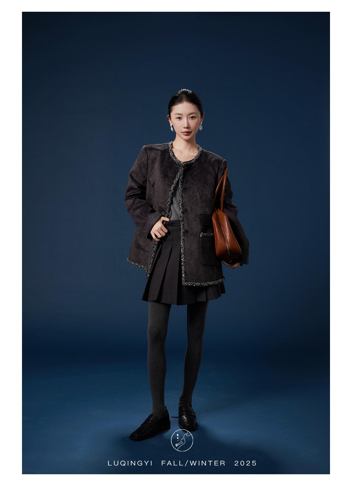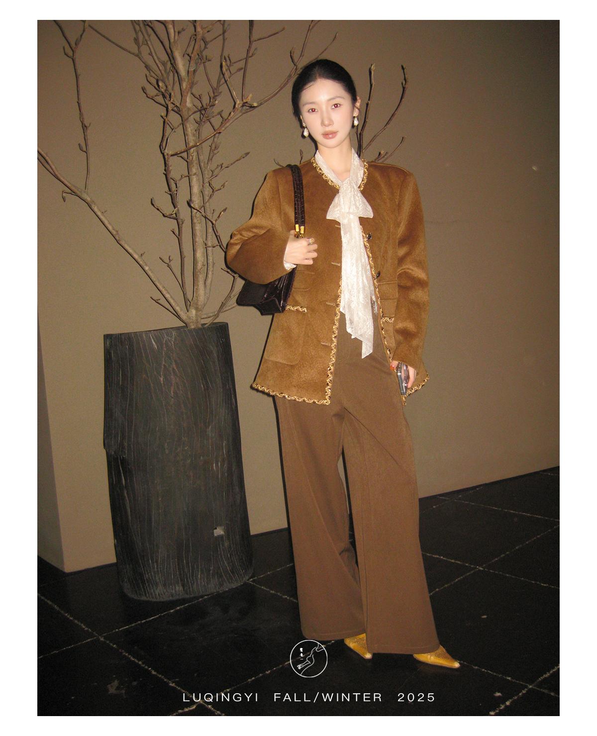 가을 겨울 베이지 색 플리스 여성 코트 2025 새로운 자이언트 잘 생긴 고유 한 아름다운 품격 작은 샤넬 스타일 꼬집기 허리 위로 의류