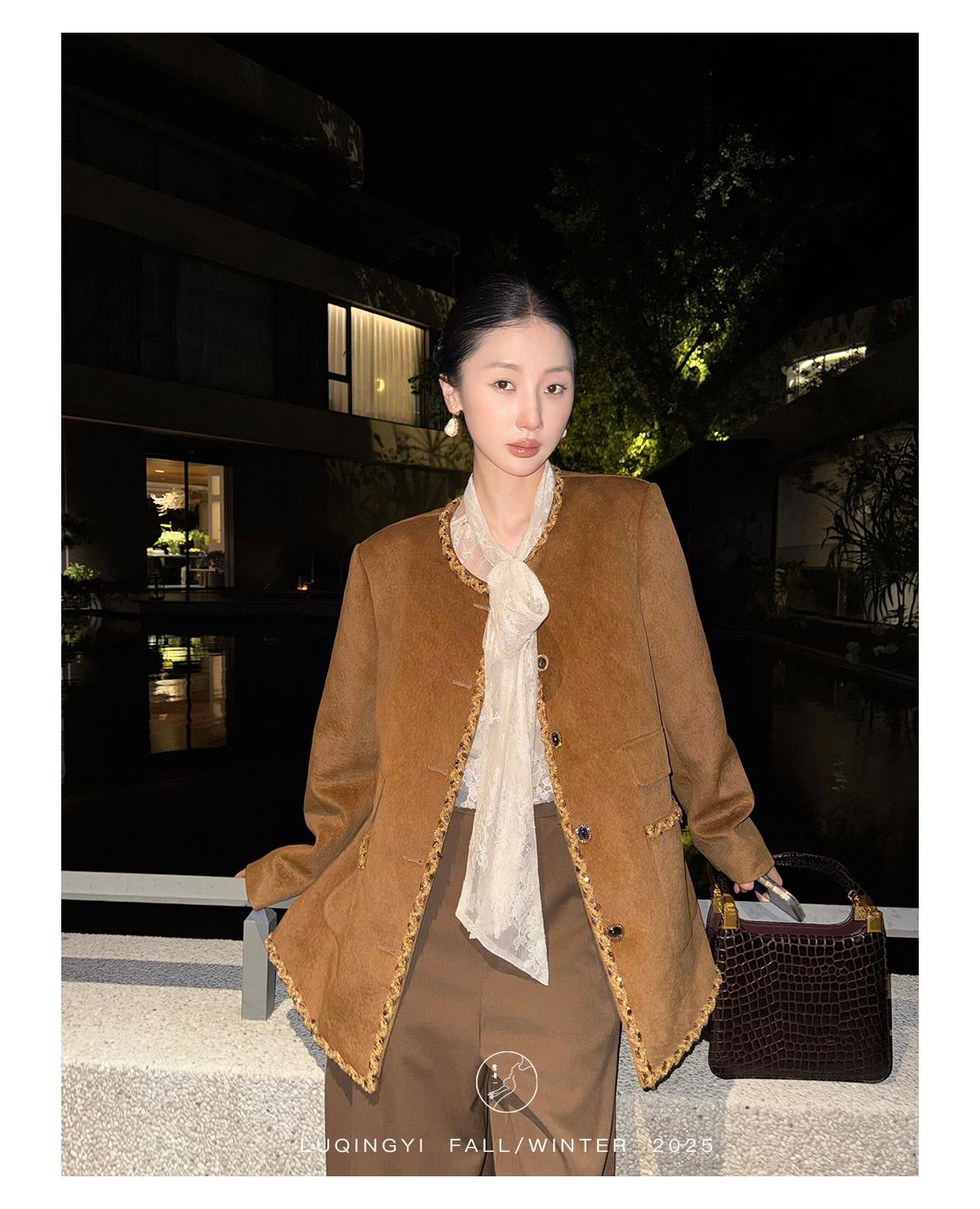 실사 커피 색상 레트로 아름다움 라드. 짧은 여성 코트 작은 키 가을 새로운 한국 스타일 디자인 센스 올해 인기 재킷