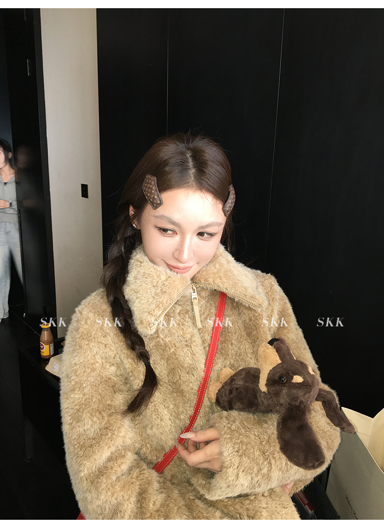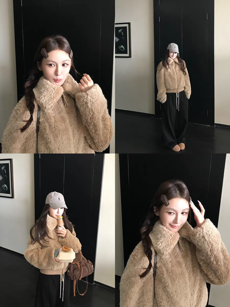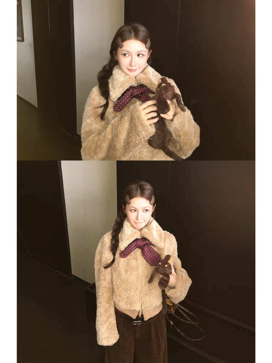 가을 겨울 베이지 색 플리스 여성 코트 2025 새로운 자이언트 잘 생긴 고유 한 아름다운 품격 작은 샤넬 스타일 꼬집기 허리 위로 의류