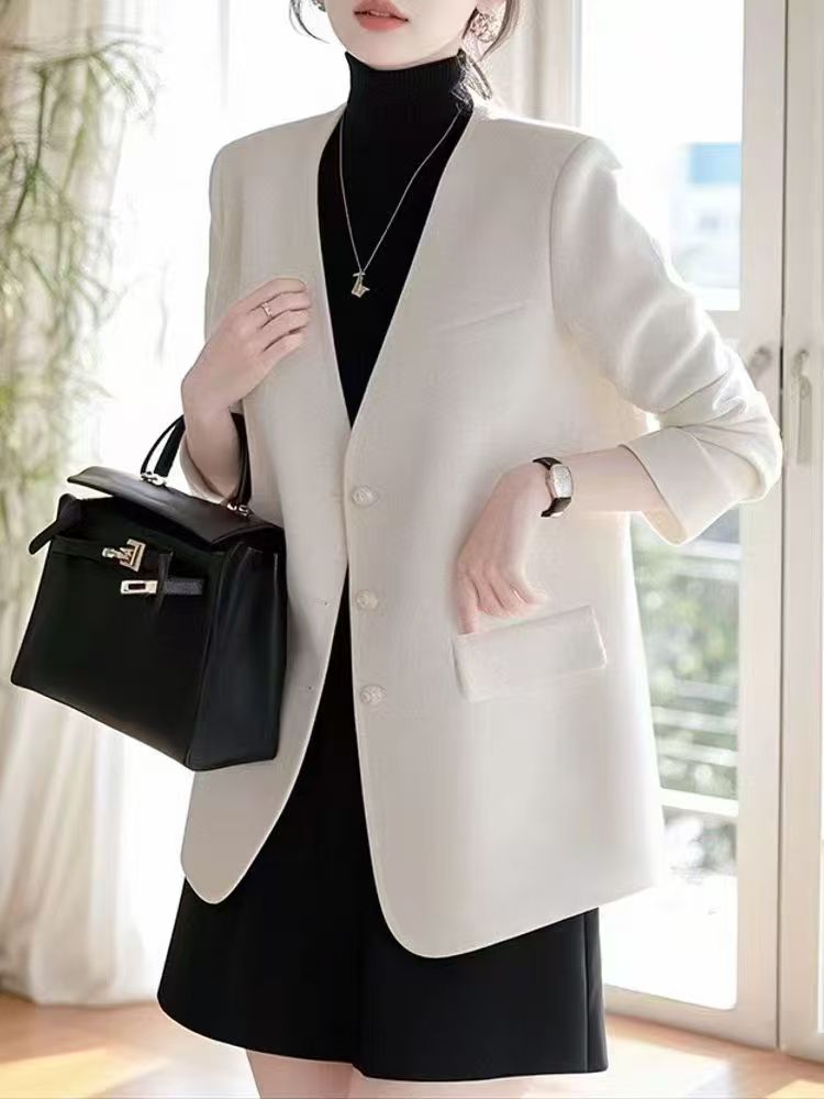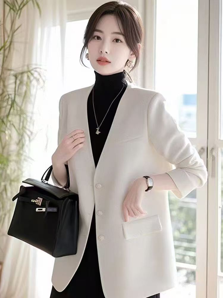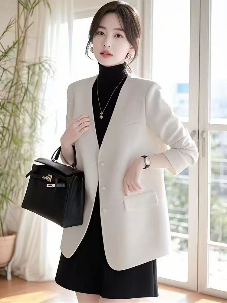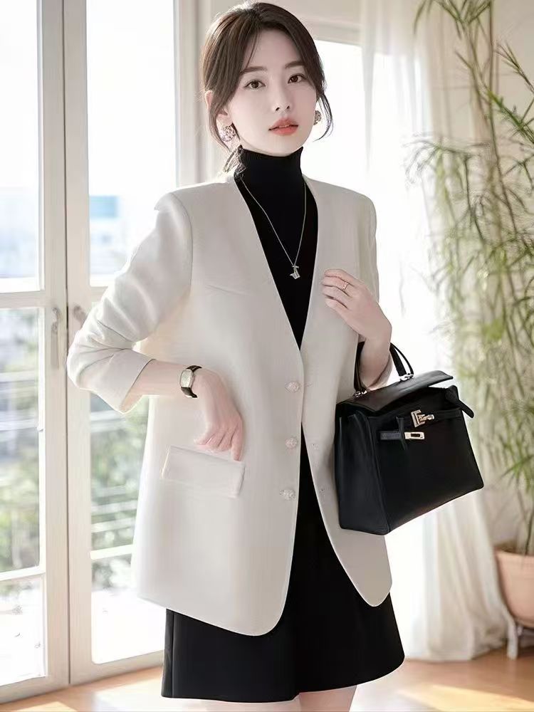 2025 새로운 올해 인기 작은 키 품격 명문 여성 고급 센스 화이트 정장 여성 코트 가을 겨울철 정장