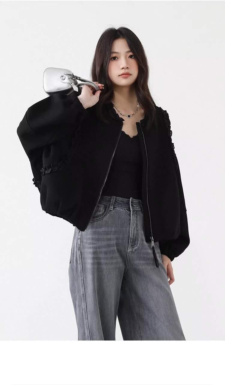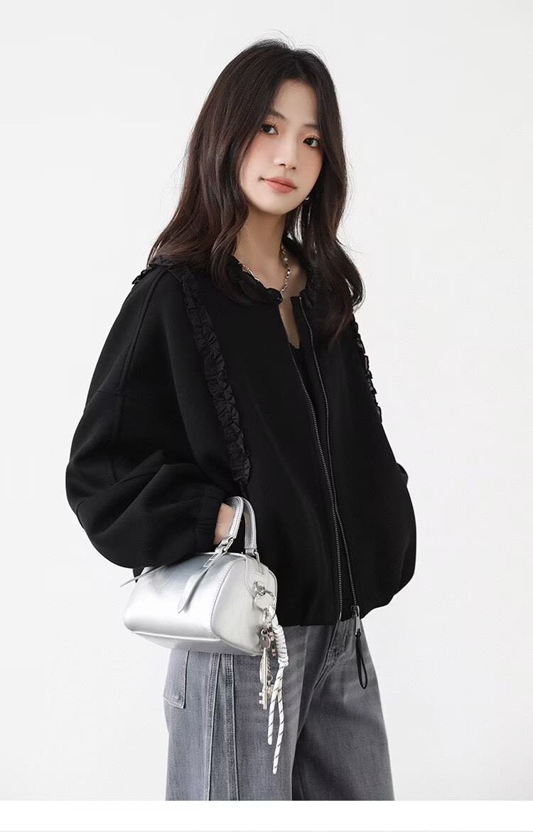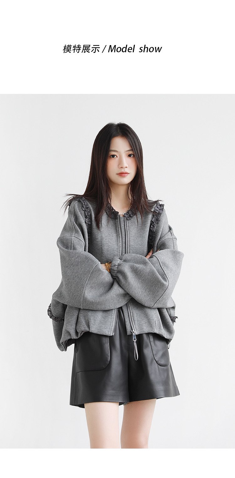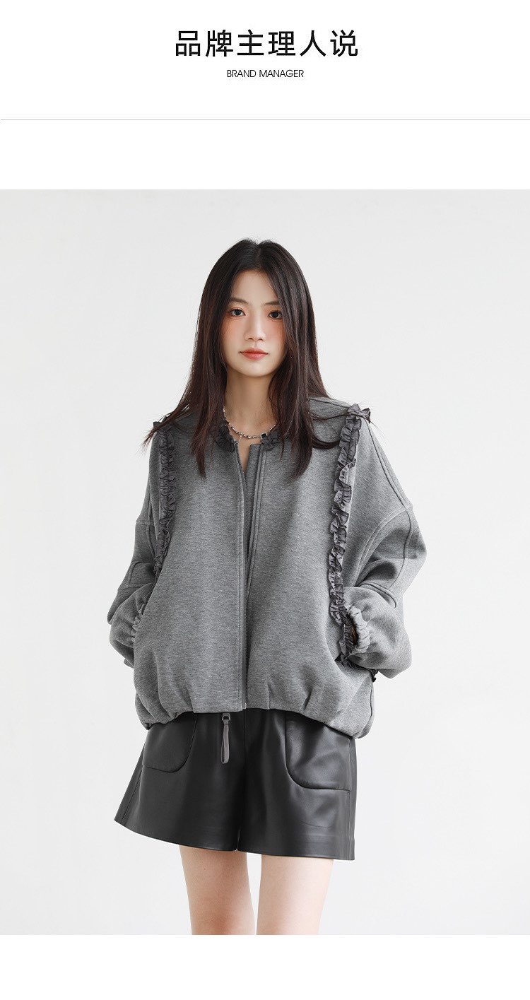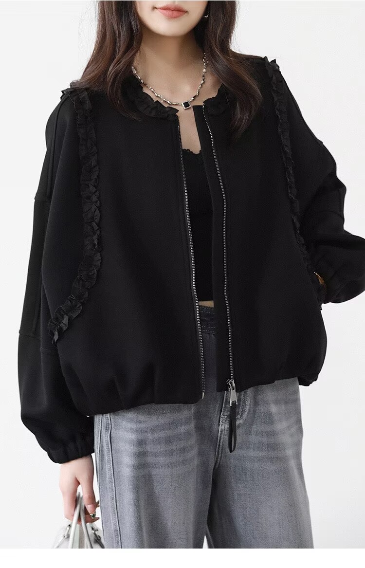 2025 가을 겨울 작은 대중 디자인 센스 레이스 측면 라운드 넥 여성 코트 가을 루즈핏 캐주얼 다용도 재킷 맨위