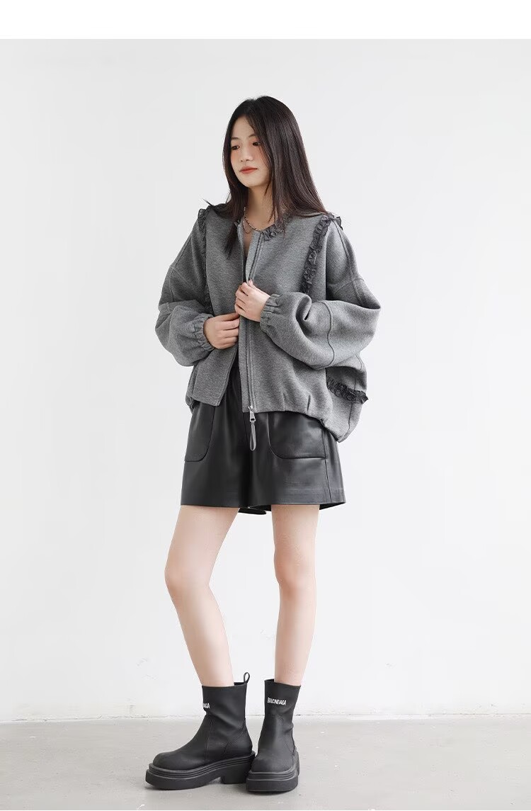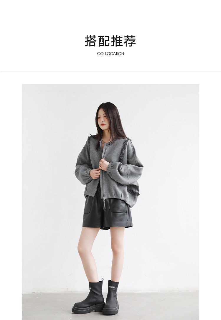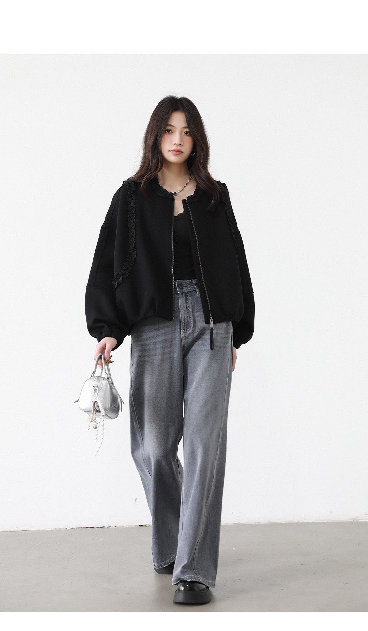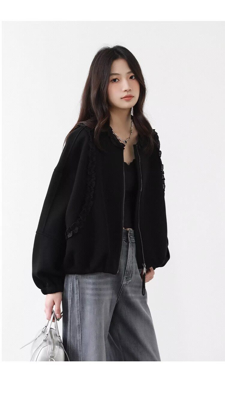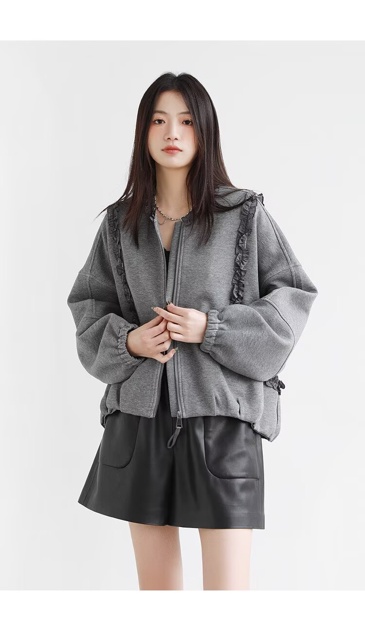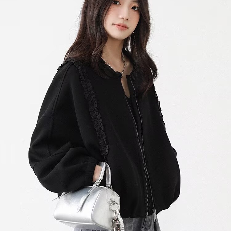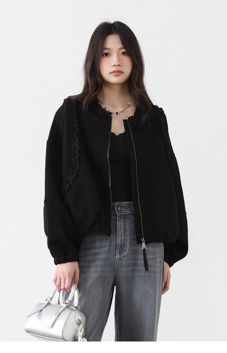 2025 가을 겨울 작은 대중 디자인 센스 레이스 측면 라운드 넥 여성 코트 가을 루즈핏 캐주얼 다용도 재킷 맨위