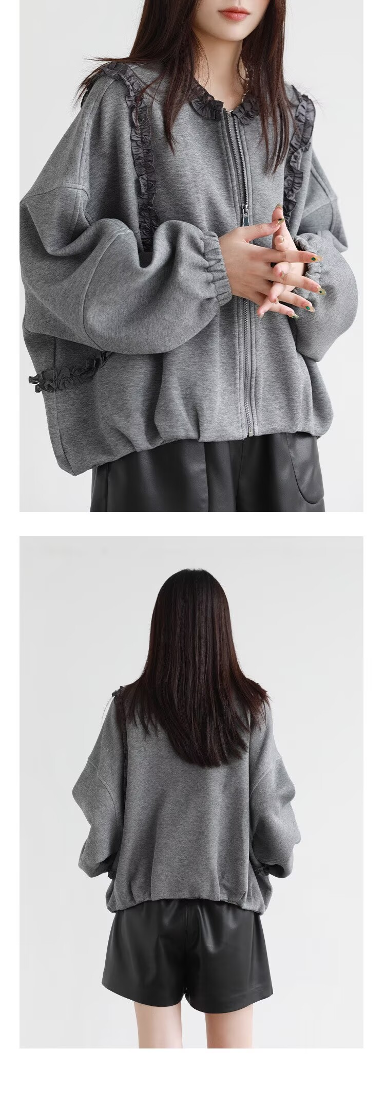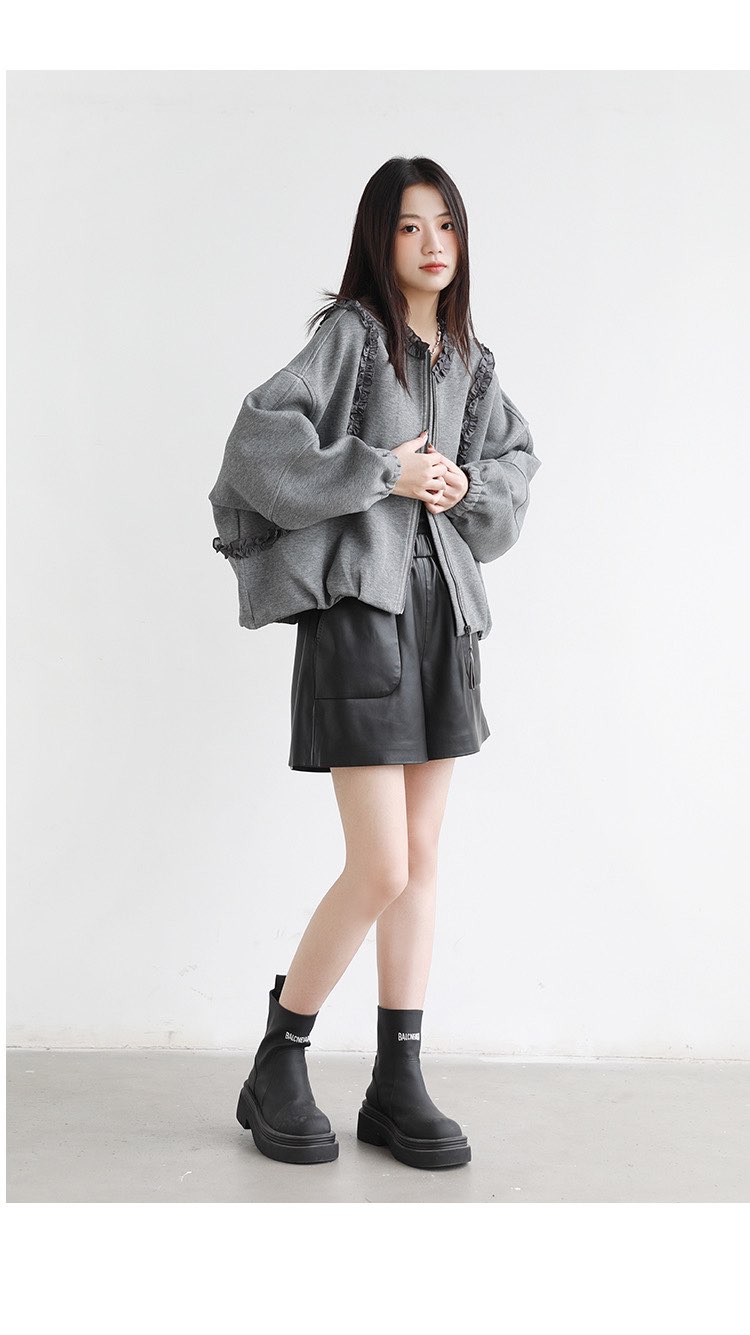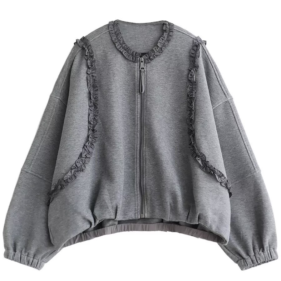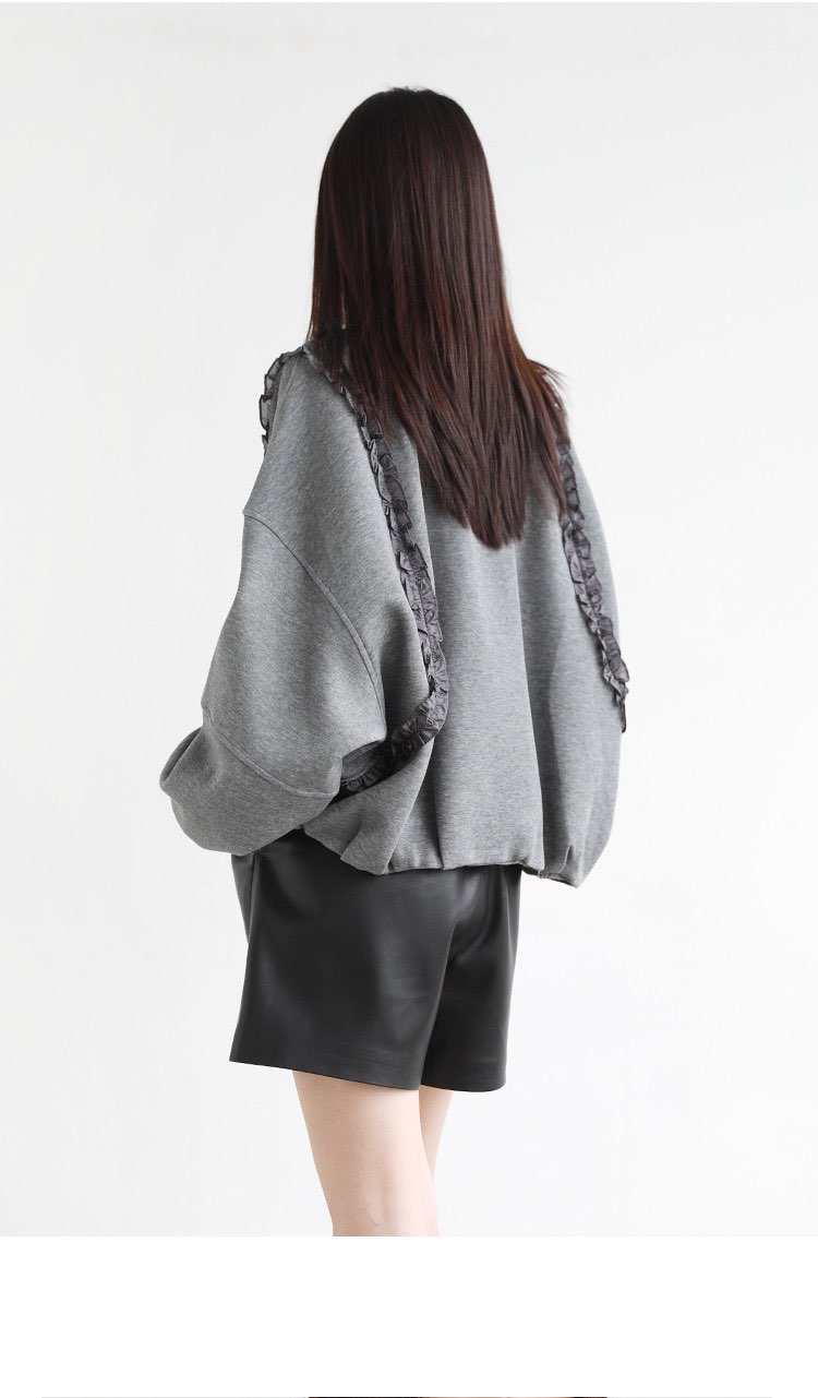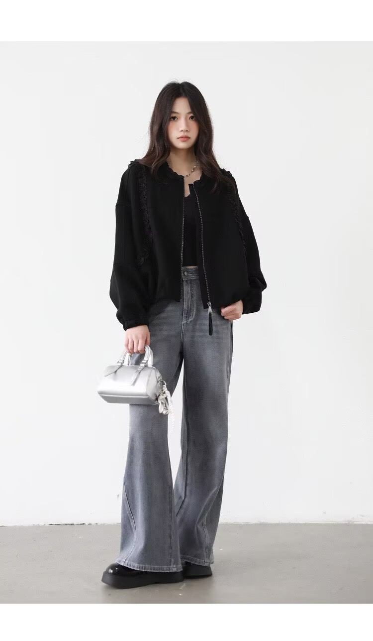 2025 가을 겨울 작은 대중 디자인 센스 레이스 측면 라운드 넥 여성 코트 가을 루즈핏 캐주얼 다용도 재킷 맨위