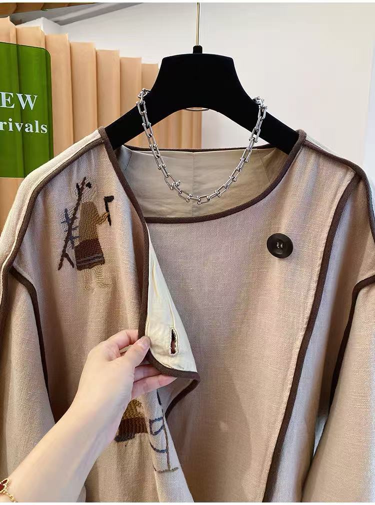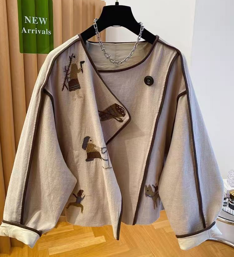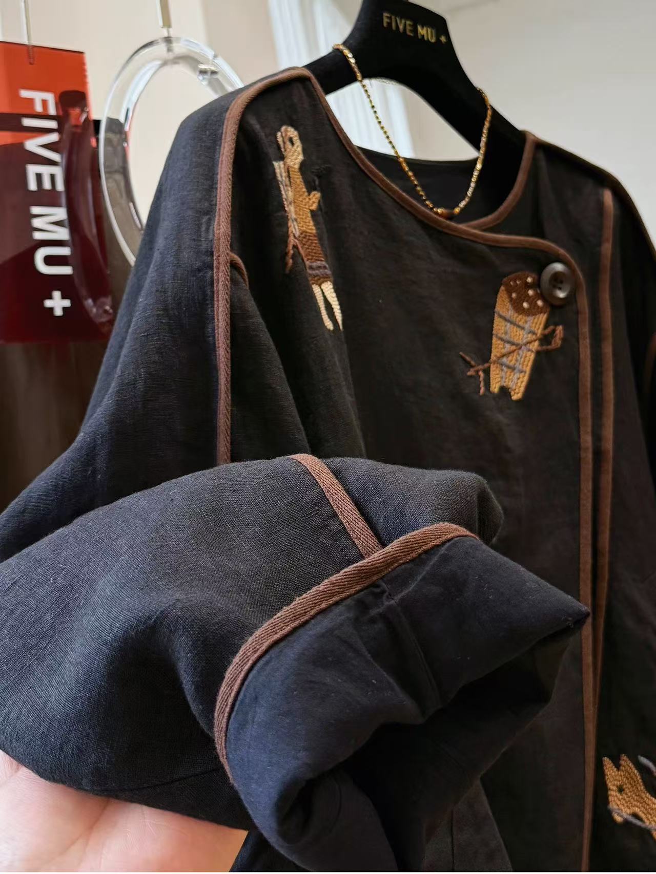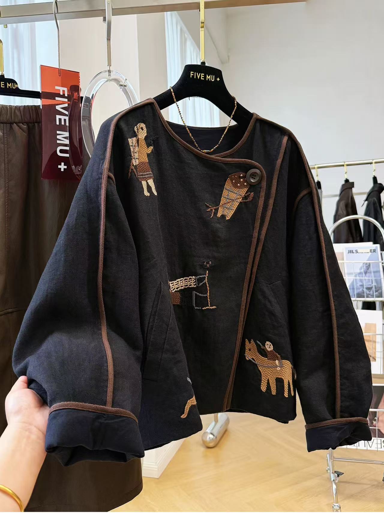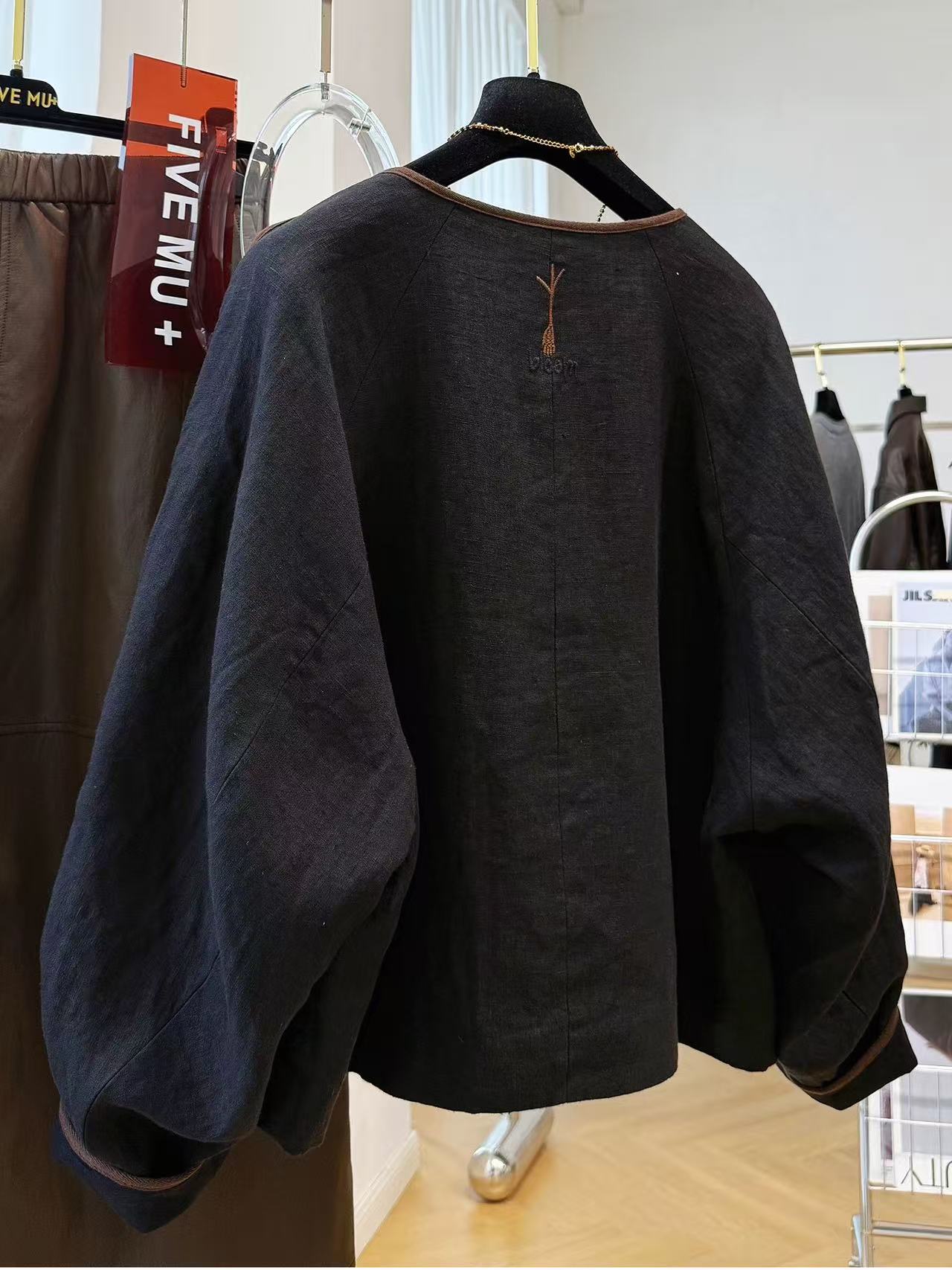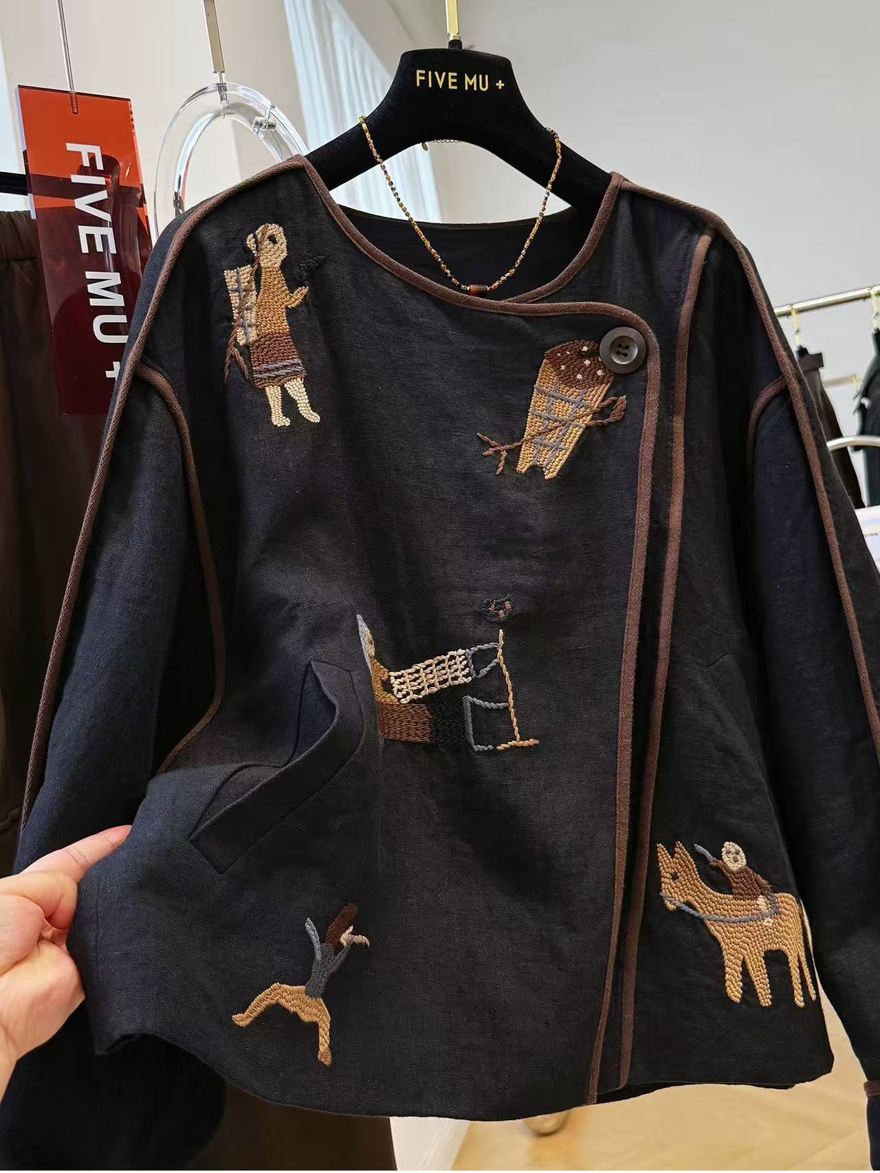 가을 의상 새로운 고급 아마 무거운 작업 자수 라운드 넥 쇼트 스타일 재킷 자이언트 잘 생긴 ~ 중 루즈핏 캐주얼 재킷 맨위