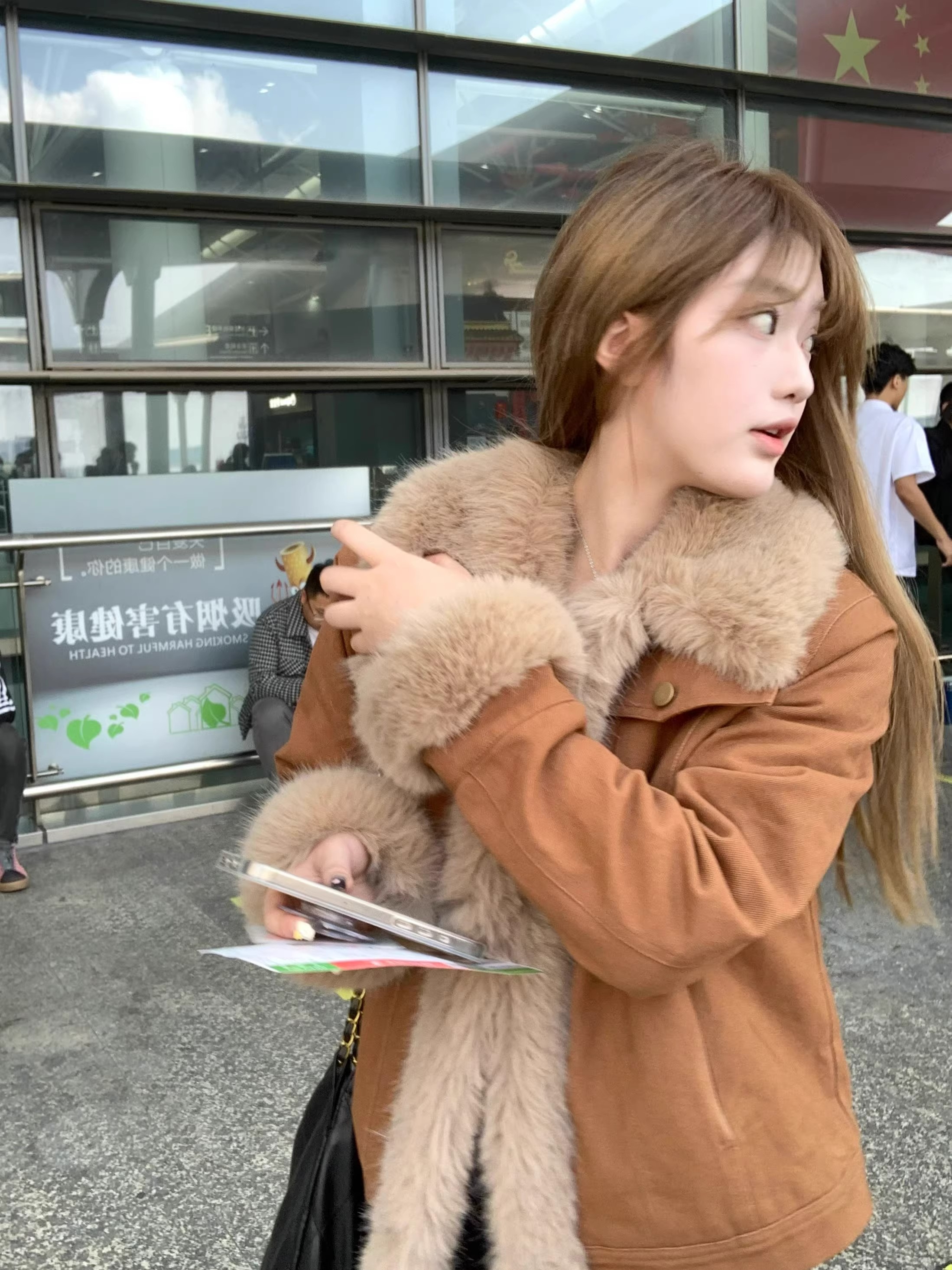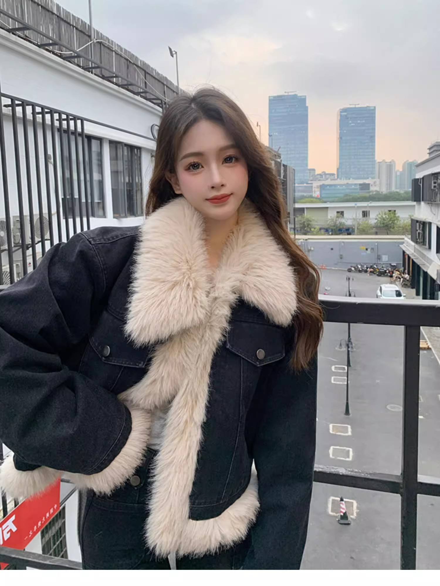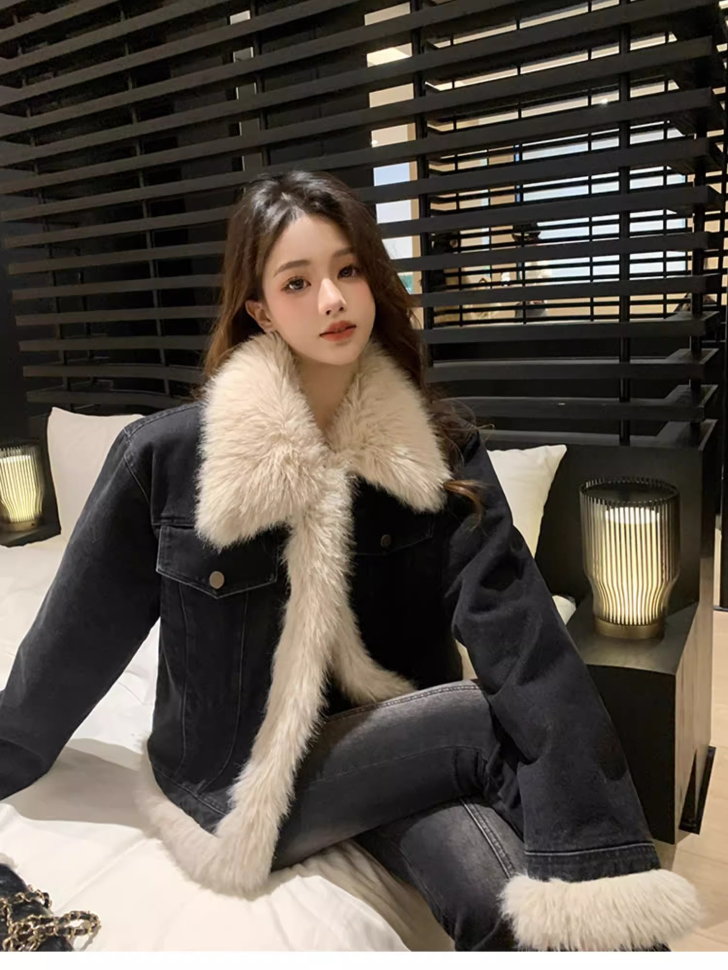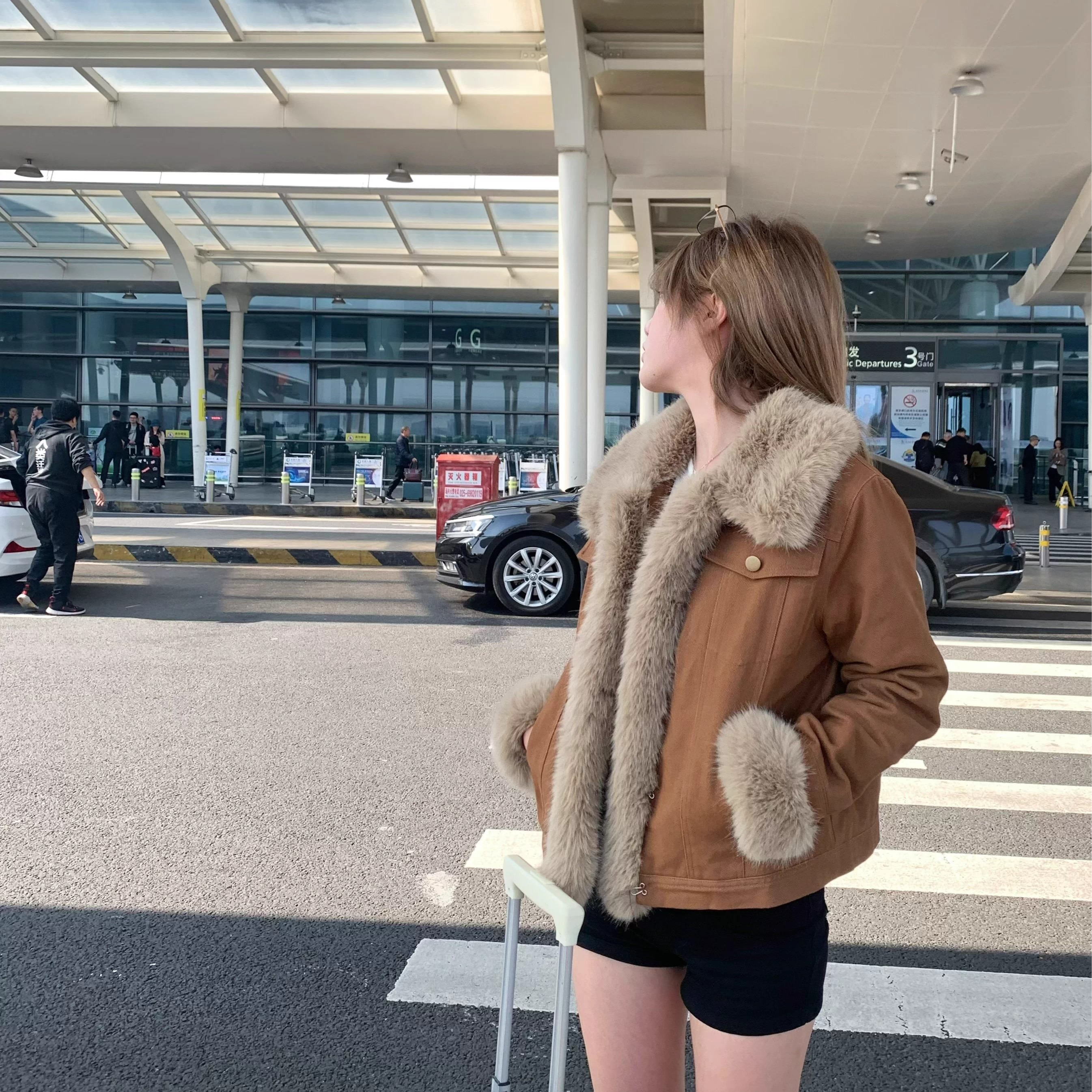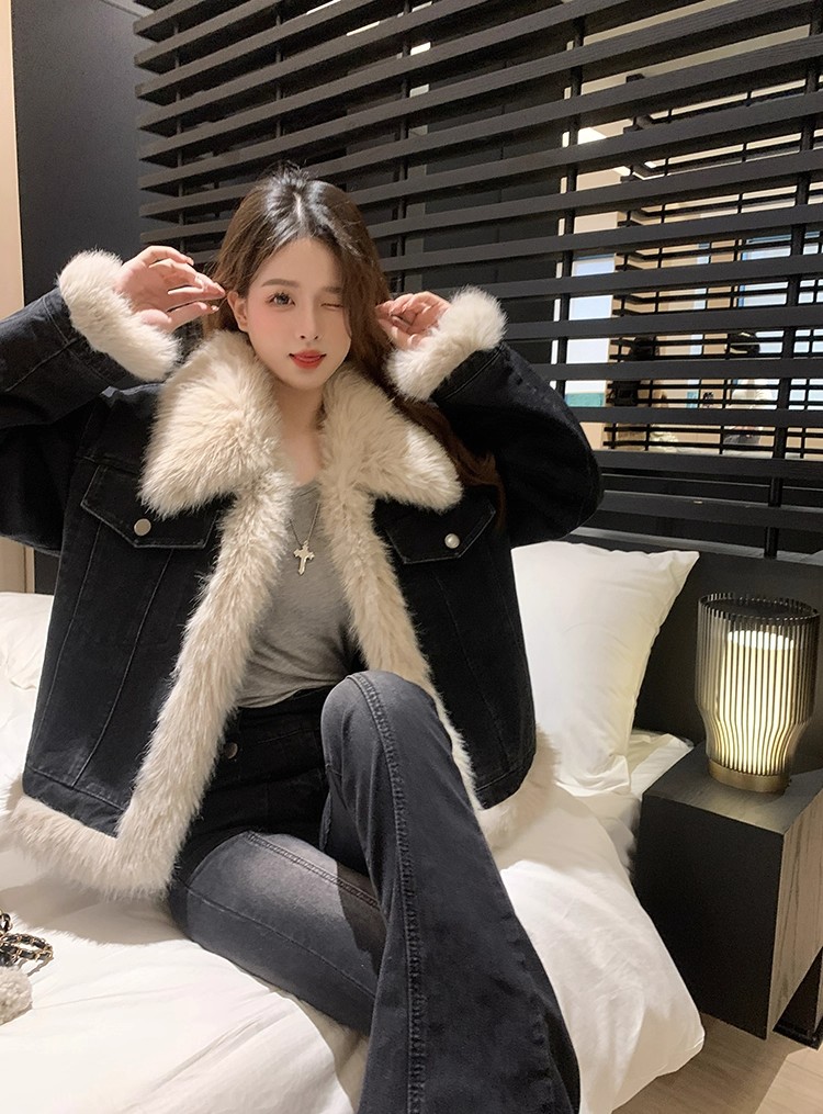 디자인 아름다움 라드. 레트로 브라운 모피 여성 코트 2025 가을 겨울 쇼트 스타일 모방 데님 면 의류