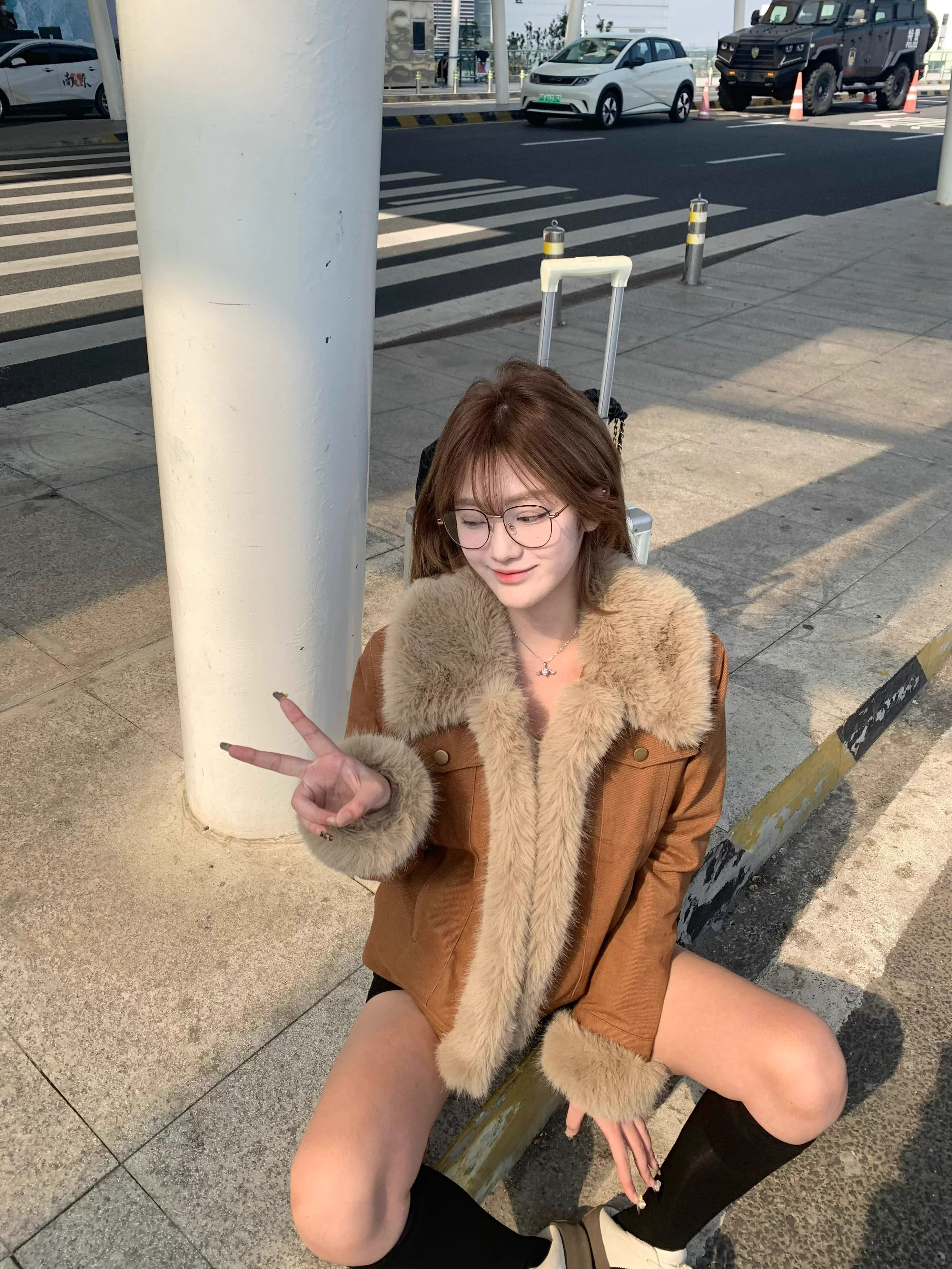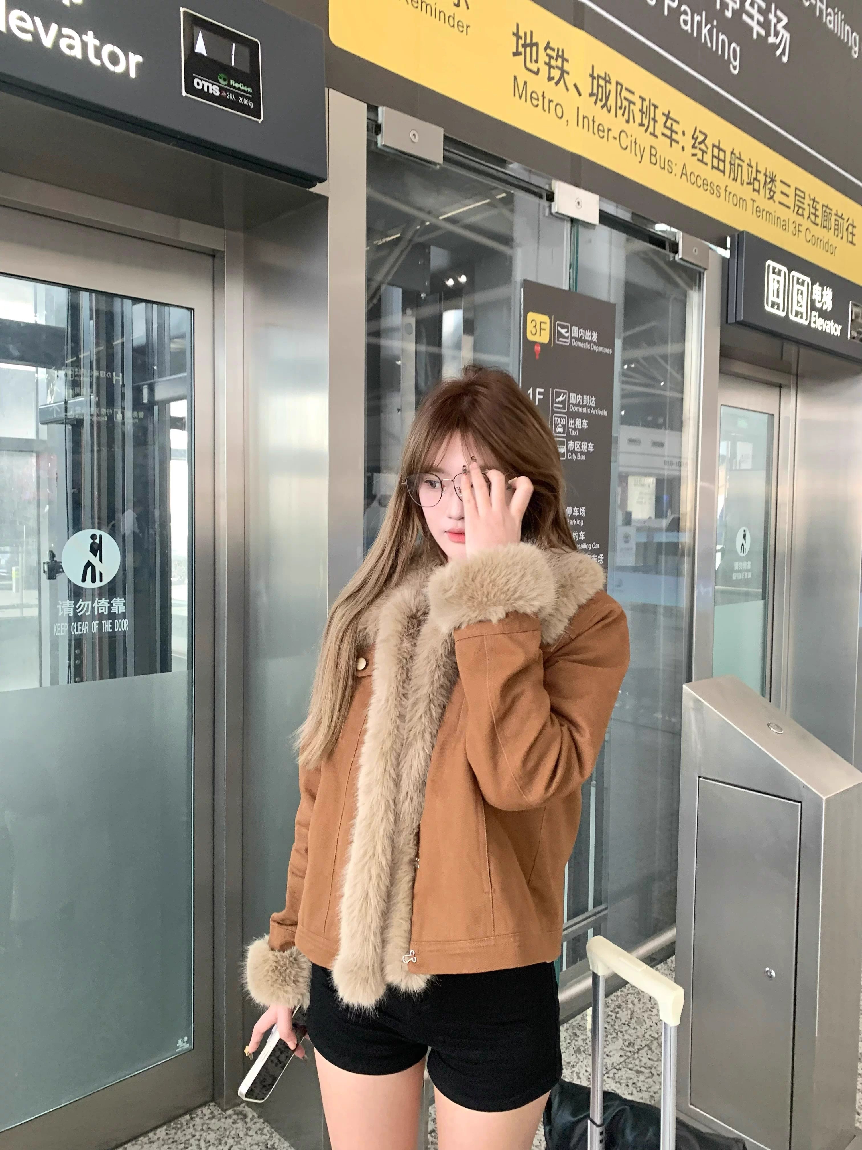 한국 스타일 고급 센스 피모 하나 두꺼운 여성 코트 2025 가을 겨울 새로운 루즈핏 작은 키 스웨이드 원단 재킷