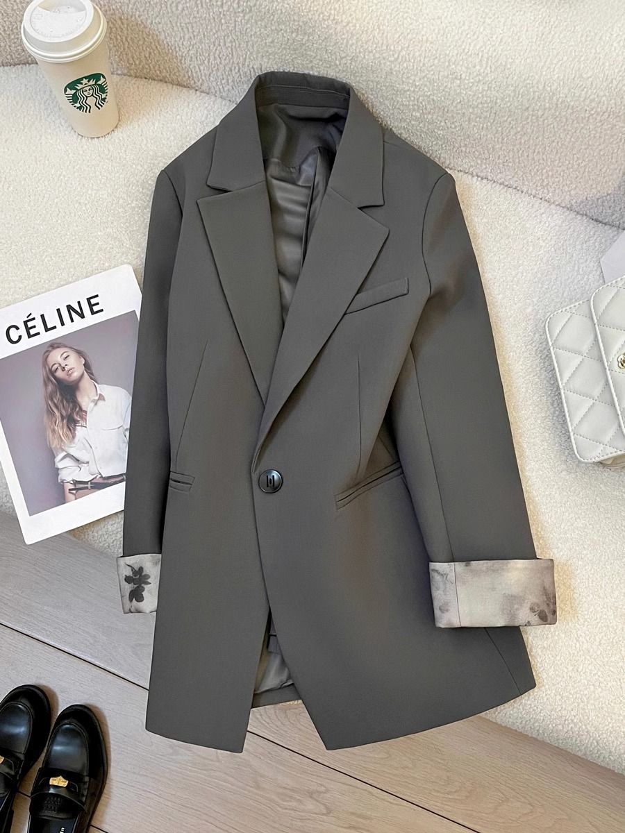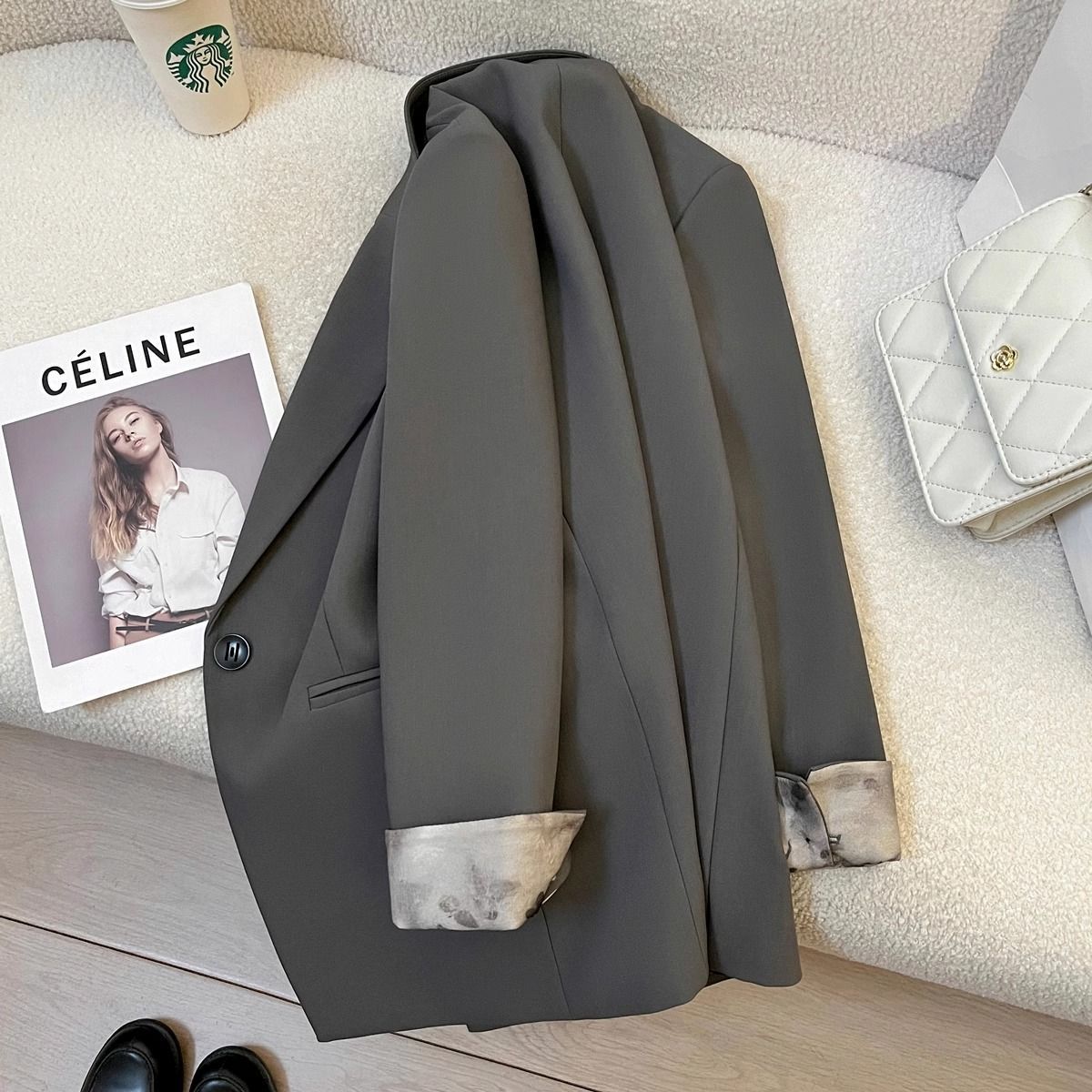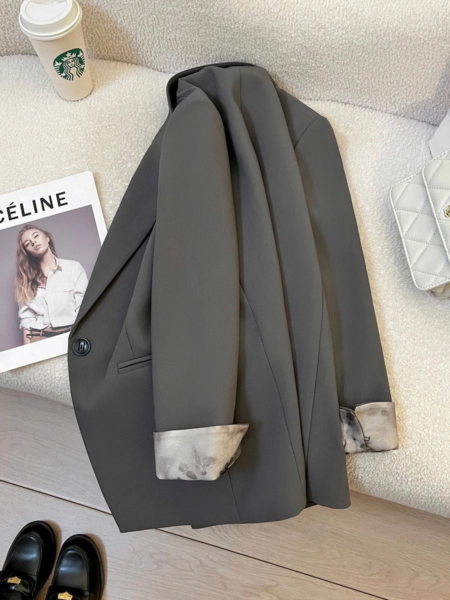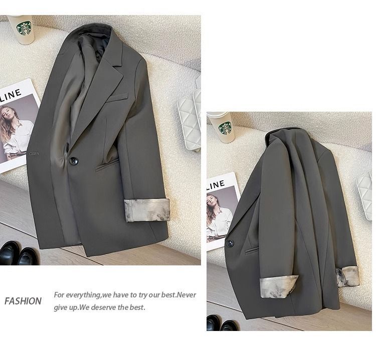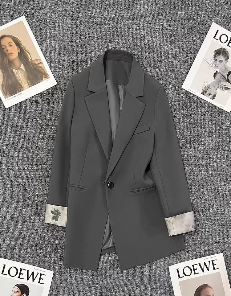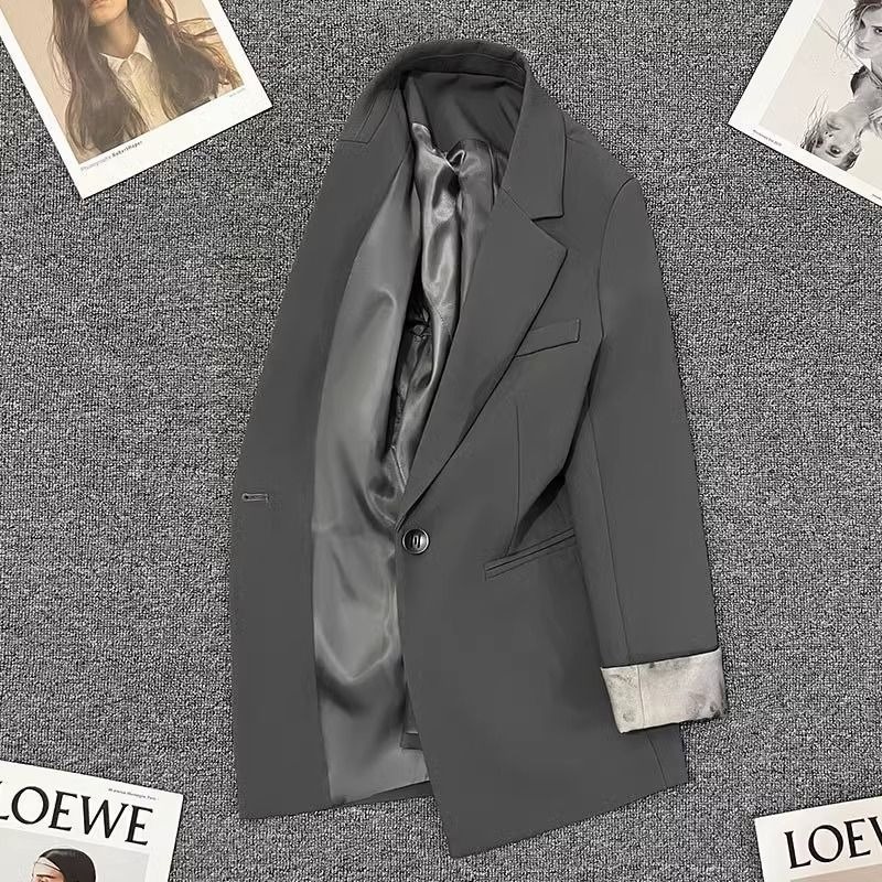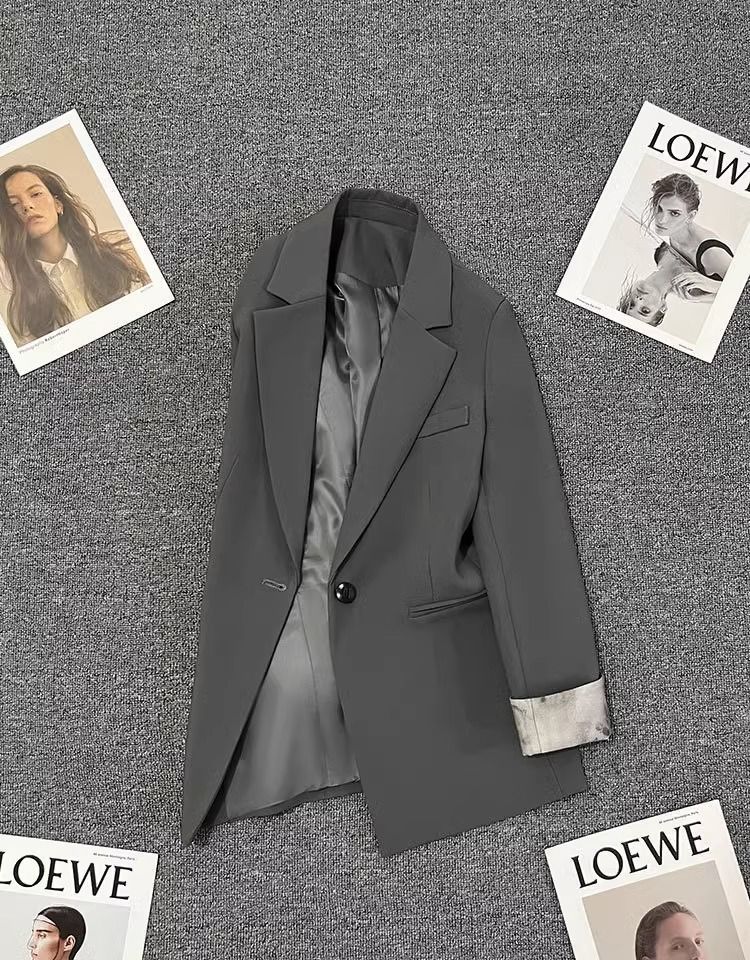 빅 사이즈 캐주얼 디자인 센스 정장 여성 코트 2025 봄 새로운 고유 한 커프스 고급 센스 작은 정장 맨위