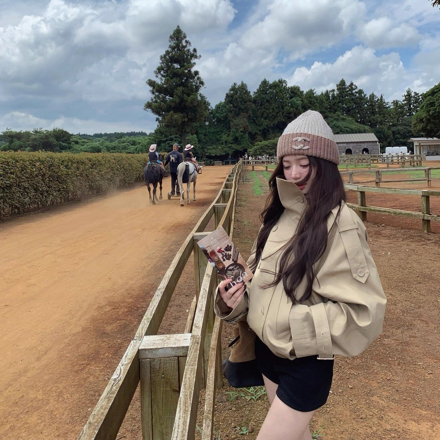영국식 바람 여성 코트 2025 이른 가을 새로운 품격 명문 여성 고급 센스 빛 럭셔리 이중 버튼 스탠드 칼라 쇼트 스타일 바람막이