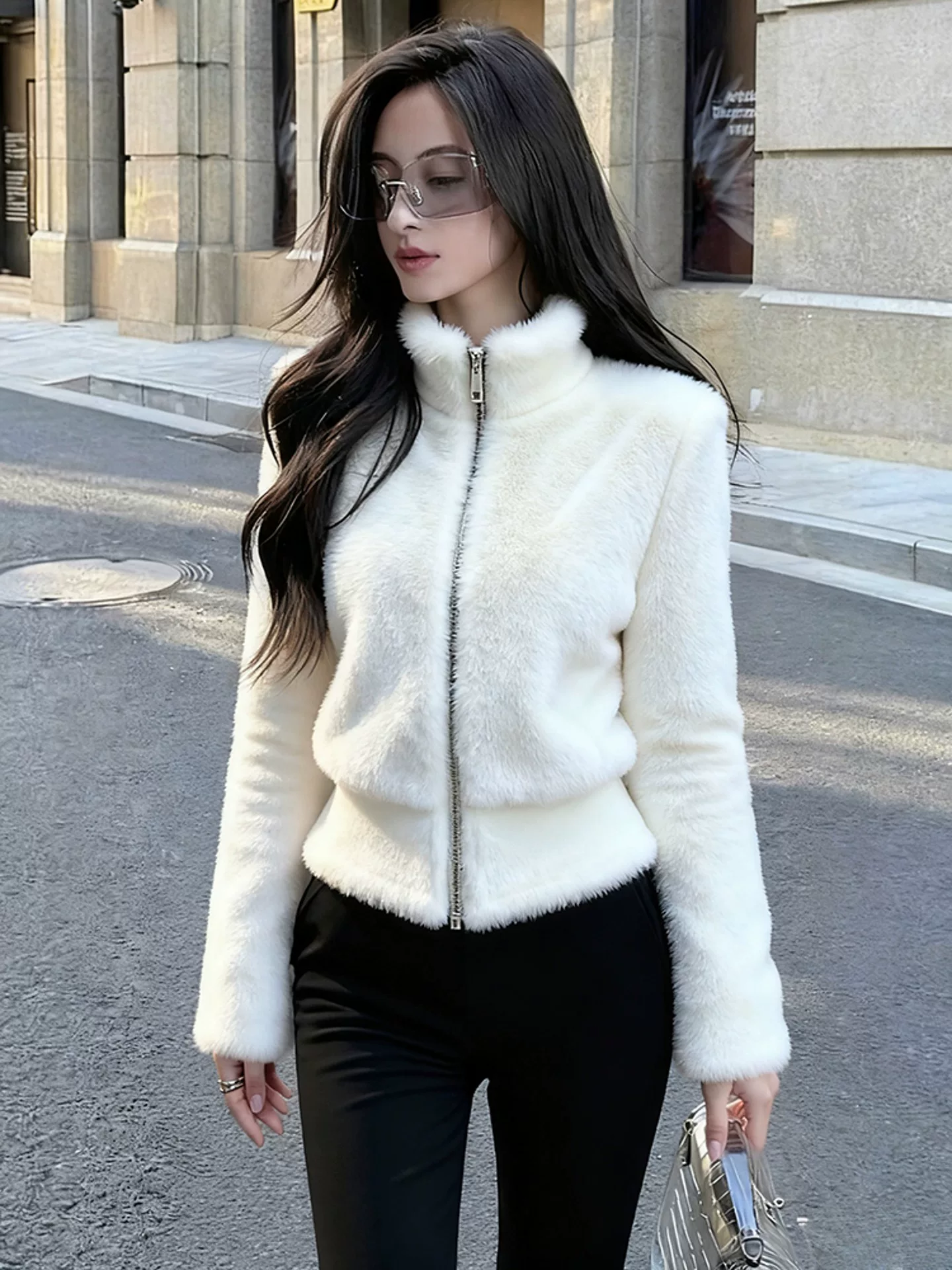 화이트 플리스 두꺼움 여성 코트 2025 가을 겨울 자이언트 잘 생긴 고유 한 아름다운 외국 가스 세련된 작은 샤넬 스타일 쇼트 스타일 맨위