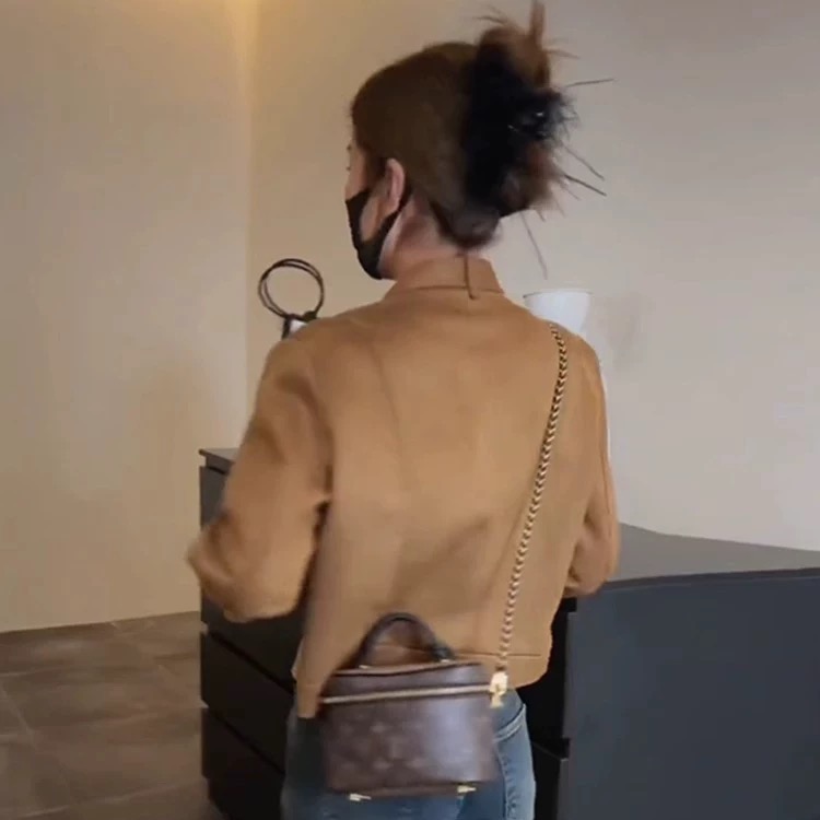 가을 겨울 사슴 캐시미어 아메리칸 쇼트 스타일 스탠드 칼라 여성 재킷 커플 털이 있고 두꺼운 고급 센스 캐주얼 재킷
