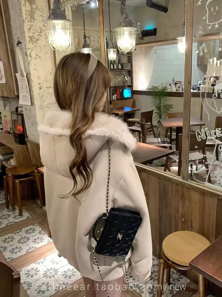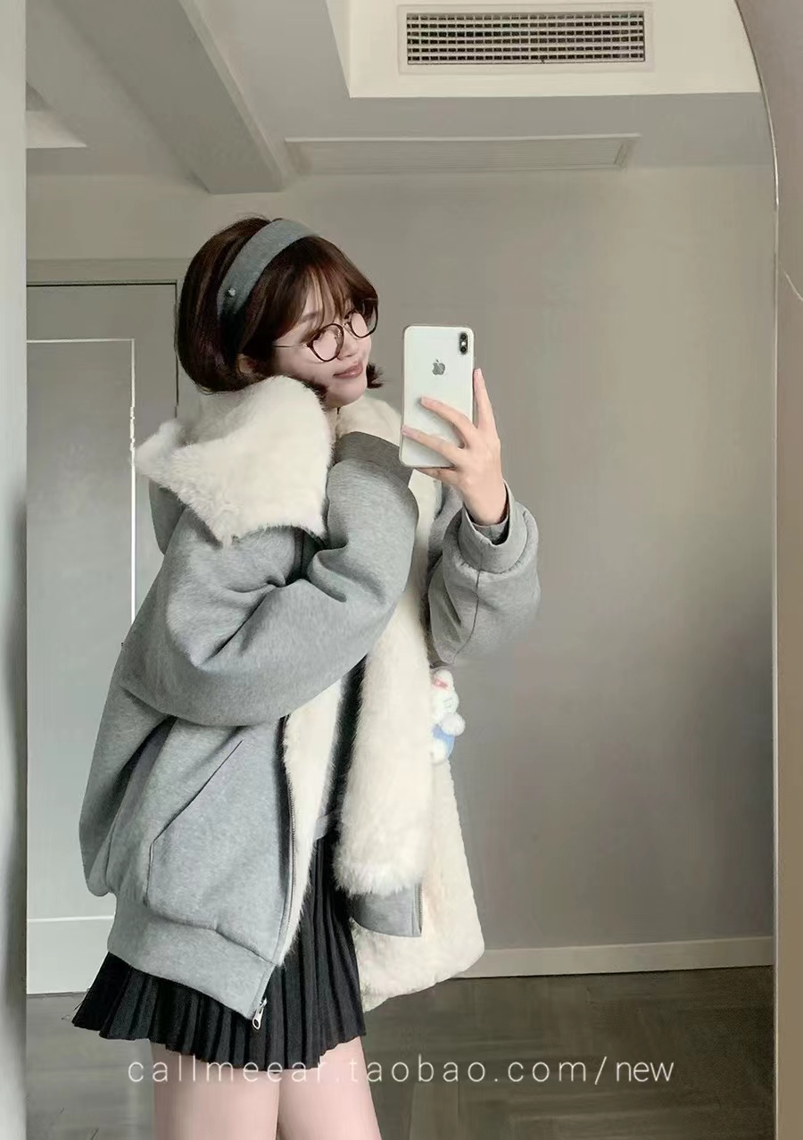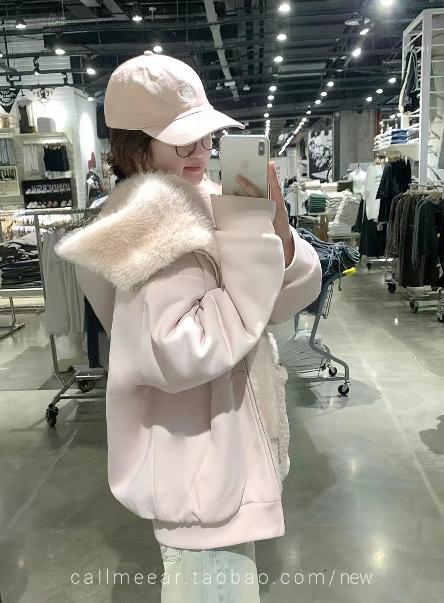 가을 겨울 사슴 캐시미어 아메리칸 쇼트 스타일 스탠드 칼라 여성 재킷 커플 털이 있고 두꺼운 고급 센스 캐주얼 재킷
