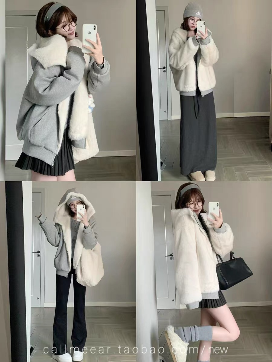 callmeear 롱 코트 모피 재킷 여성 겨울 루즈핏 보온