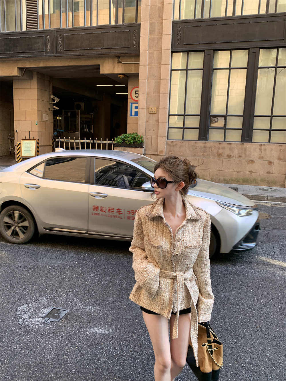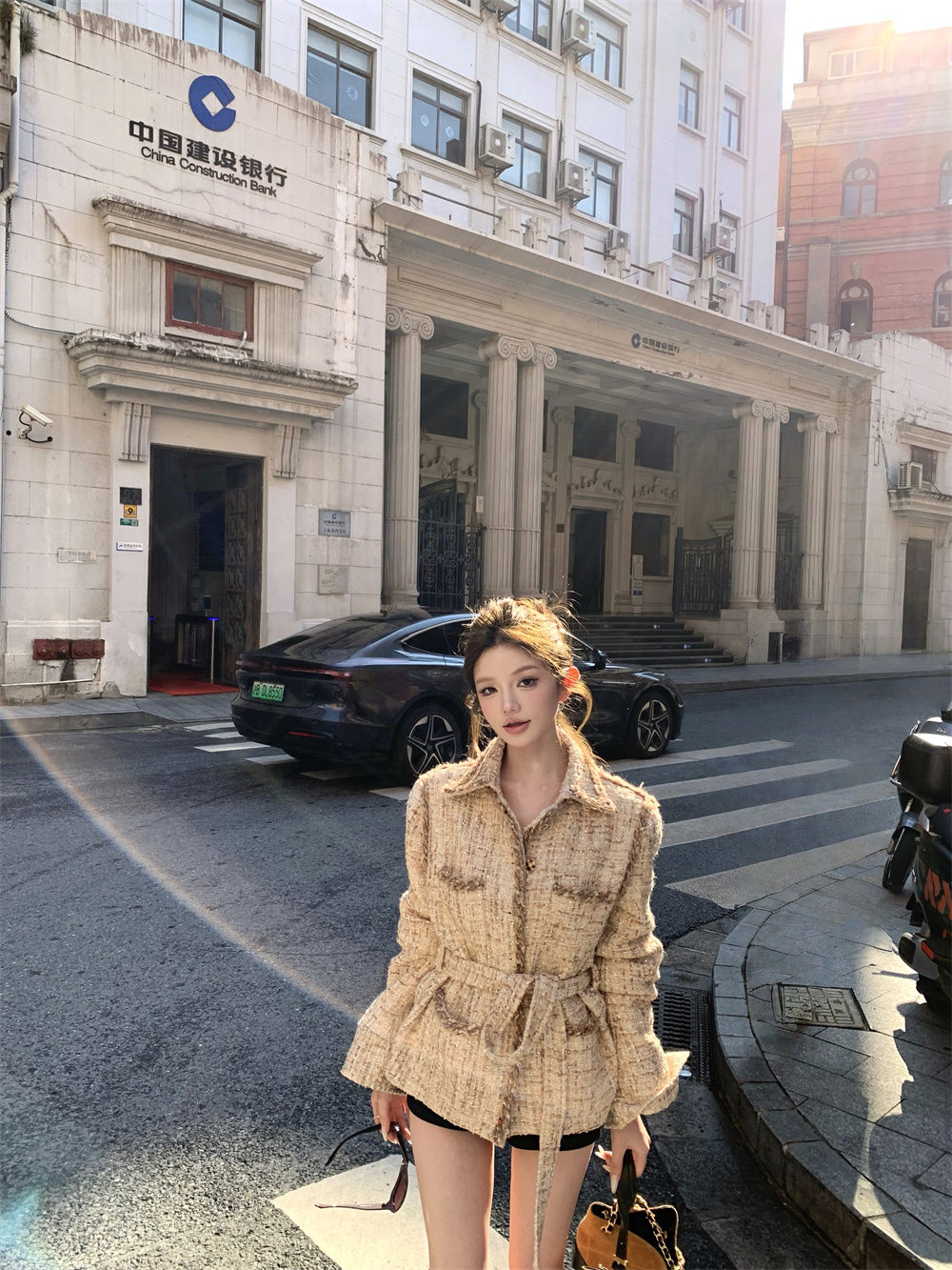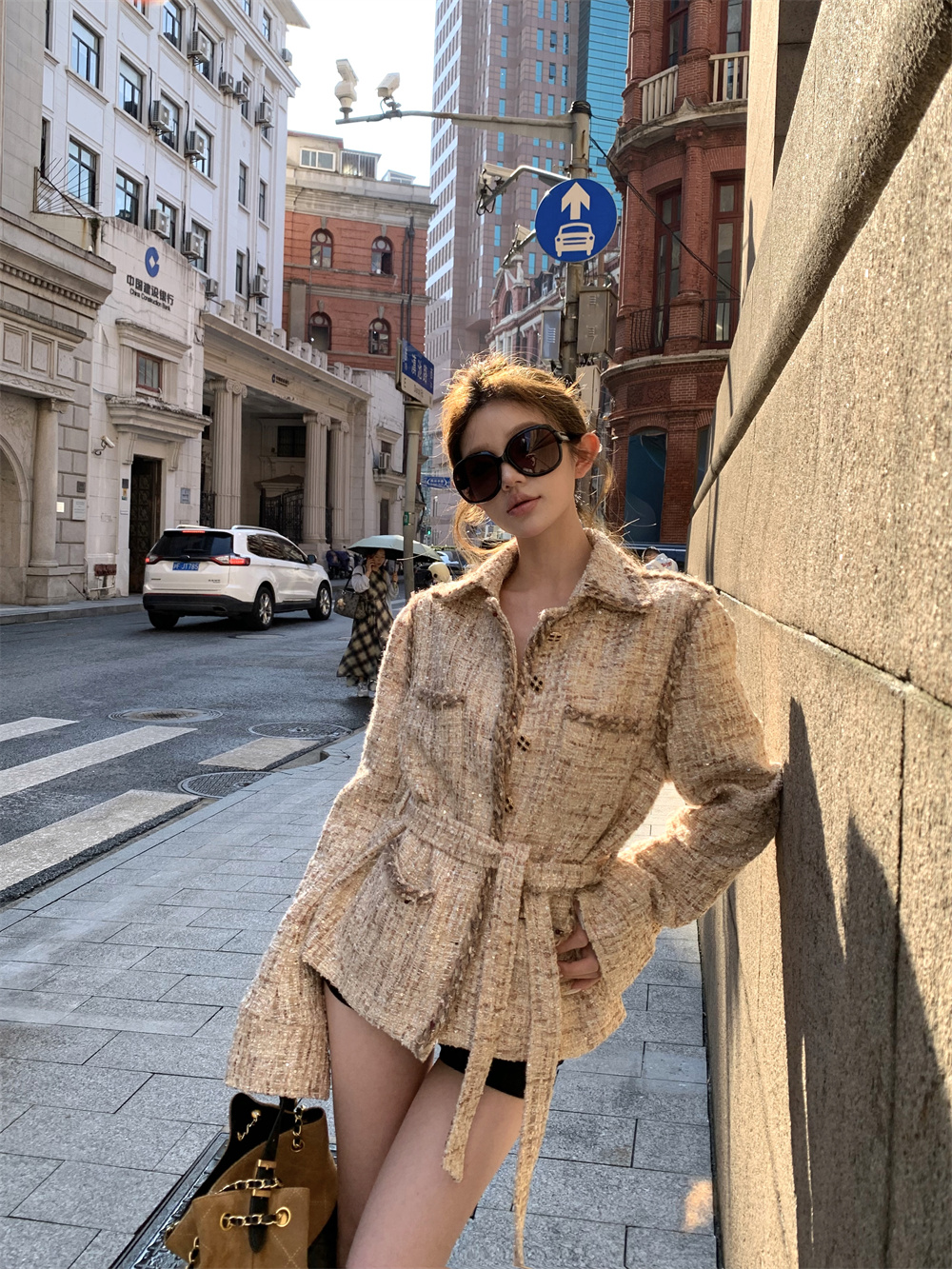 실사 가을 겨울 새로운 품격 천 골드 나만의 것을 가져와 라. 벨트 폴로 칼라 캐주얼 비싼 센스 샤오시엔 재킷