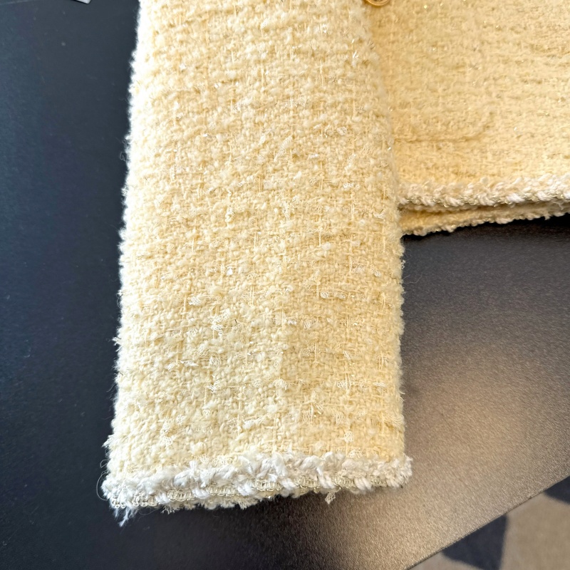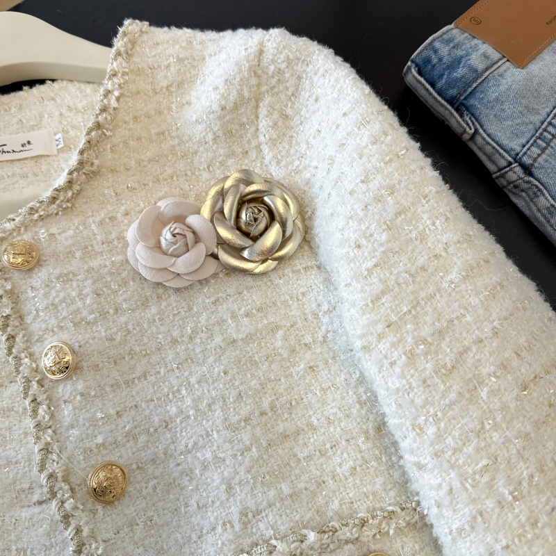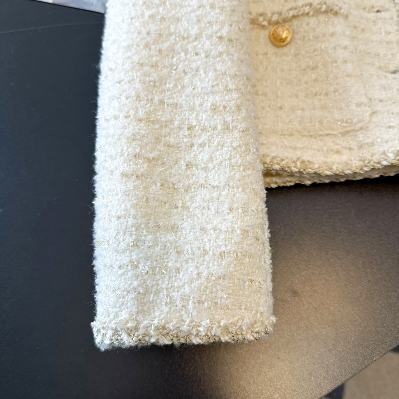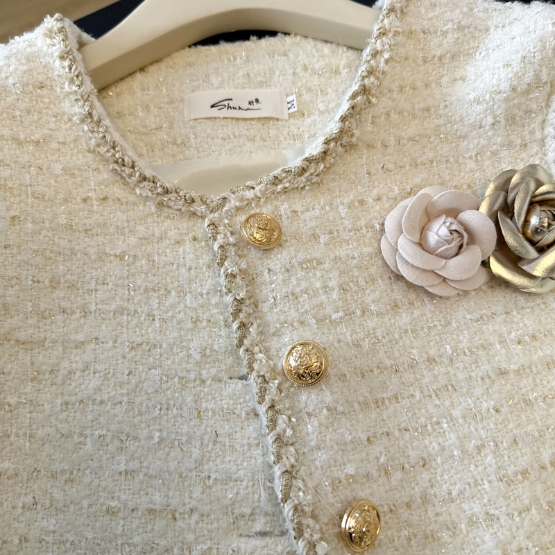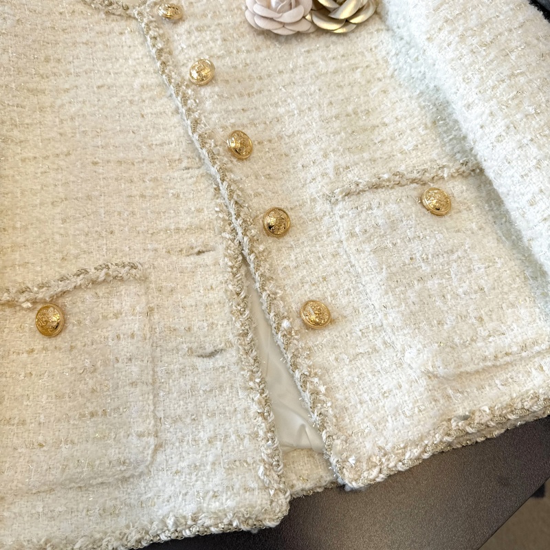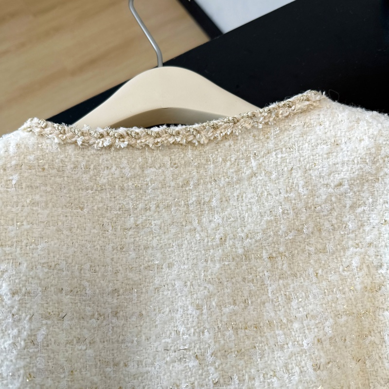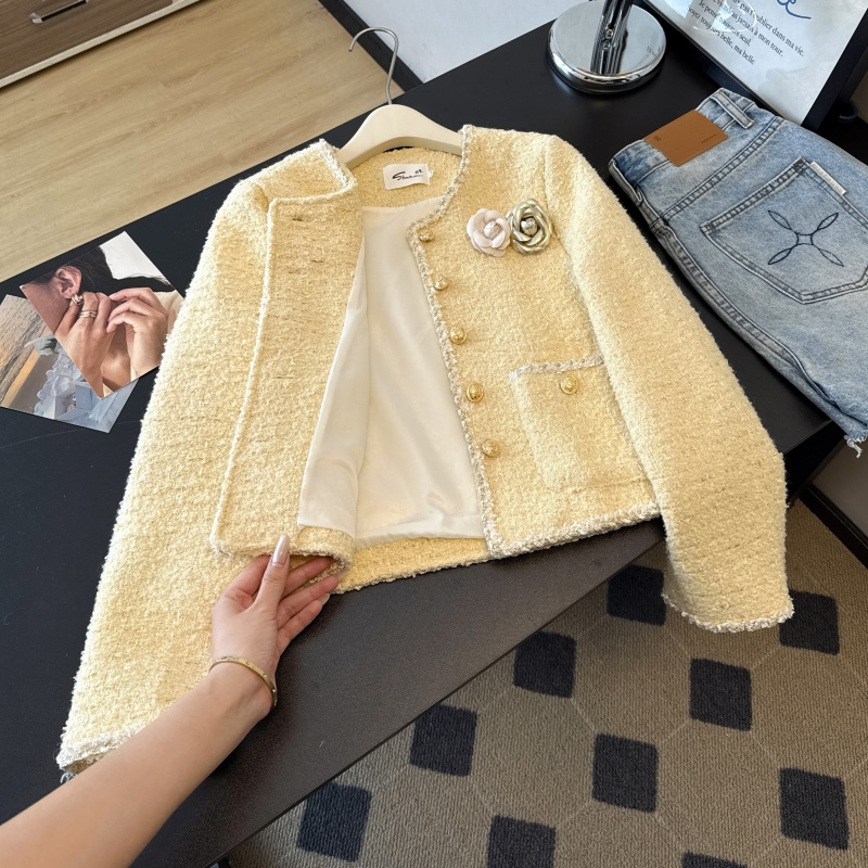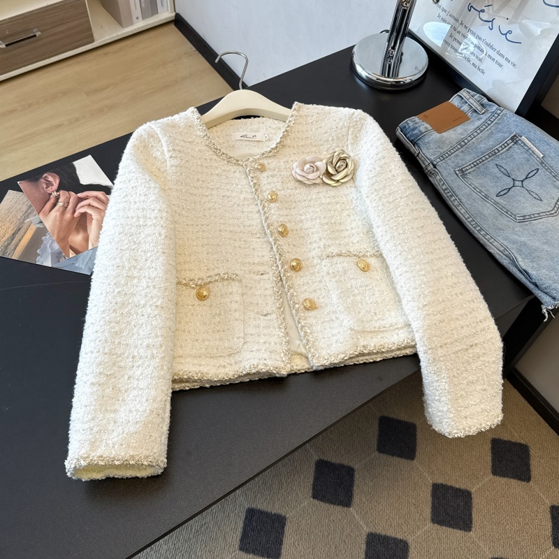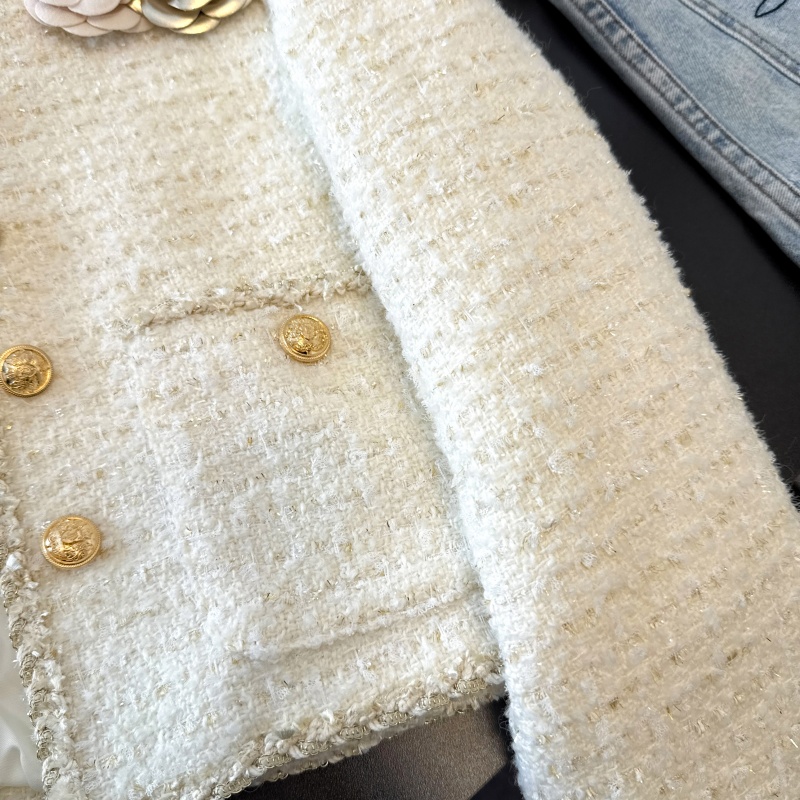 프랑스식 무거운 작업 부드러운 바람 라운드 넥 더블 주머니 트위드 짜임 작은 샤넬 스타일 외부 위안 다운 외투
