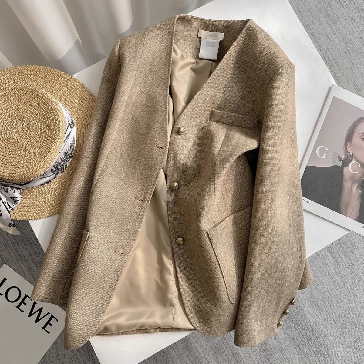 2025 조기 가을 새로운 V넥 정장 여성 코트 품격 작은 키 정장 맨위