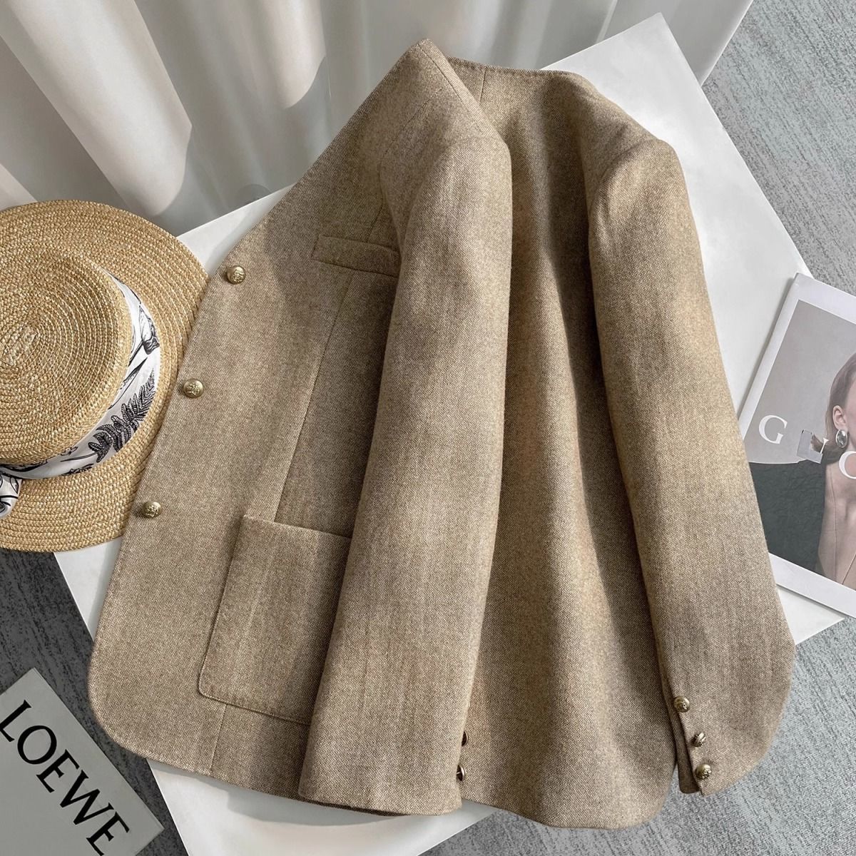 열세 개 가을 겨울 새로운 작은 샤넬 스타일 고급 센스 거친 가장자리 루즈핏 재킷 아름다움 라드. 착용 가져 가라. 카키 색 맨위