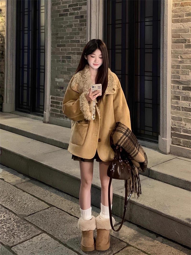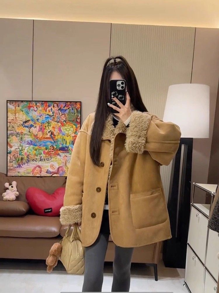가을 새로운 2025 루즈핏 슬림해 보이는 레트로 다용도 스웨이드 원단 라운드 넥 지퍼 재킷 재킷 외국 가스 맨위 여성