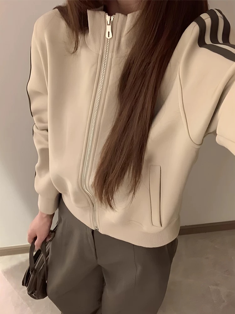 가을 새로운 2025 루즈핏 슬림해 보이는 레트로 다용도 스웨이드 원단 라운드 넥 지퍼 재킷 재킷 외국 가스 맨위 여성