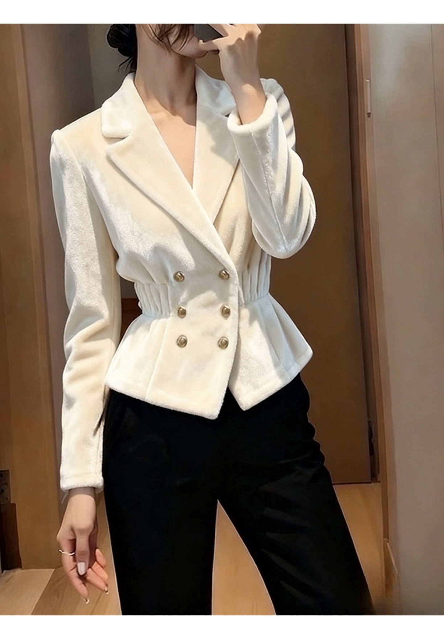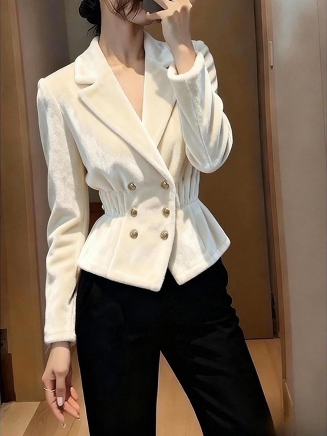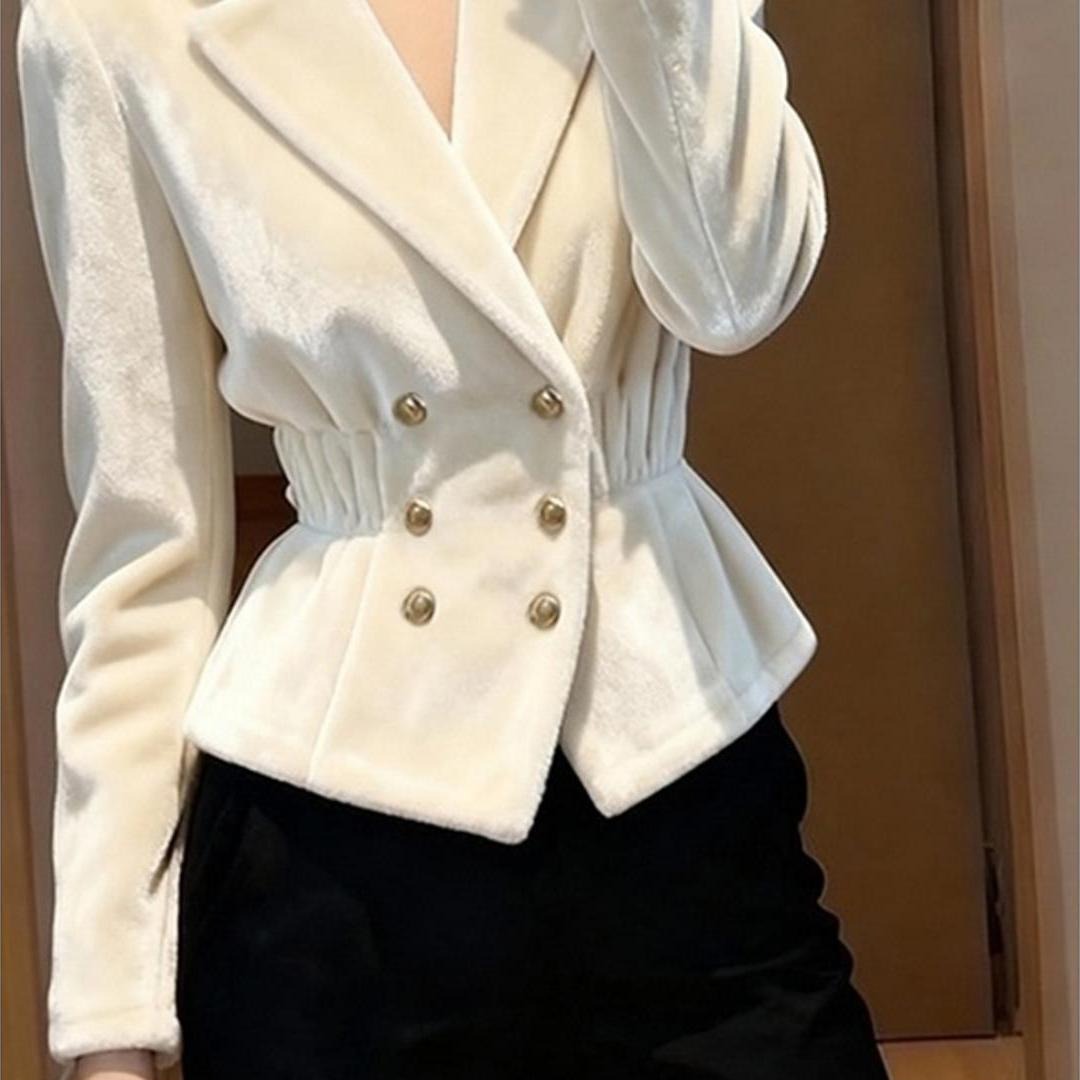 화이트 벨벳 여성 코트 가을 겨울 고급 품격 의류