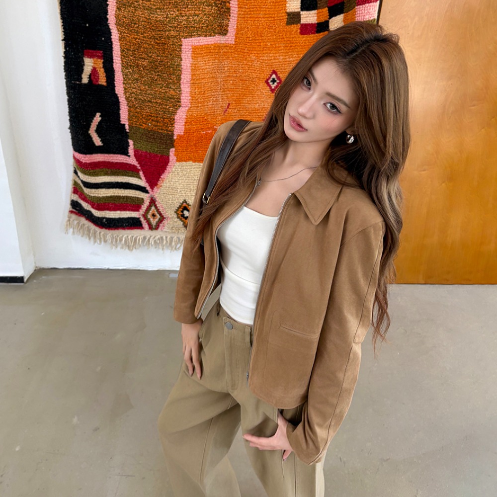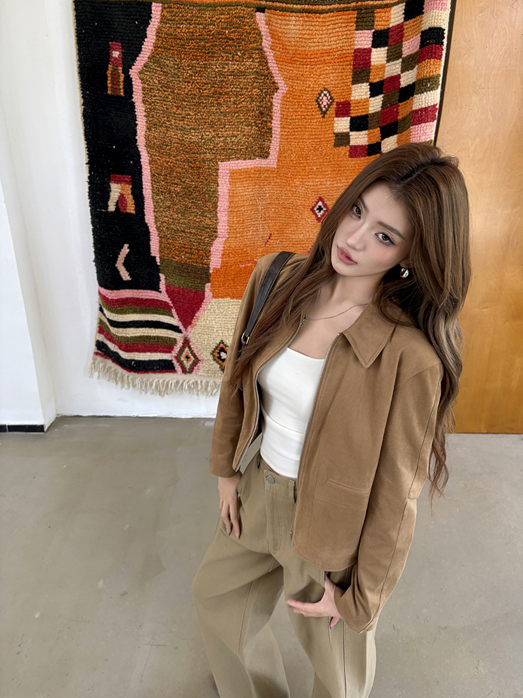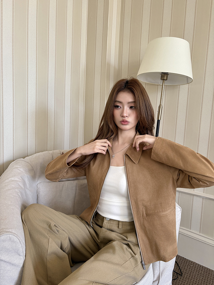 2025 가을 겨울 뉴디자인 가죽 재킷 여성 레트로 소가죽 플러시 스포츠 재킷
