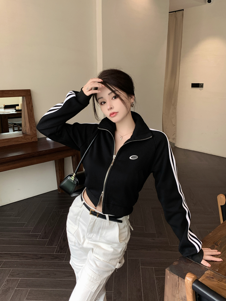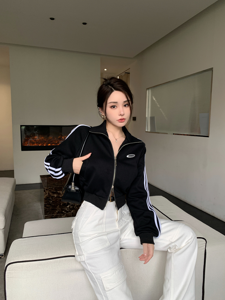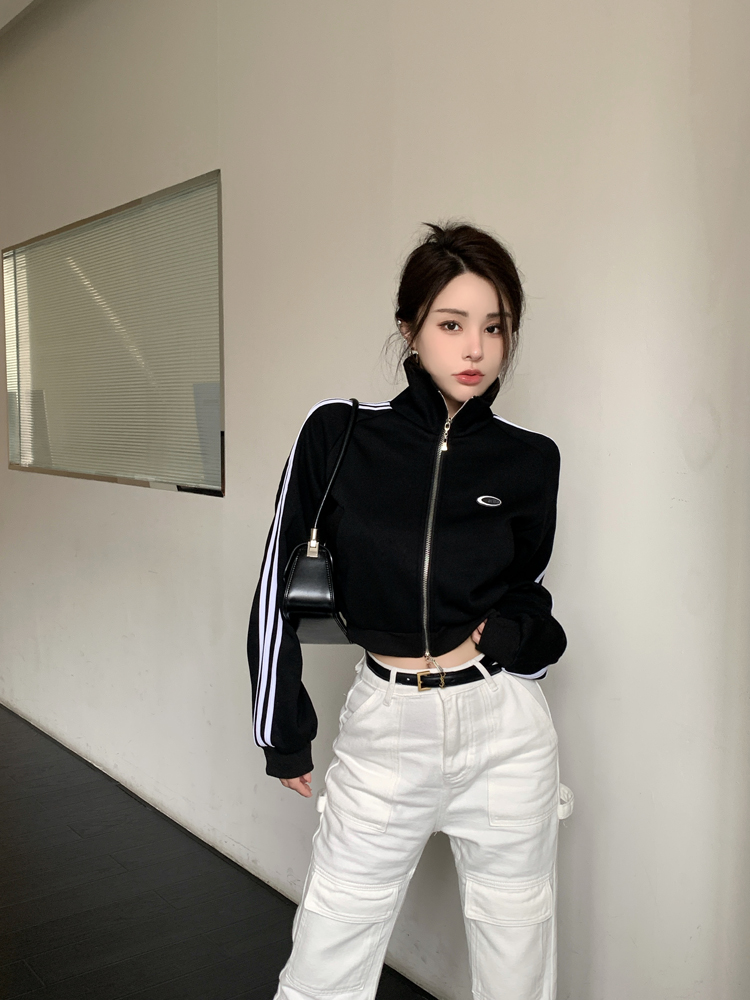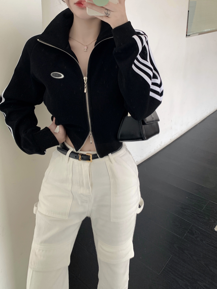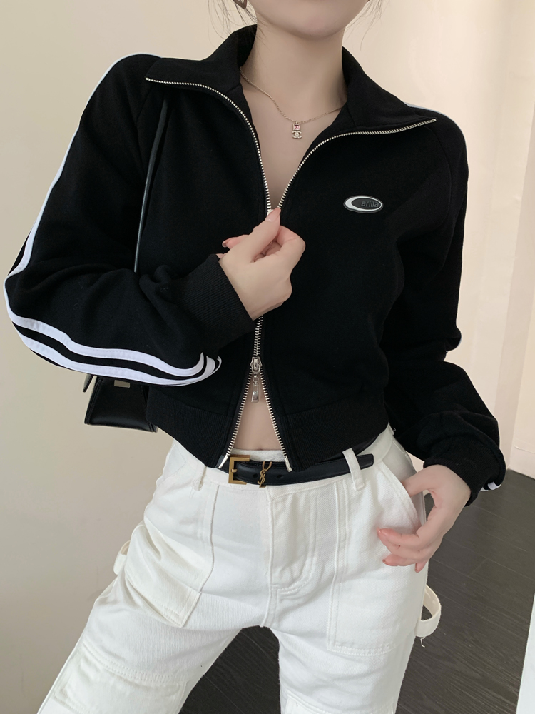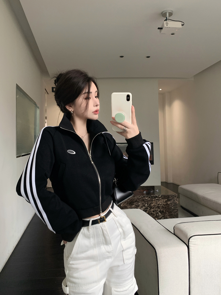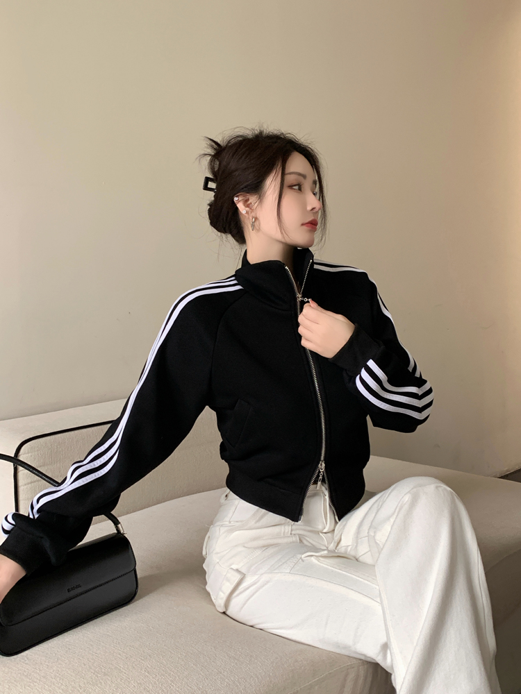 스웨트 셔츠 여자 가을과 겨울 스포츠 더블 지퍼 카디건