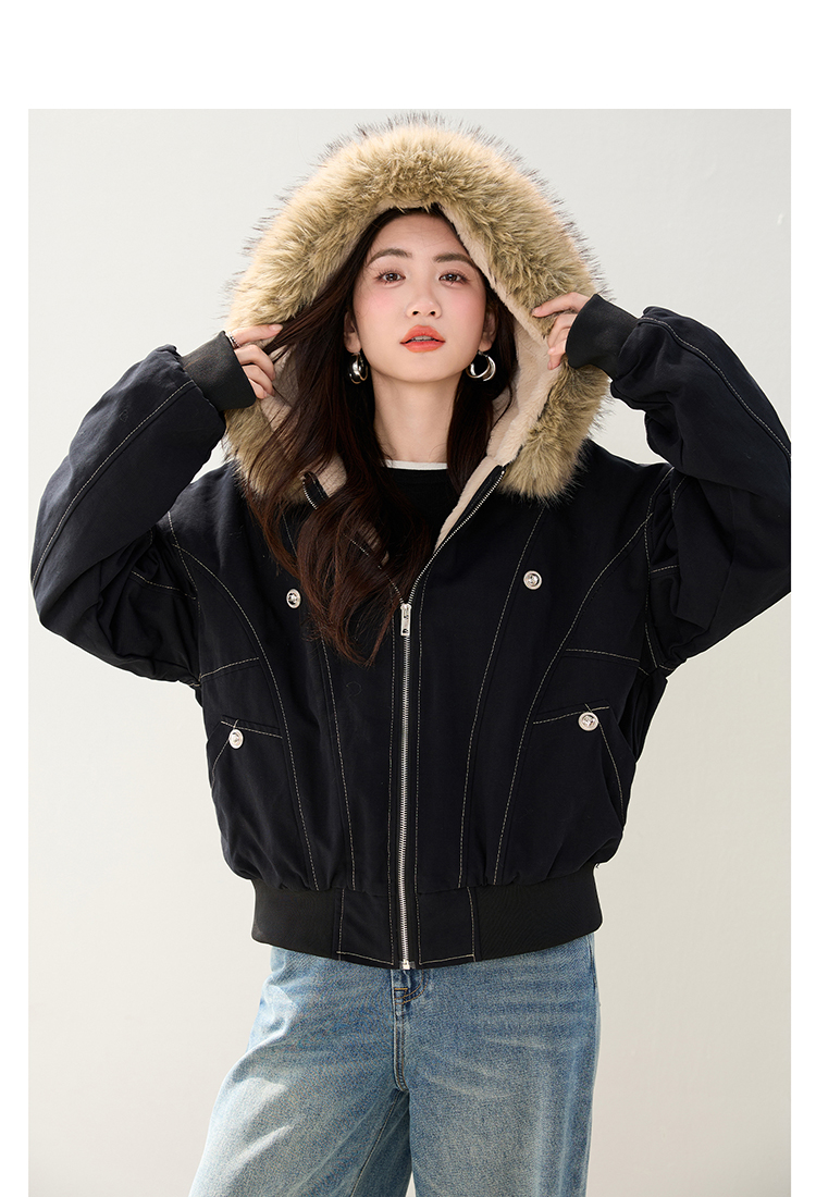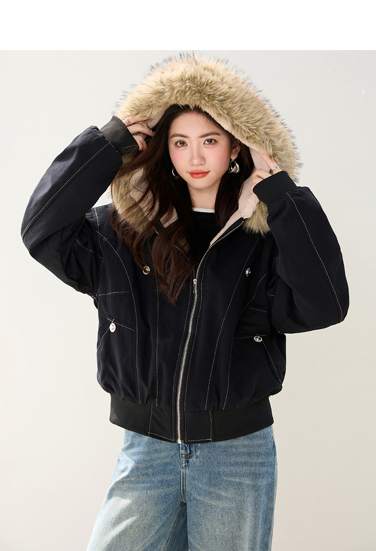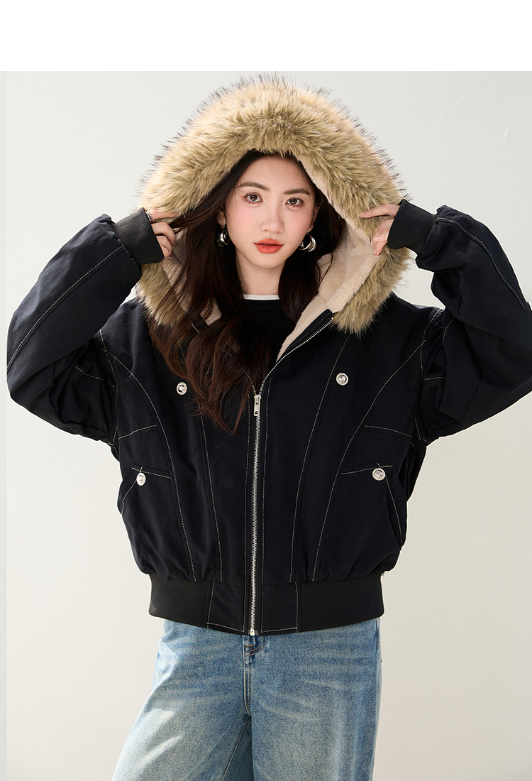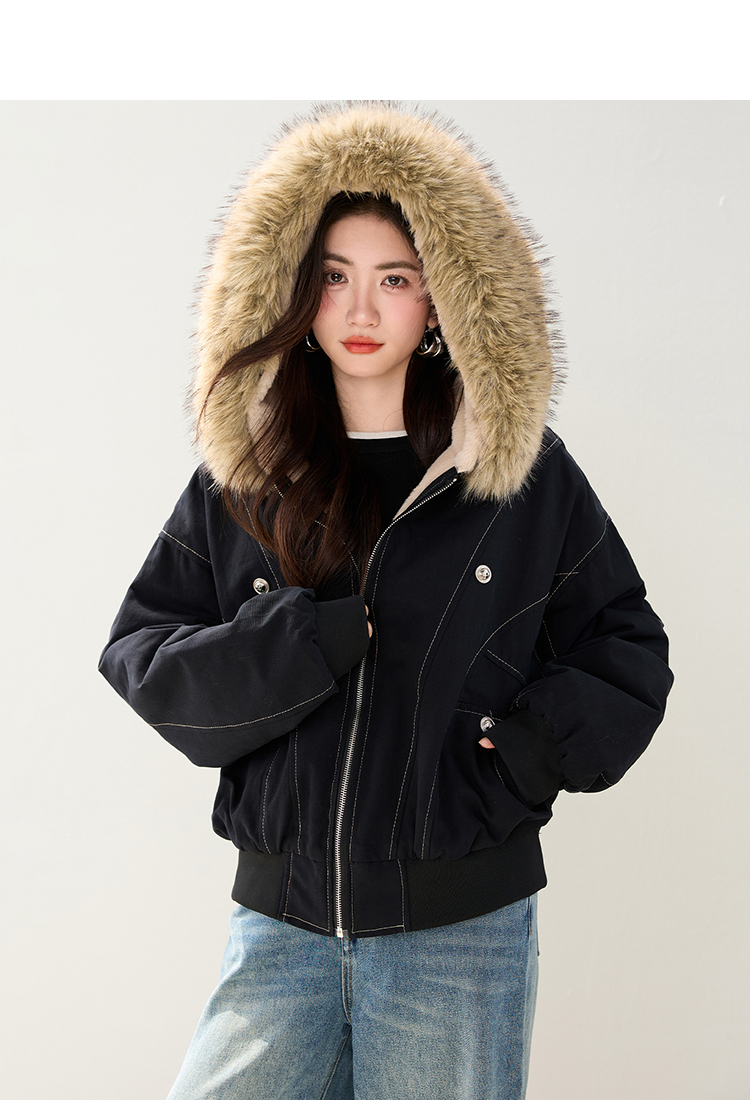 2025 가을 겨울 신제품 아메리칸 칼라 후드 재킷 여자