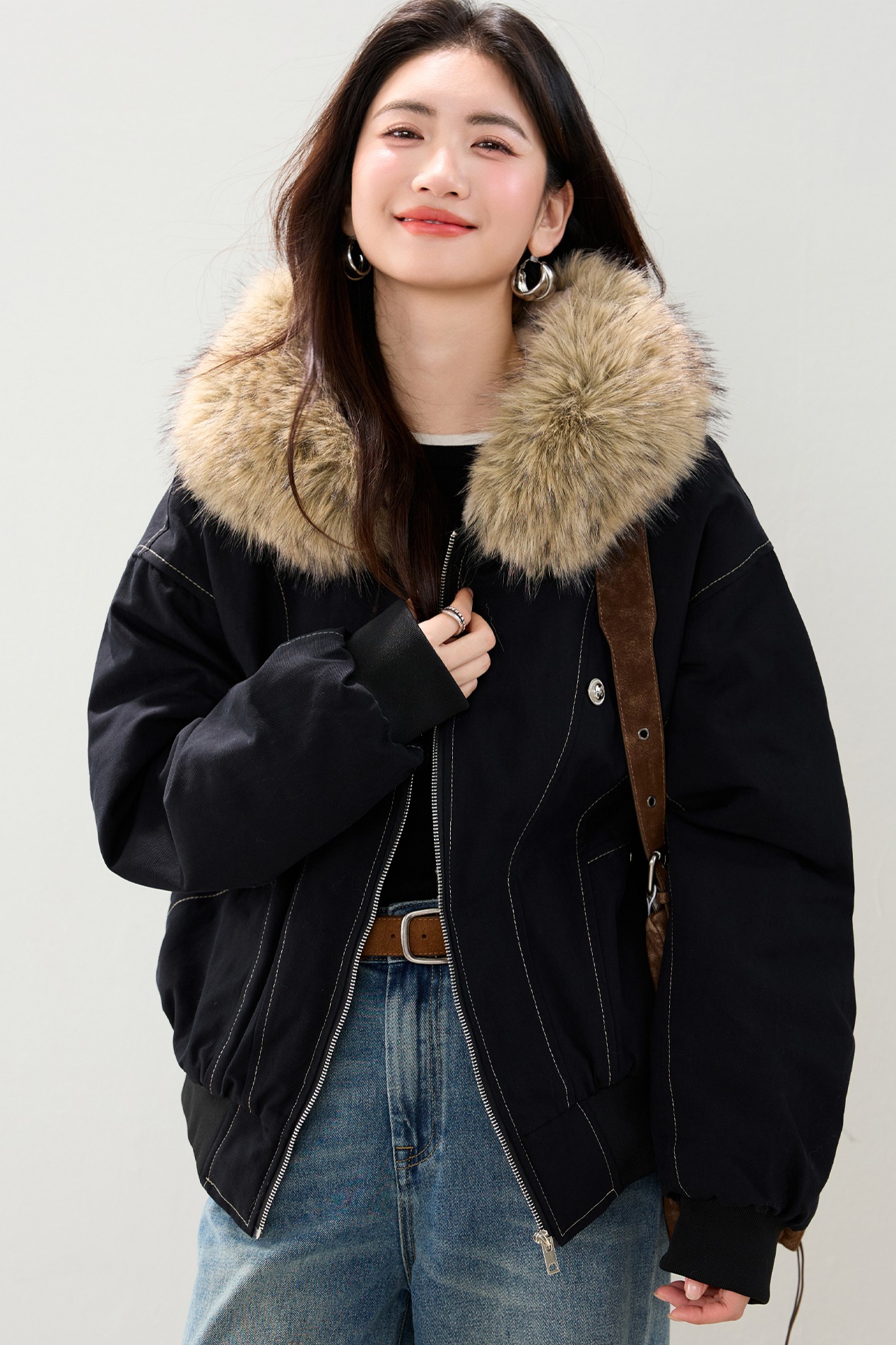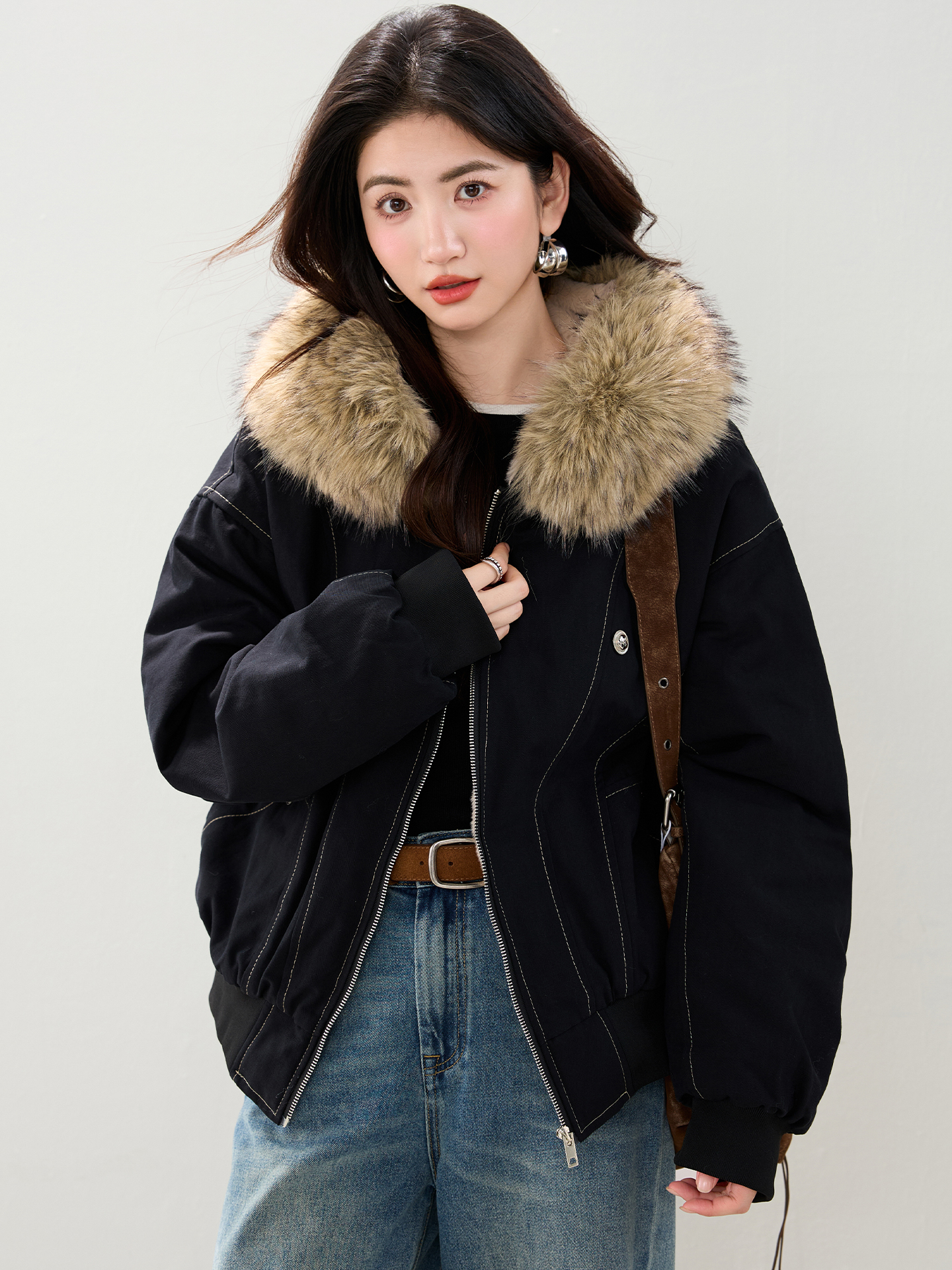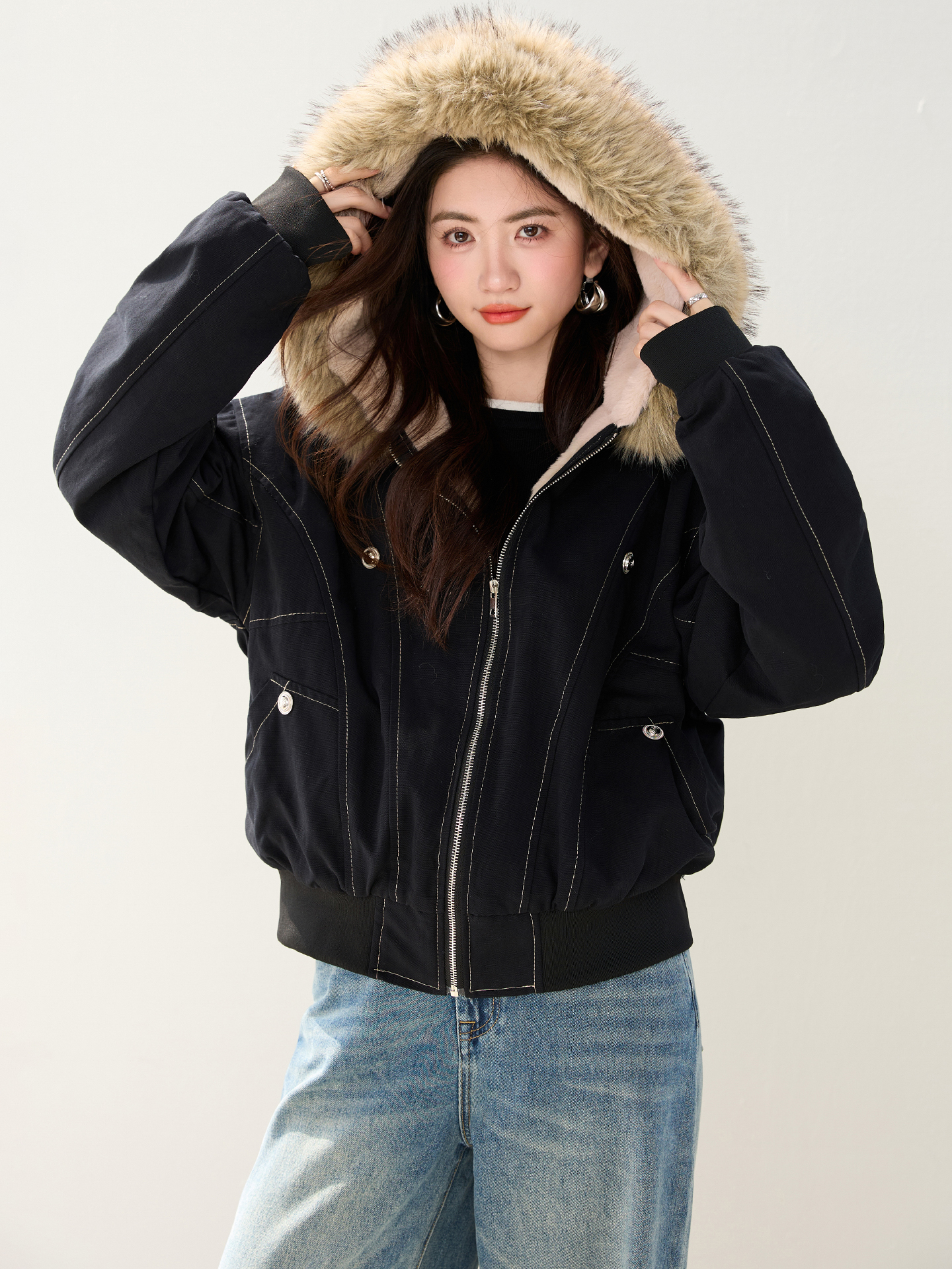 2025 가을 겨울 신제품 아메리칸 칼라 후드 재킷 여자