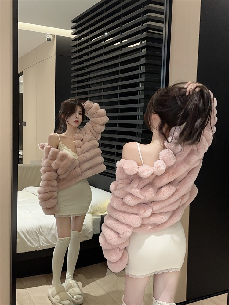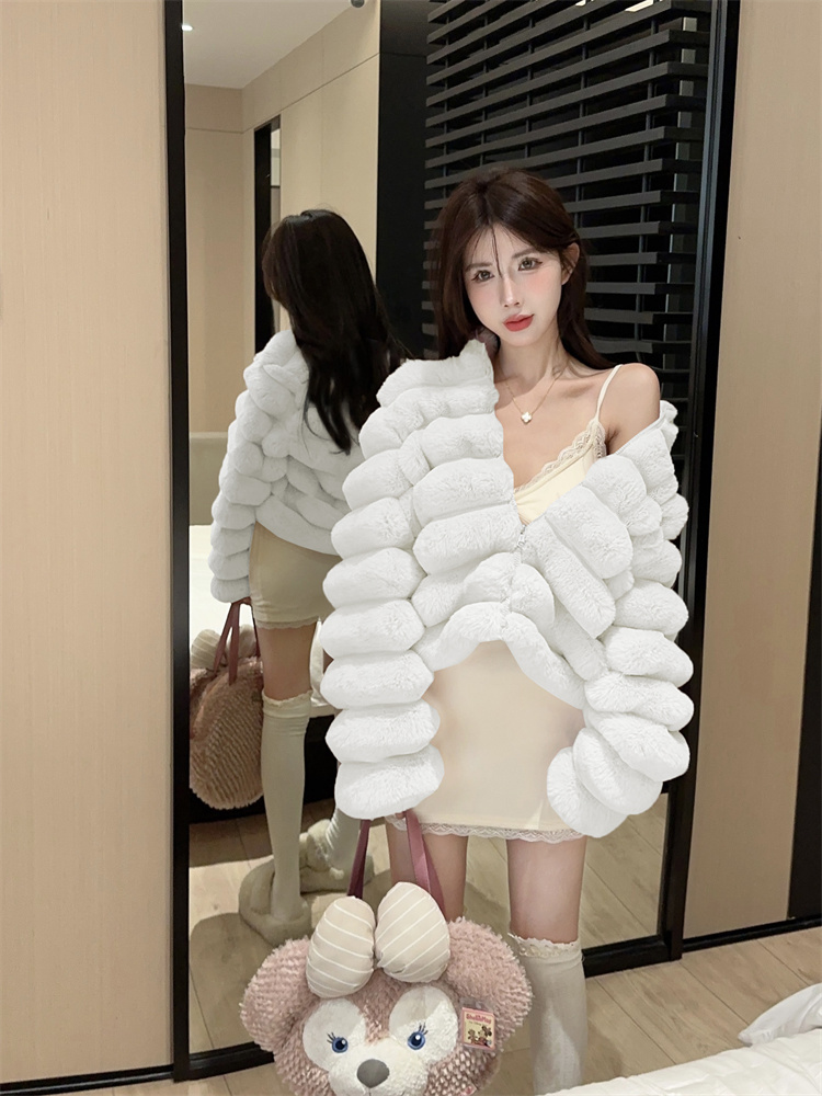 럭셔리 고급 한국어 버전 와이드 부드러운 칼라 모피 외투