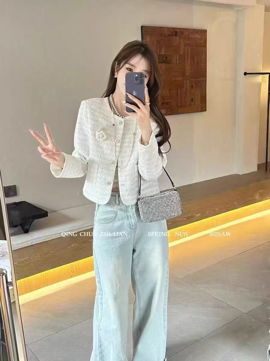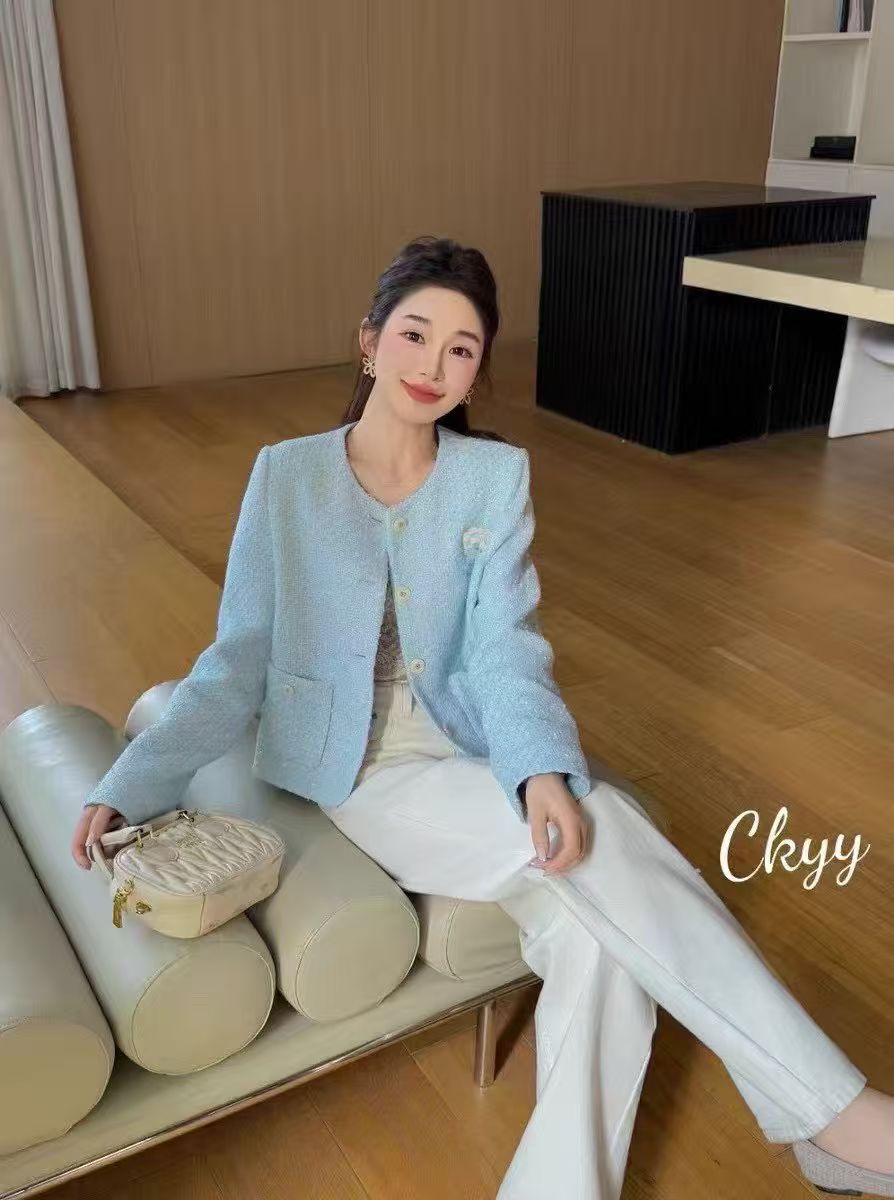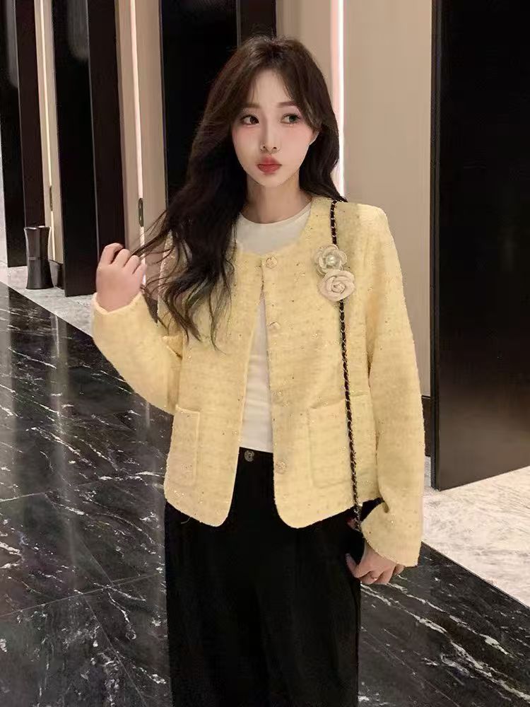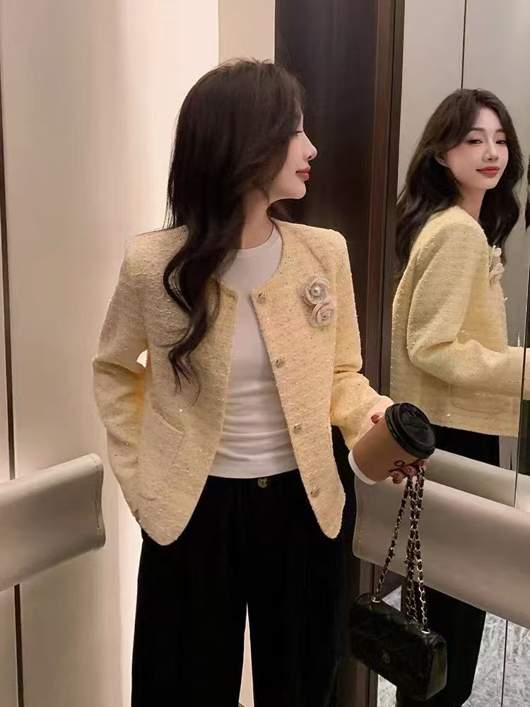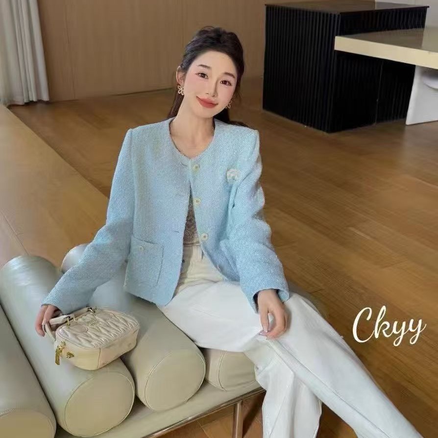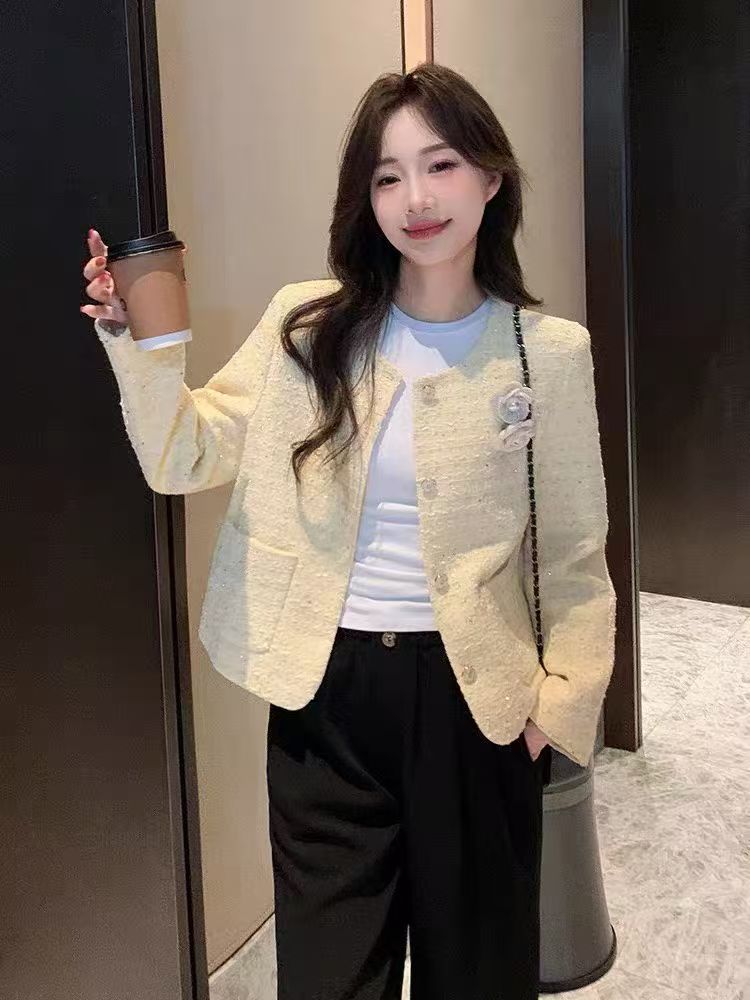 2025 가을 겨울 스팽글 작은 샤넬 스타일 재킷 여성