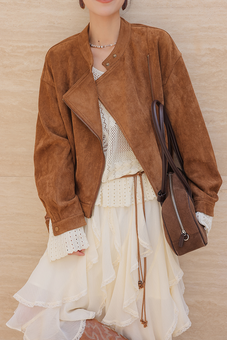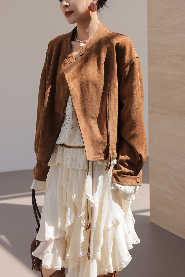아메리칸 스탠드 칼라 스웨이드 원단 재킷 여성 코트 2025 루즈핏