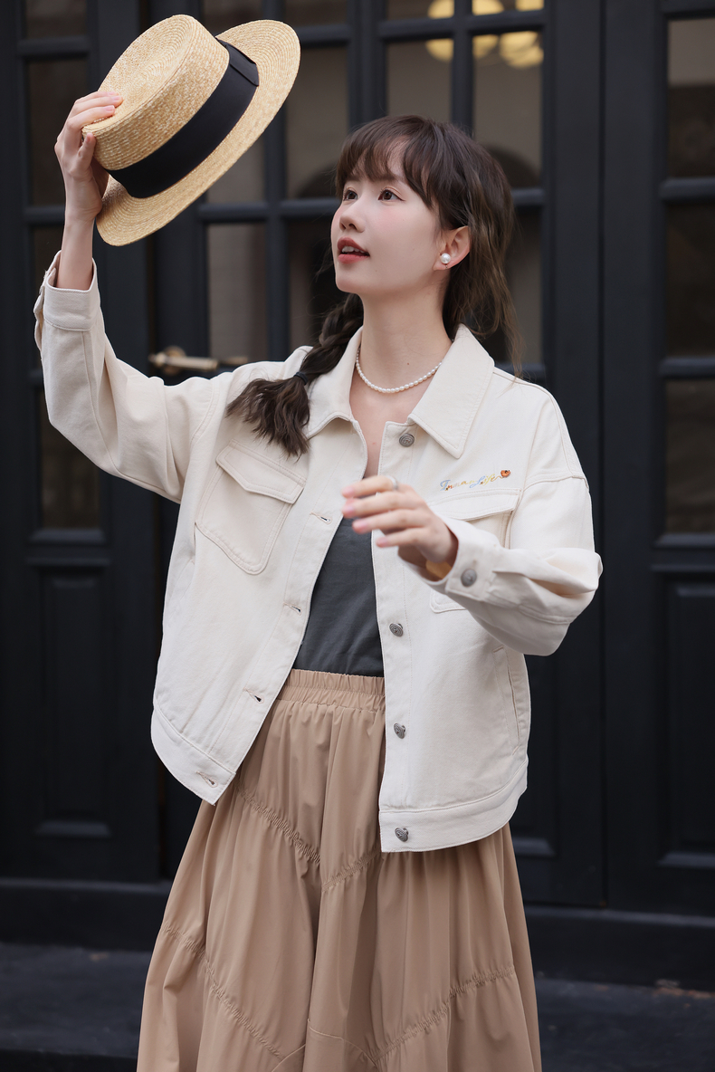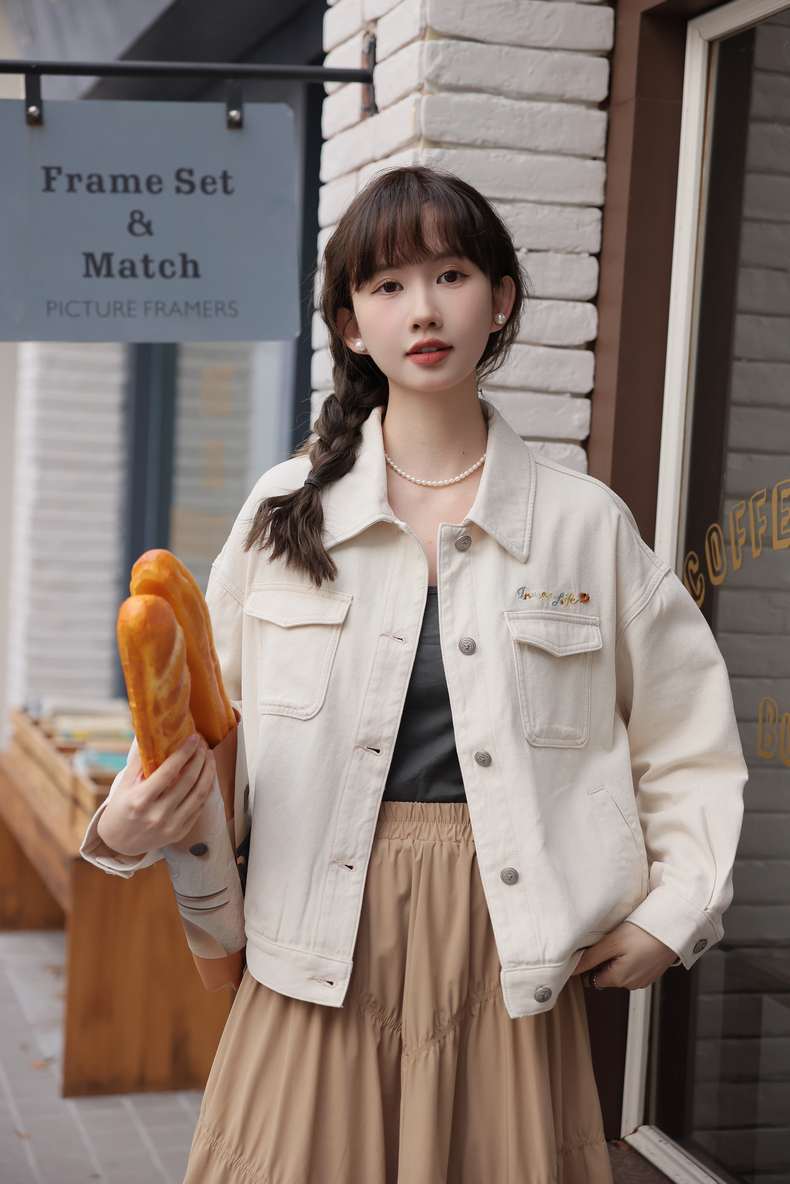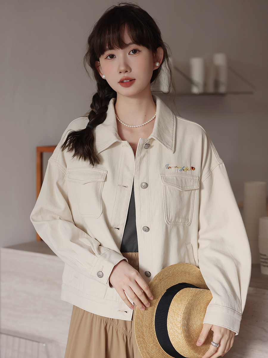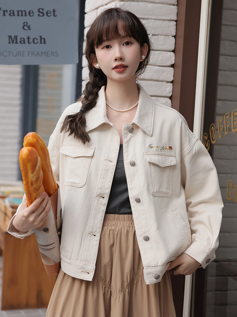 2025 봄 새로운 화이트 카우보이 짧은 여성 코트