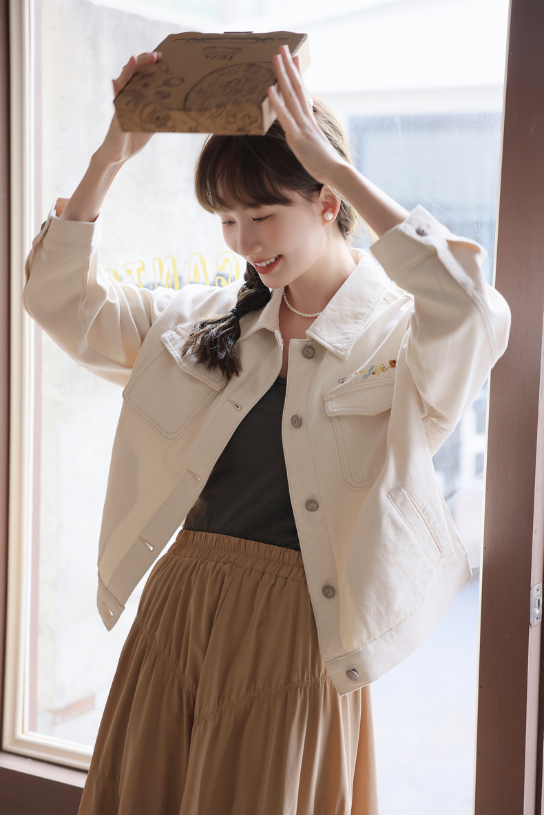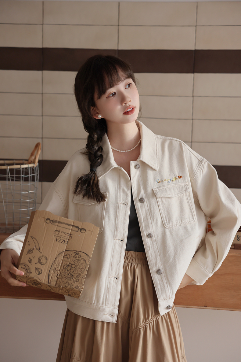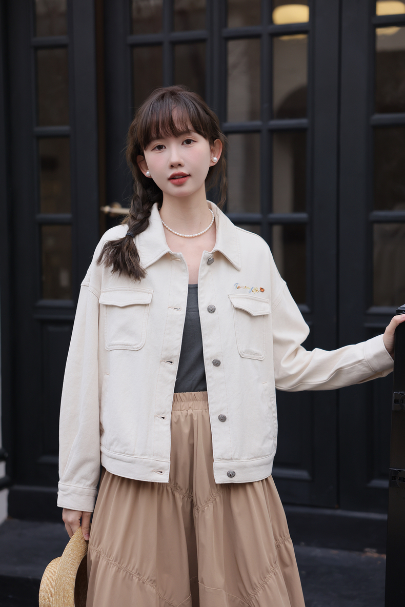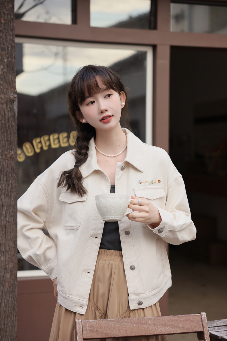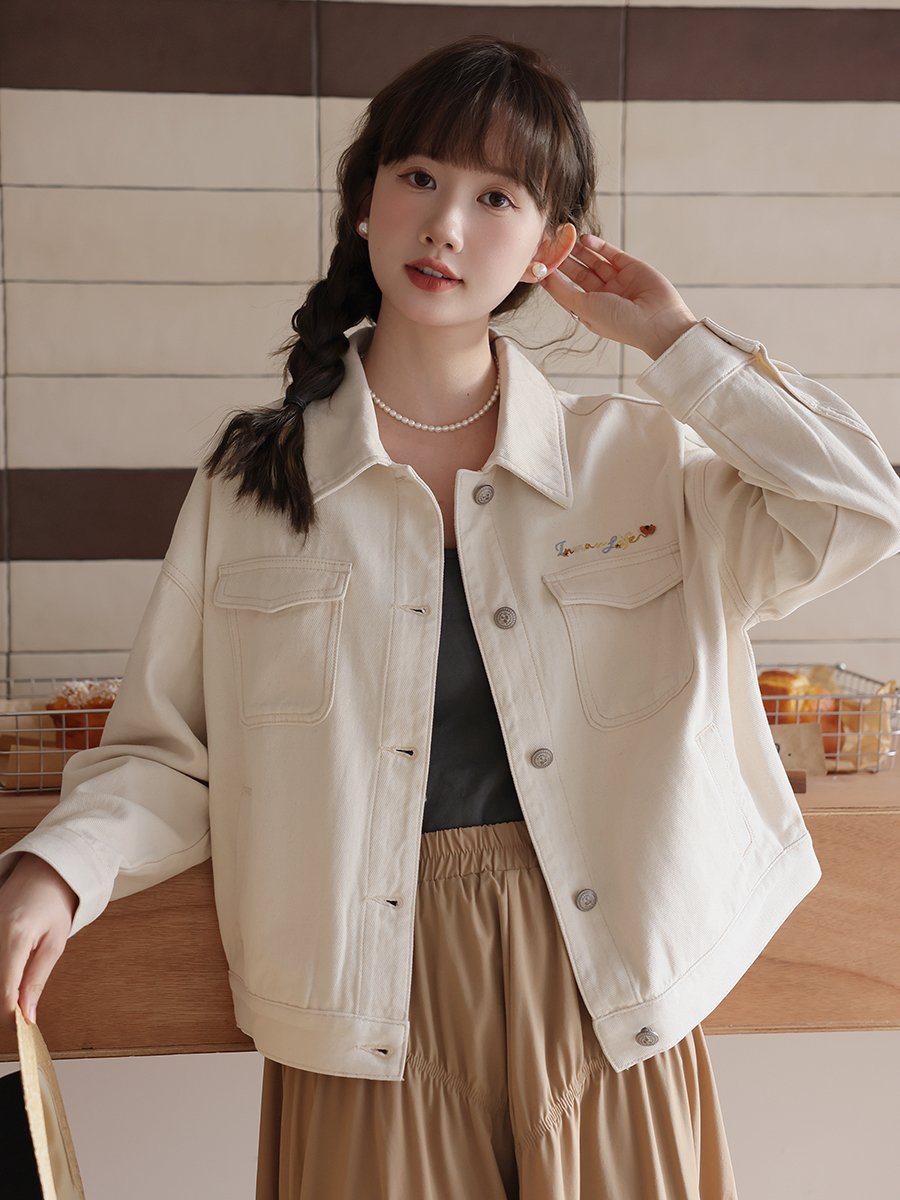 2025 봄 새로운 화이트 카우보이 짧은 여성 코트