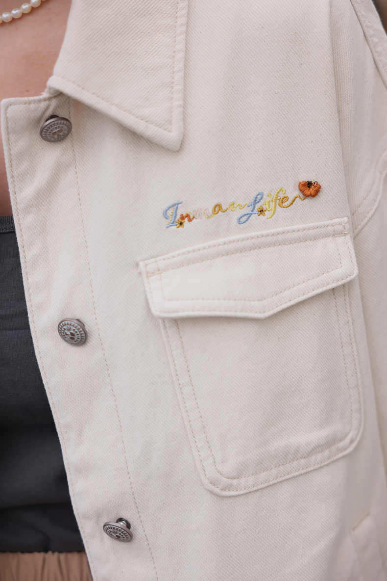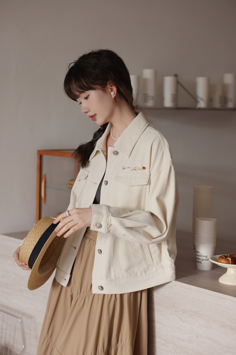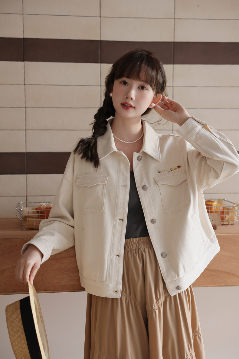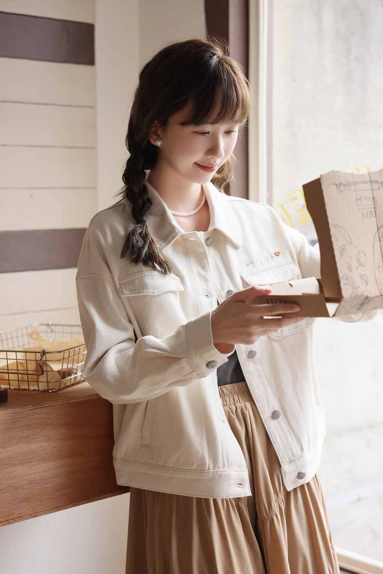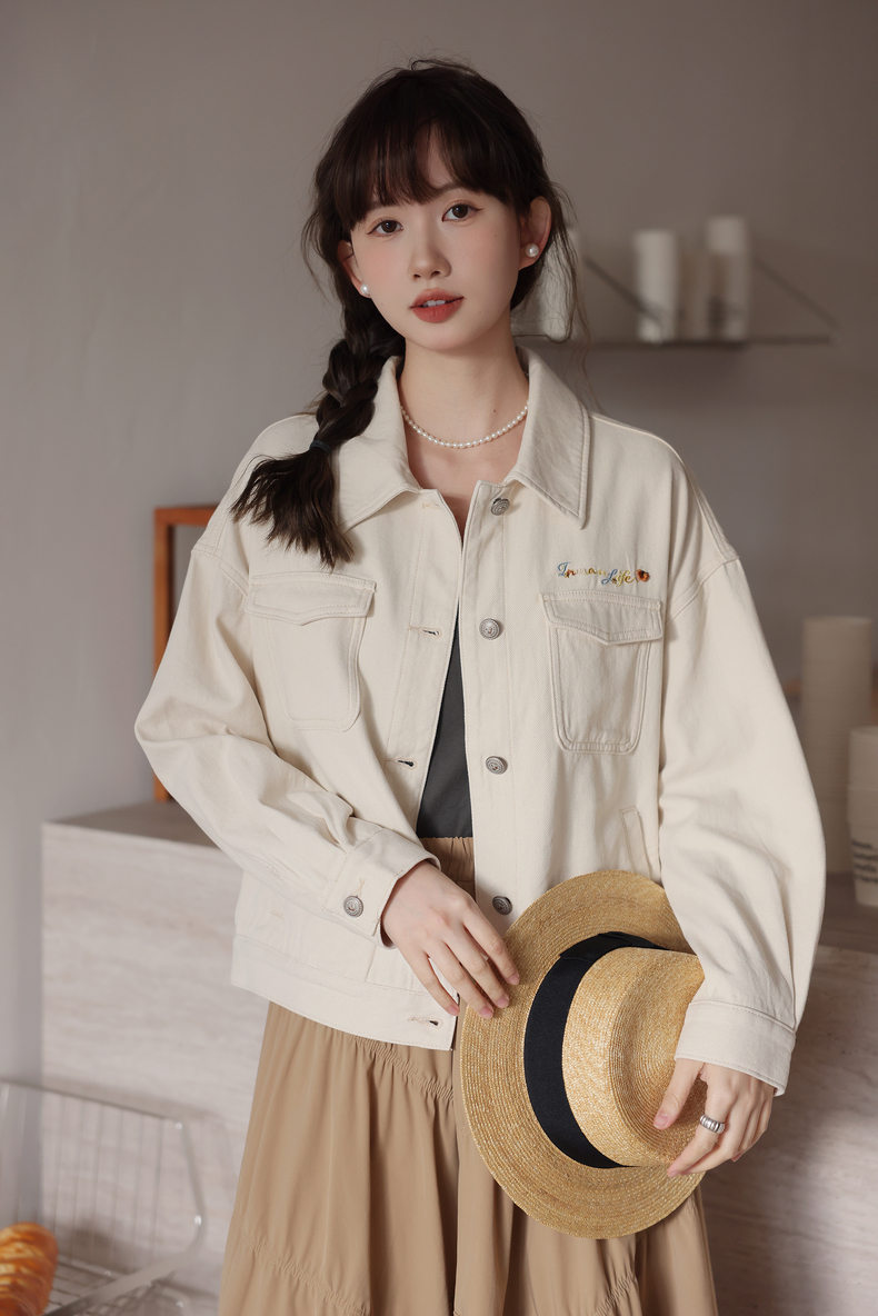 2025 봄 새로운 화이트 카우보이 짧은 여성 코트