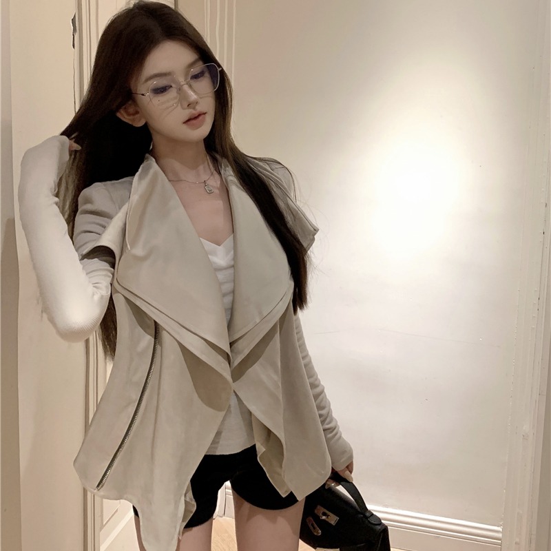 2025 봄 새로운 화이트 카우보이 짧은 여성 코트