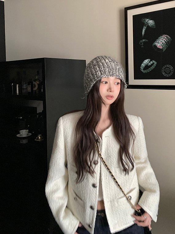 아메리칸 레트로 화이트 스탠드 칼라 재킷 여성 코트 오픈 가디건