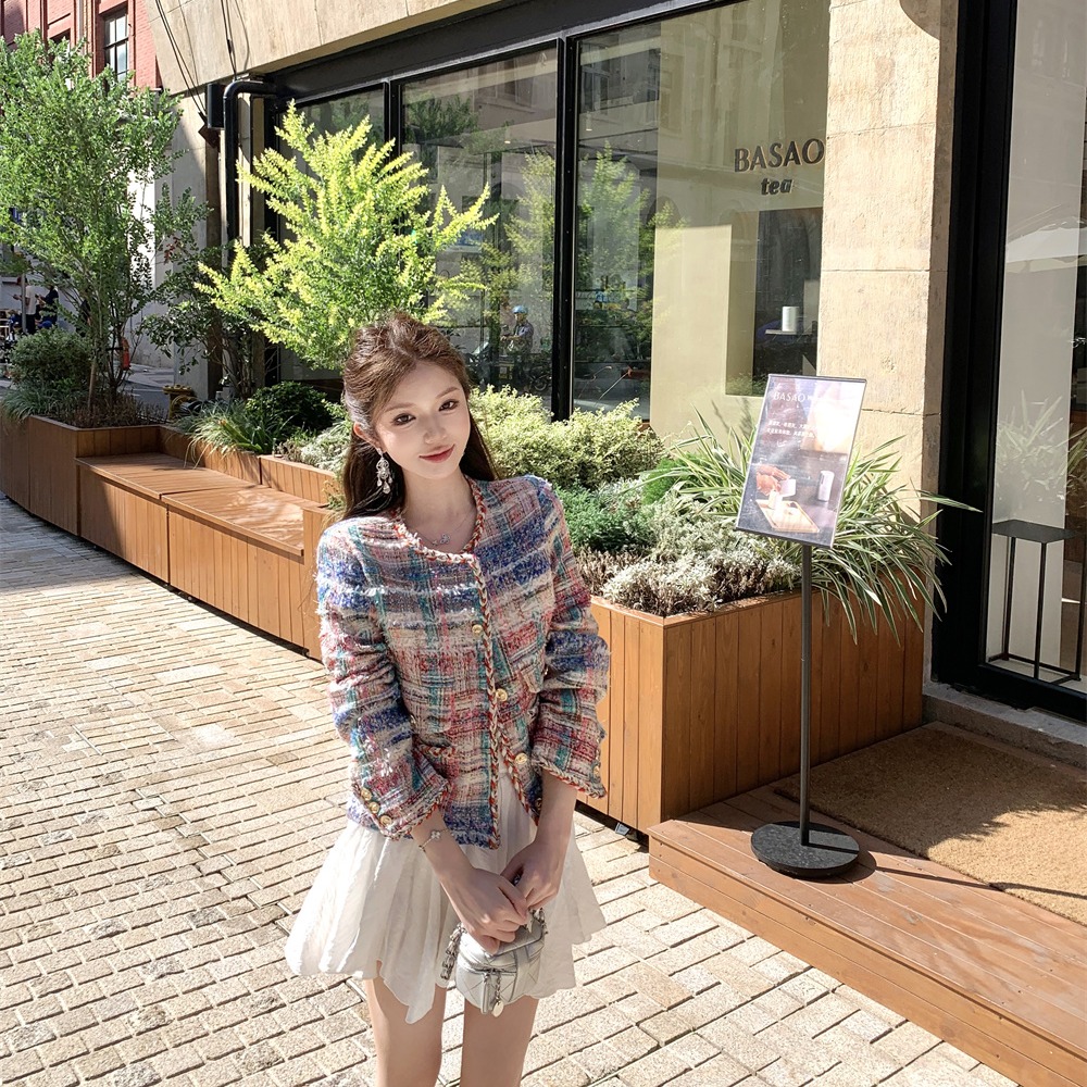 클래식 섹션 색상 체크무늬 트위드 양모 여성 코트